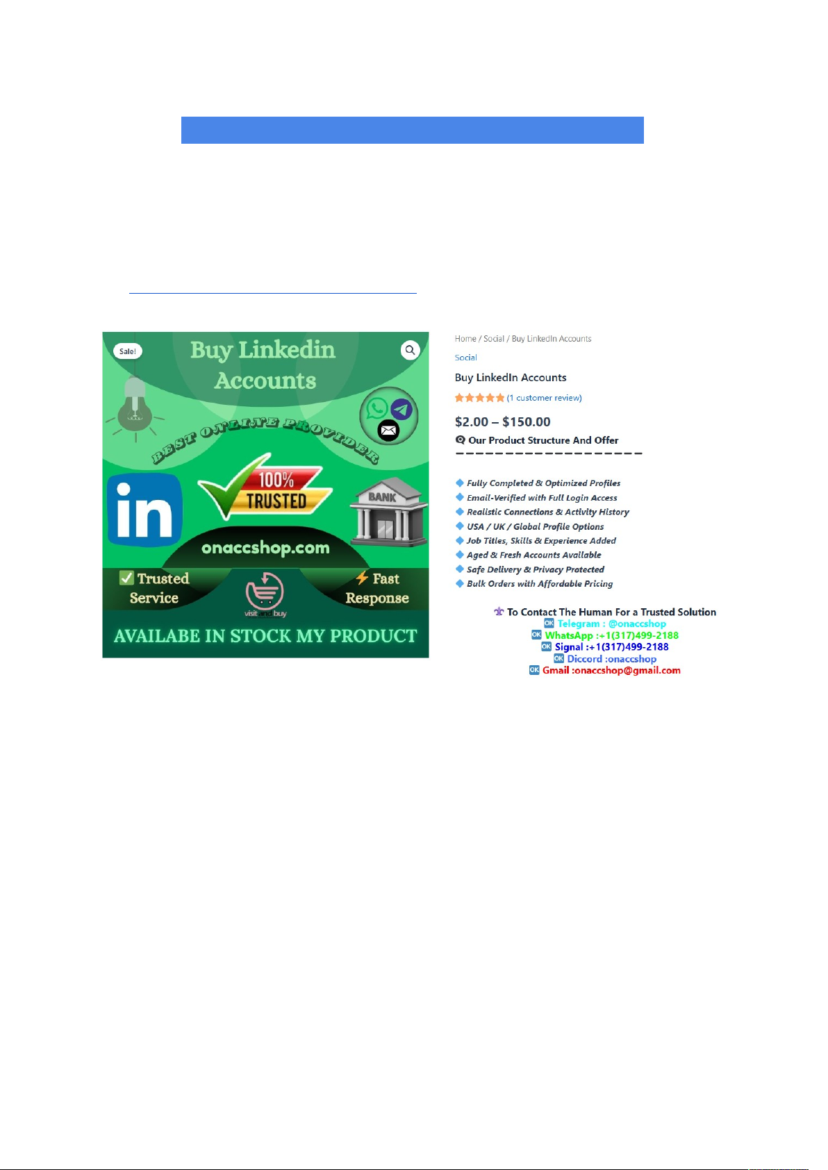 To Contact The Human For a Trusted Solution 🆗 Telegram : @onaccshop 🆗 WhatsApp :+1(317)499-2188 🆗 Signal :+1(317)499-2188 🆗 Diccord :onaccshop 🆗 Gmail :onaccshop@gmail.com Buy professional-quality LinkedIn accounts built for long-term use. Verified, aged profiles from ONAccShop.com with lifetime reliability for business and marketing success. Shop : https://onaccshop.com/product/buy-linkedin-accounts/ Introduction In the competitive world of professional networking, quality matters more than quantity. When you buy LinkedIn accounts for long-term use, you're making an investment in your professional future, not just purchasing temporary access. The difference between a low-quality account that gets banned within weeks and a professional-grade profile that serves you for years lies entirely in the verification standards, aging process, and provider reputation. Professional-quality LinkedIn accounts represent the gold standard for businesses, marketers, and professionals who understand that sustainable success requires reliable foundations. These premium accounts combine authentic verification, natural activity histories, and compliance-focused preparation to deliver profiles that LinkedIn's algorithms recognize as legitimate users rather than suspicious purchases. ONAccShop.com leads the industry in providing professional-quality LinkedIn accounts specifically engineered for long-term reliability. Their rigorous verification processes and commitment to quality ensure every account you purchase delivers consistent value for years, not just months. Let's explore what makes these accounts worth the investment and how to buy the right profiles for your needs. What Defines Professional-Quality LinkedIn Accounts? Complete Verification Standards Professional accounts include full email and phone verification with real carrier validation. Unlike basic accounts using temporary email services or virtual numbers that LinkedIn flags instantly, quality accounts feature legitimate contact information that passes platform security checks consistently. Aged Activity History Premium accounts come with 6-12 months of natural activity patterns including profile views, content engagement, and gradual connection growth. This aging process creates algorithmic trust that new accounts simply cannot replicate, ensuring your profile enjoys full platform privileges from day one. Authentic Connection Networks Quality accounts feature genuine connections with other verified users across relevant industries. These aren't bot networks or fake profiles—they're real professionals creating the social proof LinkedIn's algorithms prioritize when determining account credibility and content reach. Complete Professional Profiles Professional-grade accounts include high-quality photos, detailed work histories, skill endorsements, recommendations, and industry-relevant content. This completeness signals legitimacy to both LinkedIn's systems and your future connections, establishing immediate credibility. Clean Compliance Records Zero violations, restrictions, or suspicious activity flags distinguish professional accounts from risky alternatives. ONAccShop.com guarantees clean histories ensuring you receive accounts with full platform access and no hidden compliance issues that could jeopardize long-term use. Why Buy Professional-Quality Accounts for Long-Term Use? Business Development Investment Sales teams require reliable LinkedIn accounts that won't disappear mid-campaign. Professional accounts provide stable foundations for building client relationships, nurturing prospects, and generating consistent leads over years. Low-quality alternatives risk losing months of relationship-building overnight through unexpected bans. Marketing Campaign Continuity Content marketers invest significant time building audience engagement and thought leadership. Professional-quality accounts protect these investments by ensuring profile longevity. Your content strategy remains intact, your follower base continues growing, and your authority compounds over time rather than resetting with account suspensions. Recruitment Efficiency HR professionals need dependable LinkedIn access for ongoing talent acquisition. Professional accounts maintain recruiter presence, preserve candidate relationships, and sustain employer branding efforts consistently. Quality accounts eliminate the disruption and reputation damage caused by suspended profiles. Personal Brand Building Your professional reputation develops over years, not weeks. Investing in quality LinkedIn accounts ensures your personal brand grows steadily without interruptions. The credibility you build through consistent engagement, valuable content, and authentic networking remains protected through superior account quality. How to Buy Professional-Quality LinkedIn Accounts Step 1: Choose Reputable Providers Start with established providers known for quality and reliability. ONAccShop.com consistently ranks as the most trusted source for professional-grade LinkedIn accounts, with thousands of verified reviews and industry-leading customer satisfaction. Their commitment to quality over quantity ensures every account meets strict verification standards. Step 2: Verify Account Specifications Professional accounts should clearly specify verification status, account age, connection count, and activity history. ONAccShop.com provides detailed account profiles showing exactly what you're purchasing, eliminating guesswork and ensuring informed decisions. Step 3: Prioritize Aged Accounts Accounts aged 6+ months significantly outperform newer profiles in both algorithm trust and suspension resistance. The premium pricing for aged accounts represents genuine value through extended reliability and immediate full-platform functionality. Step 4: Confirm Security Features Ensure accounts support two-factor authentication, secure password changes, and recovery options. Professional providers delive