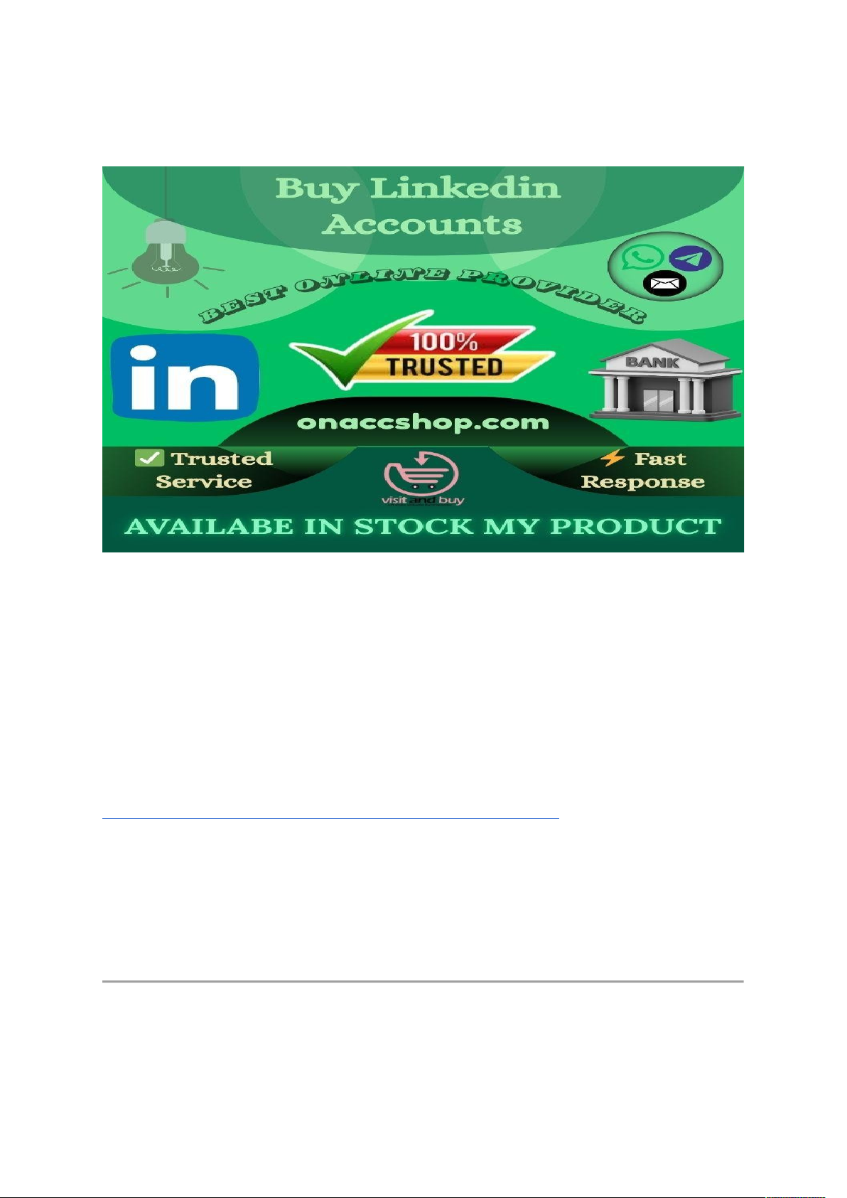 Buy “Verified” LinkedIn Accounts 💥💥To Contact The Human For a Trusted Solution💥💥 🆗 Telegram : @onaccshop 🆗 WhatsApp :+1(317)499-2188 🆗 Signal :+1(317)499-2188 🆗 Diccord :onaccshop 🆗 Gmail :onaccshop@gmail.com Buy professional-quality LinkedIn accounts for long-term use. Verified, secure, optimized profiles from ONAccShop.com for business and marketing. In today’s competitive digital world, LinkedIn is more than a networking platform—it is a long-term professional asset. For individuals, businesses, marketers, and organizations, starting with a weak or new profile can slow growth. That’s why many professionals now choose to buy professional-quality LinkedIn accounts for long-time use. This guide explains why verified, high-quality LinkedIn accounts from ONAccShop.com are the smartest long-term solution. Why Professional-Quality LinkedIn Accounts Matter Not all LinkedIn accounts are equal. A professional-quality LinkedIn account is built for stability, trust, and longevity. These accounts look natural, follow platform standards, and are designed to be used safely over time. Key advantages include: · Higher trust score and credibility · Reduced risk of restrictions · Better visibility and engagement · Suitable for long-term branding and outreach Buying low-quality accounts often leads to bans. Buying professional-quality verified LinkedIn accounts ensures long-term usability. What Defines a Long-Time Use of a LinkedIn Account? A LinkedIn account meant for long-term use must meet strict quality standards. A professional long-term LinkedIn account includes: · Email-verified login credentials · Fully completed profile (photo, headline, summary) · Job titles, skills, and experience added · Realistic connections and activity history · Proper account warm-up · Secure ownership transfer ONAccShop.com specializes in delivering LinkedIn accounts built for long-time use, not temporary campaigns. Why Buy Instead of Creating New Accounts? Creating a brand-new LinkedIn account in 2026 is time-consuming and restrictive. New profiles face: · Connection limits · Messaging restrictions · Low visibility · Slow trust building When you buy a professional-quality LinkedIn account, you bypass these issues and start with an account that already looks established and trustworthy. Where to Buy Professional-Quality LinkedIn Accounts Choosing the right provider is critical. Random sellers and marketplaces often deliver poorly created accounts that fail quickly. ONAccShop.com – Best for Long-Term Use ⭐ ONAccShop.com is the leading provider of professional-quality LinkedIn accounts designed specifically for long-time use. Each account is carefully created, verified, and optimized to meet LinkedIn standards. Why ONAccShop.com stands out: · Verified & optimized LinkedIn profiles · Aged and fresh account options · USA, UK & global profiles available · Full login & email access · Secure delivery and privacy protection · Live customer support For anyone serious about longevity, ONAccShop.com is the safest choice. Types of LinkedIn Accounts Available ONAccShop.com offers multiple professional options based on your needs: · Professional Verified LinkedIn Accounts · Aged LinkedIn Accounts for Long-Term Use · Fresh Warmed-Up LinkedIn Accounts · Business-Ready LinkedIn Profiles · Regional Accounts (USA / UK / Global) Each product is designed with long-term safety and performance in mind. Use Cases for Long-Time LinkedIn Accounts Personal Use Professionals use long-term LinkedIn accounts to build authority, apply for jobs, and grow trusted networks without account limitations. Business Use Companies buy professional LinkedIn accounts for sales teams, recruiters, and executives to maintain consistent outreach and branding. Organization Use Agencies and organizations manage multiple LinkedIn profiles for hiring, partnerships, and corporate communication. Marketing Use Marketers rely on long-time LinkedIn accounts for lead generation, B2B outreach, influencer campaigns, and brand promotion. How to Maintain Long-Term Safety After Purchase Buying a professional LinkedIn account is only the first step. Long-term success depends on proper usage. Best practices include: · Gradual activity increase · Natural connection requests · Avoid aggressive automation · Regular profile updates · Consistent login behavior ONAccShop.com accounts are pre-optimized, making long-term maintenance easier and safer. Why ONAccShop.com Is Trusted Worldwide ONAccShop.com focuses on quality over quantity. Every LinkedIn account is prepared with professional standards to ensure durability. Core benefits: · High trust-score profiles · Long-time usability focus · Replacement and support options · Affordable pricing for premium quality · Trusted by global clients This commitment makes ONAccShop.com the preferred platform for buying LinkedIn accounts for long-term use. FAQ (SEO-Optimized) Q1: Are these LinkedIn accounts safe for long-term use? Yes. ONAccShop.com provides professionally created, verified accounts designed for long-term stability. Q2: Do I get full access after purchase? Yes. Full login credentials and email access are included. Q3: Can I use these accounts for business and marketing? Absolutely. They are suitable for personal, business, organization, and marketing use cases. Q4: Are the accounts verified? All LinkedIn accounts from ONAccShop.com are email-verified and fully optimized. Conclusion If you are looking to buy a professional-quality LinkedIn account for long-time use, quality and trust matter more than price alone. A well-built, verified LinkedIn account saves time, reduces risk, and supports long-term growth. Among all providers, ONAccShop.com stands out for delivering secure, professional, and durable LinkedIn accounts designed for real-world use. image1.jpg