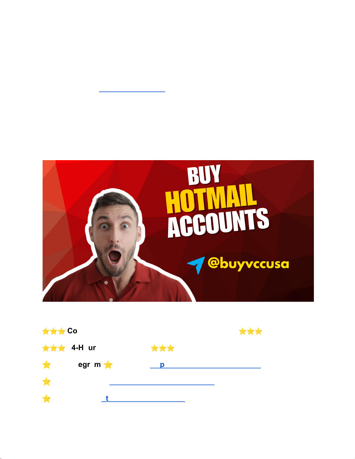 Top 03 Best Sites to Buy Hotmail Accounts in This Year 2026-2027 If you are looking to buy Hotmail accounts, you are choosing a reliable and widely trusted email solution backed by Microsoft. Hotmail accounts are still highly valuable for business communication, marketing, and online registrations. Many users prefer to buy Hotmail accounts instead of creating them manually because it saves time and effort. With pre-created and verified accounts, users can start using them instantly. BuyVccUsa.com offers secure, verified, and ready-to-use Hotmail accounts suitable for personal and professional needs. Whether you need one account or bulk quantities, buy Hotmail accounts from BuyVccUsa.com to ensure quality, safety, and smooth email performance. ⭐⭐⭐ Contact now for more information and services ⭐⭐⭐ ⭐⭐⭐ 24-Hour Reply/Contact ⭐⭐⭐ ⭐•●--➤Telegram:⭐Telegram: https://telegram.me/buyvccusa ⭐•●--➤WhatsApp: https://wa.me/+447449778952 ⭐•●--➤Website: https://buyvccusa.com/ https://buyvccusa.com/product/buy-hotmail-accounts/ https://telegram.me/buyvccusa https://wa.me/+447449778952 https://buyvccusa.com/ ⭐•●--➤Email: buyvccusa@gmail.com ⭐•●--➤More Information: https://buyvccusa.com/product/buy-hotmail-accounts/ What Are Hotmail Accounts? Hotmail accounts are Microsoft-powered email accounts that allow users to send and receive emails, manage contacts, and access other Microsoft services. Although Hotmail is now part of Outlook, Hotmail email addresses are still active and trusted worldwide. These accounts are commonly used for business communication, online signups, and marketing activities. When users buy Hotmail accounts, they receive accounts that are already created and verified. This eliminates the need for manual registration. BuyVccUsa.com provides high-quality Hotmail accounts that are secure and ready to use. Choosing to buy Hotmail accounts ensures reliability, professional communication, and global usability. Buy Verified Hotmail Accounts Buying verified Hotmail accounts ensures better security and long-term usability. Verified accounts have completed necessary checks, making them more stable and trusted. Businesses and marketers prefer verified accounts because they reduce the risk of suspension or spam issues. When you buy Hotmail accounts from BuyVccUsa.com, you receive accounts that are fully verified and tested. These accounts are suitable for email communication, marketing, and business operations. Verified Hotmail accounts save time and provide peace of mind. Choosing BuyVccUsa.com to buy Hotmail accounts ensures quality, safety, and professional performance. Can I Buy Hotmail Accounts? Yes, you can safely buy Hotmail accounts from trusted platforms. Many businesses, marketers, and individuals choose to purchase accounts instead of creating them manually. Buying accounts allows instant access and easy scaling. However, it is important to choose a reliable provider. BuyVccUsa.com offers secure payment methods, verified accounts, and fast delivery. When you buy Hotmail accounts from BuyVccUsa.com, you reduce risks and ensure smooth usage. Purchasing Hotmail accounts is a practical solution for users who need multiple email addresses quickly and securely. ⭐•●--➤Telegram:⭐Telegram: https://telegram.me/buyvccusa ⭐•●--➤WhatsApp: https://wa.me/+447449778952 ⭐•●--➤Website: https://buyvccusa.com/ mailto:buyvccusa@gmail.com https://buyvccusa.com/product/buy-hotmail-accounts/ https://buyvccusa.com/product/buy-hotmail-accounts/ https://telegram.me/buyvccusa https://wa.me/+447449778952 https://buyvccusa.com/ ⭐•●--➤Email: buyvccusa@gmail.com Why Buy an Old Hotmail Account? Old or aged Hotmail accounts are accounts that have existed for a long time, making them more trusted by email systems. These accounts usually have better reputation and stability. Marketers and businesses prefer aged accounts for campaigns and professional communication. When you buy Hotmail accounts that are aged, you benefit from improved deliverability and lower risk of restrictions. BuyVccUsa.com provides aged Hotmail accounts that are verified and ready to use. Choosing to buy Hotmail accounts from BuyVccUsa.com helps ensure reliability and long-term performance. Aged Hotmail Accounts for Sale Aged Hotmail accounts for sale are ideal for users who need reliable and trusted email accounts. These accounts have history, making them more stable than newly created ones. Businesses, marketers, and agencies often buy Hotmail accounts that are aged for better results. BuyVccUsa.com offers aged Hotmail accounts with secure delivery and quality assurance. Buying aged accounts helps avoid common issues like verification delays or restrictions. If you want stability and trust, buy Hotmail accounts from BuyVccUsa.com with confidence. Who Should Buy Hotmail Accounts? Hotmail accounts are useful for many types of users. Businesses use them for employee communication and customer support. Marketers use them for campaigns and promotions. Freelancers and agencies manage multiple clients using separate email accounts. Even individuals may buy Hotmail accounts for personal organization or registrations. Anyone who needs multiple, secure email accounts can benefit. BuyVccUsa.com provides Hotmail accounts suitable for all user types. Choosing to buy Hotmail accounts helps save time and improves productivity. Buy PVA Hotmail Accounts PVA (Phone Verified Accounts) Hotmail accounts are verified using phone numbers, making them more secure and trusted. These accounts have a lower risk of suspension and better stability. Many professionals prefer to buy Hotmail accounts that are PVA for business and marketing use. BuyVccUsa.com offers high-quality PVA Hotmail accounts with fast delivery. Buying PVA accounts ensures better trust, security, and long-term usability. For safe and reliable usage, always buy Hotmail accounts from BuyVccUsa.com. ⭐•●--