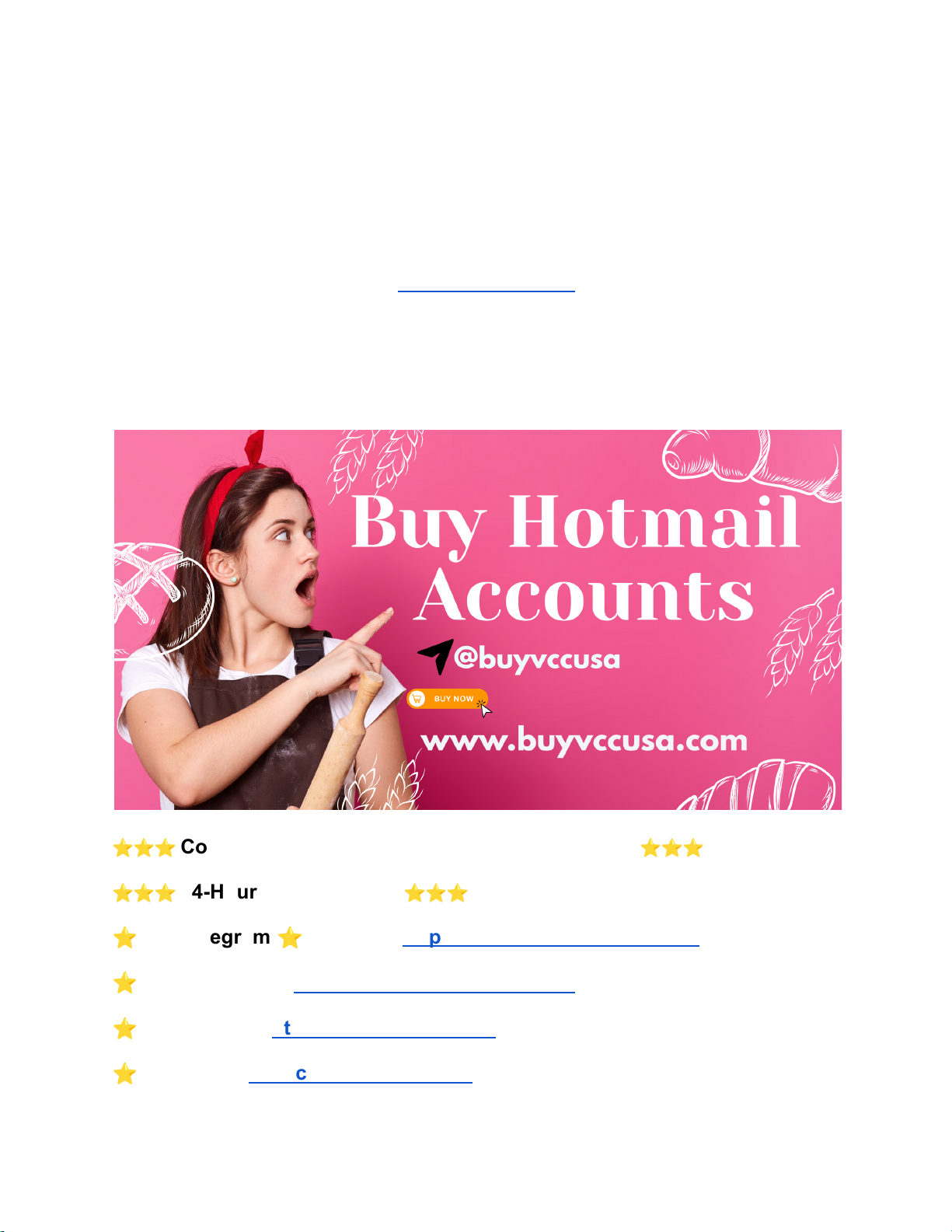 Buy Hotmail Accounts: Your Guide to Secure, Reliable Email Solutions If you are planning to buy Hotmail accounts, it is a smart decision for fast and reliable email usage. Hotmail accounts are backed by Microsoft and widely trusted for business and personal communication. Many users prefer to buy Hotmail accounts instead of creating new ones because manual registration takes time and effort. These accounts are useful for marketing, online registrations, and professional email management. BuyVccUsa.com provides verified and ready-to-use Hotmail accounts with secure delivery. Whether you need single or bulk accounts, choosing a trusted source is important. When you buy Hotmail accounts from BuyVccUsa.com, you save time, reduce risk, and get quality email accounts instantly. ⭐⭐⭐ Contact now for more information and services ⭐⭐⭐ ⭐⭐⭐ 24-Hour Reply/Contact ⭐⭐⭐ ⭐•●--➤Telegram:⭐Telegram: https://telegram.me/buyvccusa ⭐•●--➤WhatsApp: https://wa.me/+447449778952 ⭐•●--➤Website: https://buyvccusa.com/ ⭐•●--➤Email: buyvccusa@gmail.com https://buyvccusa.com/product/buy-hotmail-accounts/ https://telegram.me/buyvccusa https://wa.me/+447449778952 https://buyvccusa.com/ mailto:buyvccusa@gmail.com ⭐•●--➤More Information: https://buyvccusa.com/product/buy-hotmail-accounts/ What Are Hotmail Accounts? Hotmail accounts are Microsoft email accounts used for sending and receiving emails worldwide. Although Hotmail is now part of Outlook, Hotmail addresses are still active and popular. These accounts are used for business communication, marketing campaigns, and personal use. When users buy Hotmail accounts, they receive pre-created and verified accounts that are ready to use. This avoids phone verification and signup issues. BuyVccUsa.com offers reliable Hotmail accounts with proper security. Choosing to buy Hotmail accounts helps users manage multiple emails efficiently and maintain professional communication across different platforms. Can I Buy Hotmail Accounts Yes, you can safely buy Hotmail accounts from trusted online platforms. Many businesses and marketers purchase Hotmail accounts to save time and scale operations quickly. Buying accounts provides instant access without manual setup. However, it is important to choose a reliable seller. BuyVccUsa.com is a trusted provider offering verified and secure accounts. When you buy Hotmail accounts from BuyVccUsa.com, you receive quality accounts suitable for long-term use. Purchasing Hotmail accounts is a convenient solution for users who need multiple email addresses for business or marketing purposes. Hotmail Accounts for Sale Hotmail accounts for sale are ideal for users who need ready-made and verified email accounts. These accounts are commonly used for online registrations, business communication, and promotions. Many professionals buy Hotmail accounts to avoid registration delays. BuyVccUsa.com offers Hotmail accounts for sale with fast delivery and quality assurance. Each account is tested before delivery. Buying from a trusted source ensures security and reliability. If you want stable email performance, always buy Hotmail accounts from BuyVccUsa.com. Buy Hotmail Accounts Online Choosing to buy Hotmail accounts online saves time and effort. Online platforms provide instant access to verified accounts without manual verification. However, selecting the right website is important. BuyVccUsa.com offers a secure and easy way to purchase Hotmail accounts online. With safe payment methods and quick delivery, users can start using accounts immediately. Buying online is convenient for both individuals and businesses. When you buy https://buyvccusa.com/product/buy-hotmail-accounts/ https://buyvccusa.com/product/buy-hotmail-accounts/ Hotmail accounts online from BuyVccUsa.com, you get quality, security, and professional support. ⭐•●--➤Telegram:⭐Telegram: https://telegram.me/buyvccusa ⭐•●--➤WhatsApp: https://wa.me/+447449778952 ⭐•●--➤Website: https://buyvccusa.com/ ⭐•●--➤Email: buyvccusa@gmail.com Benefits Of Buying Hotmail Accounts There are many benefits when you buy Hotmail accounts. Purchased accounts save time and avoid signup hassles. They are useful for marketing, business emails, and registrations. Aged and verified accounts offer better stability. BuyVccUsa.com provides high-quality Hotmail accounts suitable for different needs. Buying accounts helps businesses scale operations quickly. When you buy Hotmail accounts from BuyVccUsa.com, you gain convenience, reliability, and professional email solutions. Buy Hotmail Accounts (PVA & Bulk) PVA and bulk Hotmail accounts are ideal for large-scale needs. PVA accounts are phone-verified, making them more secure. Bulk purchases help businesses manage multiple emails efficiently. Many users buy Hotmail accounts in bulk for marketing and operations. BuyVccUsa.com offers PVA and bulk Hotmail accounts with fast delivery. Choosing to buy Hotmail accounts from BuyVccUsa.com ensures security, quality, and affordability. Why Should You Buy Hotmail Accounts Many users choose to buy Hotmail accounts because it saves time and effort compared to creating new accounts manually. Hotmail accounts are trusted worldwide and widely accepted for registrations, business communication, and marketing activities. Creating multiple accounts often requires phone verification and repeated steps, which can slow down work. By choosing to buy Hotmail accounts, users get ready-to-use email addresses instantly. BuyVccUsa.com provides verified and stable accounts that reduce the risk of suspension. Businesses, marketers, and agencies benefit from using purchased accounts to scale operations quickly. Overall, deciding to buy Hotmail accounts helps improve productivity, manage multiple emails easily, and maintain professional communication without unnecessary delays. Buy Hotmail Accounts 100% Aged & Cheap https://telegram.me/buyvccusa https://wa.me