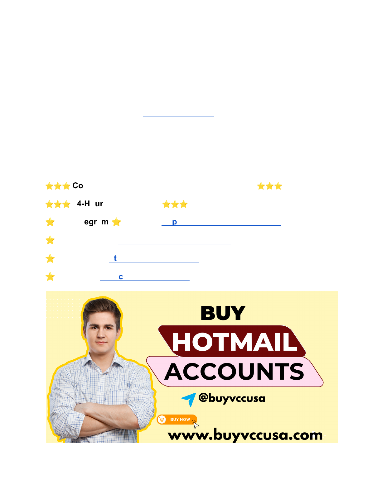 #1 Best Sites to Buy Hotmail Accounts (Bulk & Aged) Express Delivery If you want to buy Hotmail accounts, it is a smart solution for fast and reliable email usage. Hotmail accounts are still trusted worldwide because they are backed by Microsoft Outlook services. Many users choose to buy Hotmail accounts to avoid manual signup, phone verification, and time-consuming processes. These accounts are useful for business communication, marketing campaigns, and online registrations. BuyVccUsa.com provides secure and verified Hotmail accounts that are ready to use instantly. Whether you need a single account or bulk quantity, purchasing from a trusted platform ensures quality and safety. By choosing to buy Hotmail accounts from BuyVccUsa.com, users can save time, scale operations, and maintain professional email communication without hassle. ⭐⭐⭐ Contact now for more information and services ⭐⭐⭐ ⭐⭐⭐ 24-Hour Reply/Contact ⭐⭐⭐ ⭐•●--➤Telegram:⭐Telegram: https://telegram.me/buyvccusa ⭐•●--➤WhatsApp: https://wa.me/+447449778952 ⭐•●--➤Website: https://buyvccusa.com/ ⭐•●--➤Email: buyvccusa@gmail.com https://buyvccusa.com/product/buy-hotmail-accounts/ https://telegram.me/buyvccusa https://wa.me/+447449778952 https://buyvccusa.com/ mailto:buyvccusa@gmail.com ⭐•●--➤More Information: https://buyvccusa.com/product/buy-hotmail-accounts/ What Are Hotmail Accounts? Hotmail accounts are Microsoft-powered email accounts used for sending emails, managing contacts, and accessing other Microsoft services. Although Hotmail has been merged with Outlook, Hotmail email addresses are still active and widely used. These accounts are popular for business, marketing, and personal communication. When users buy Hotmail accounts, they receive pre-created and verified accounts that are ready for immediate use. This helps avoid registration delays. BuyVccUsa.com offers reliable Hotmail accounts with strong security and stability. Choosing to buy Hotmail accounts ensures smooth email usage, global accessibility, and professional credibility for various online needs. Buy Verified Hotmail Accounts Verified Hotmail accounts are more stable and secure than newly created ones. These accounts have already passed necessary verification steps, making them trusted by email systems. Many professionals prefer to buy Hotmail accounts that are verified to reduce the risk of suspension. Verified accounts are suitable for business emails, marketing, and client communication. BuyVccUsa.com provides fully verified Hotmail accounts with fast delivery. Buying verified accounts saves time and ensures better performance. When you buy Hotmail accounts from BuyVccUsa.com, you get quality, security, and peace of mind for long-term usage. Can I Buy Hotmail Accounts? Yes, you can safely buy Hotmail accounts from trusted online platforms. Many businesses and marketers purchase Hotmail accounts instead of creating them manually. Buying accounts allows instant access and easy scaling. However, choosing a reliable provider is important. BuyVccUsa.com offers secure payments, verified accounts, and quick delivery. When you buy Hotmail accounts from BuyVccUsa.com, you avoid low-quality sellers and ensure account safety. Purchasing Hotmail accounts is a convenient and effective solution for users who need multiple email accounts quickly. Why Buy an Old Hotmail Account? Old or aged Hotmail accounts are more trusted because they have been active for a long time. These accounts usually have better reputation and stability. Many marketers and businesses buy Hotmail accounts that are aged to improve deliverability. Aged accounts are less likely to face restrictions. BuyVccUsa.com offers aged Hotmail accounts that are verified and ready to https://buyvccusa.com/product/buy-hotmail-accounts/ https://buyvccusa.com/product/buy-hotmail-accounts/ use. Buying old accounts helps users run campaigns smoothly. For reliability and trust, it is wise to buy Hotmail accounts from BuyVccUsa.com. ⭐•●--➤Telegram:⭐Telegram: https://telegram.me/buyvccusa ⭐•●--➤WhatsApp: https://wa.me/+447449778952 ⭐•●--➤Website: https://buyvccusa.com/ ⭐•●--➤Email: buyvccusa@gmail.com Aged Hotmail Accounts for Sale Aged Hotmail accounts for sale are ideal for users who need stable and trusted email accounts. These accounts come with history, which improves credibility. Businesses and agencies often buy Hotmail accounts that are aged for professional communication. BuyVccUsa.com provides aged Hotmail accounts with secure delivery. Buying aged accounts reduces verification issues and improves email performance. If you want dependable email usage, choose to buy Hotmail accounts from BuyVccUsa.com for long-term success. Who Should Buy Hotmail Accounts? Hotmail accounts are useful for many users. Businesses use them for staff communication and customer support. Marketers use them for campaigns. Freelancers manage clients using multiple emails. Even individuals may buy Hotmail accounts for registrations. Anyone who needs reliable email accounts can benefit. BuyVccUsa.com provides Hotmail accounts for all types of users. Choosing to buy Hotmail accounts saves time and improves productivity. Buy PVA Hotmail Accounts PVA Hotmail accounts are phone-verified, making them more secure. These accounts have lower risk of suspension and higher trust. Many professionals buy Hotmail accounts that are PVA for business and marketing use. BuyVccUsa.com offers high-quality PVA Hotmail accounts with fast delivery. Buying PVA accounts ensures security and stability. For professional needs, always buy Hotmail accounts from BuyVccUsa.com. Benefits of Buying Hotmail Accounts from BuyVccUsa When you buy Hotmail accounts from BuyVccUsa.com, you get verified, aged, and PVA options. Fast delivery saves time. Secure payments ensure safety. Affordable pricing helps manage budgets. Reliable support is available. BuyVccUsa.com focuses on qu