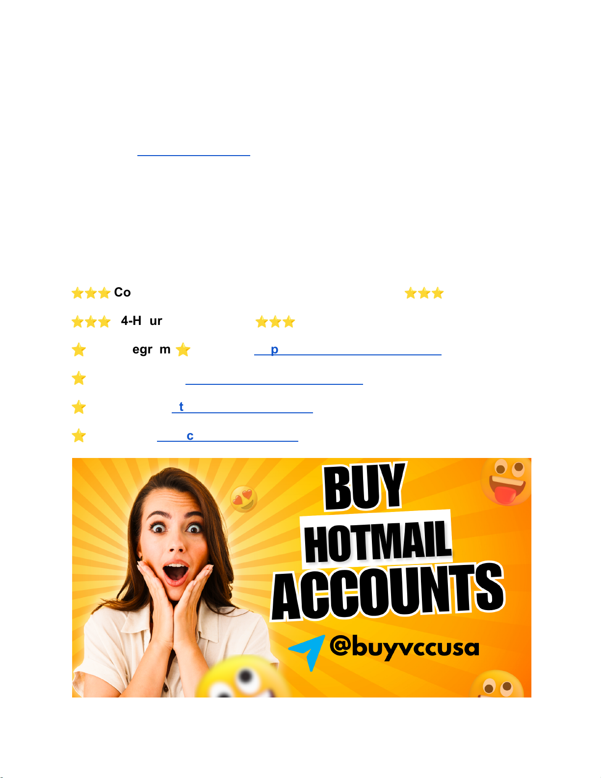 Best 07 Sites to Buy Hotmail Accounts (Bulk & Aged) - 100% Satisfaction Guaranteed If you want to buy Hotmail accounts, it is a smart and time-saving solution for managing multiple email needs. Hotmail accounts are powered by Microsoft and trusted worldwide for business, marketing, and personal communication. Many users prefer to buy Hotmail accounts instead of creating new ones because manual registration requires phone verification and time. Purchased accounts are delivered ready to use. BuyVccUsa.com provides verified and secure Hotmail accounts with reliable performance. Whether you need accounts for registrations, campaigns, or daily communication, choosing a trusted provider is important. When you buy Hotmail accounts from BuyVccUsa.com, you get quality, safety, and instant usability for professional and personal purposes. ⭐⭐⭐ Contact now for more information and services ⭐⭐⭐ ⭐⭐⭐ 24-Hour Reply/Contact ⭐⭐⭐ ⭐•●--➤Telegram:⭐Telegram: https://telegram.me/buyvccusa ⭐•●--➤WhatsApp: https://wa.me/+447449778952 ⭐•●--➤Website: https://buyvccusa.com/ ⭐•●--➤Email: buyvccusa@gmail.com https://buyvccusa.com/product/buy-hotmail-accounts/ https://telegram.me/buyvccusa https://wa.me/+447449778952 https://buyvccusa.com/ mailto:buyvccusa@gmail.com ⭐•●--➤More Information: https://buyvccusa.com/product/buy-hotmail-accounts/ What Are Hotmail Accounts? Hotmail accounts are Microsoft-based email accounts used globally for sending and receiving emails. Although Hotmail is now part of Outlook, Hotmail email addresses are still active and widely accepted. These accounts are used for business communication, marketing, and online registrations. When users buy Hotmail accounts, they receive pre-created and verified email addresses. This avoids signup limitations and saves time. BuyVccUsa.com offers reliable Hotmail accounts suitable for different needs. Choosing to buy Hotmail accounts helps users manage multiple emails easily while maintaining professional communication across platforms. Hotmail Accounts for Sale Hotmail accounts for sale are ideal for users who need instant and verified email accounts. These accounts are commonly used for business emails, promotions, and online signups. Many professionals buy Hotmail accounts to avoid the hassle of creating new ones. BuyVccUsa.com offers Hotmail accounts for sale with quality assurance and fast delivery. Each account is tested before delivery to ensure usability. If you want reliable email accounts without delays, always buy Hotmail accounts from BuyVccUsa.com for safe and smooth usage. Buy Hotmail Accounts (PVA & Bulk) PVA and bulk Hotmail accounts are suitable for businesses and marketers who need multiple emails. PVA accounts are phone-verified, making them more secure and trusted. Bulk purchases help manage large-scale operations efficiently. Many users buy Hotmail accounts in bulk to save cost and time. BuyVccUsa.com provides PVA and bulk Hotmail accounts with fast delivery and secure payment options. Choosing to buy Hotmail accounts from BuyVccUsa.com ensures stability, security, and affordability. ⭐•●--➤Telegram:⭐Telegram: https://telegram.me/buyvccusa ⭐•●--➤WhatsApp: https://wa.me/+447449778952 ⭐•●--➤Website: https://buyvccusa.com/ ⭐•●--➤Email: buyvccusa@gmail.com https://buyvccusa.com/product/buy-hotmail-accounts/ https://buyvccusa.com/product/buy-hotmail-accounts/ https://telegram.me/buyvccusa https://wa.me/+447449778952 https://buyvccusa.com/ mailto:buyvccusa@gmail.com Can I Buy Hotmail Accounts Yes, you can safely buy Hotmail accounts from trusted online platforms. Many individuals and businesses purchase Hotmail accounts for convenience and scalability. Buying accounts allows instant access without manual verification. However, choosing the right provider is important. BuyVccUsa.com is a reliable platform offering verified and secure Hotmail accounts. When you buy Hotmail accounts from BuyVccUsa.com, you receive quality accounts suitable for long-term use and professional needs. Benefits Of Buying Hotmail Accounts There are many benefits when you buy Hotmail accounts. Purchased accounts save time, avoid signup restrictions, and are ready to use. They are useful for marketing, registrations, and business communication. Aged and verified accounts offer better stability. BuyVccUsa.com provides high-quality Hotmail accounts for different purposes. By choosing to buy Hotmail accounts, users improve productivity and manage multiple emails easily. Buy Hotmail Accounts Online Purchasing emails online is the fastest and most convenient way to access verified accounts. When you buy Hotmail accounts online, you skip time-consuming manual registrations, phone verifications, and potential delays. BuyVccUsa.com offers secure online purchases, ensuring accounts are delivered instantly and ready to use. Online purchases also allow users to select bulk, aged, or PVA accounts based on specific needs. Businesses, marketers, and individual users benefit from the flexibility and speed provided by trusted platforms. Choosing to buy Hotmail accounts online from BuyVccUsa.com ensures secure payment, high-quality verified accounts, and fast delivery. This method is perfect for anyone who wants reliable email accounts for professional or personal use without hassle. Online purchasing simplifies email management. Why Should You Buy Hotmail Accounts Many users and businesses decide to buy Hotmail accounts to save time and streamline operations. Creating multiple accounts manually can be complicated, requiring phone verification and repeated steps. Purchased accounts are ready immediately, which allows marketers, agencies, and individuals to manage communications efficiently. BuyVccUsa.com provides high-quality, verified accounts to reduce risks and ensure reliability. By choosing to buy Hotmail accounts, users can focus on productivity rather than account creation. Accounts 