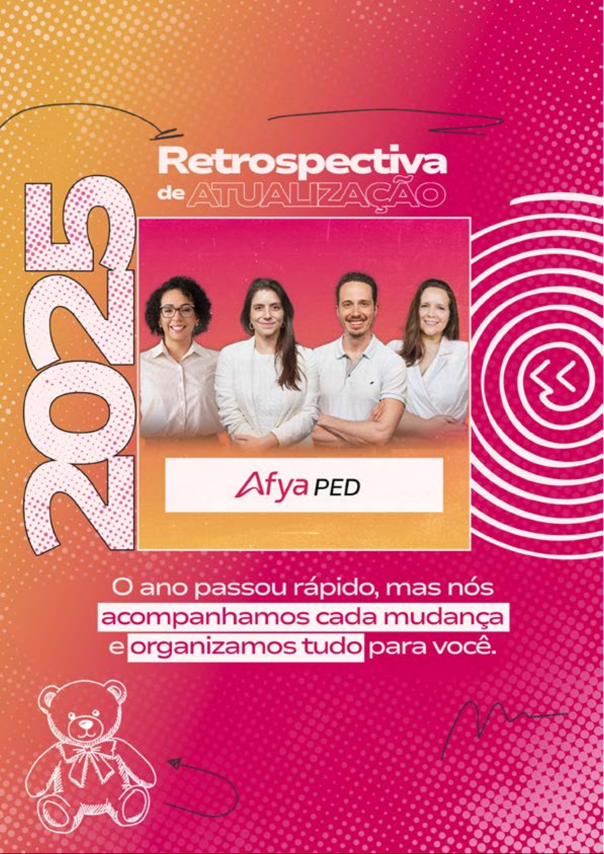 2 O ano de 2025 trouxe novidades importantes na Pedia- tria, com mudanças em condutas preventivas, rastrea- mento e manejo clínico. Este eBook reúne, de forma simples e direta, o que real- mente impacta a prática diária do pediatra — sem enro- lação e focado na aplicabilidade. Nossa proposta é clara: entregar o essencial, com foco na prática clínica real. Ao final, você encontrará uma oportunidade exclusiva para acompanhar, durante todo o ano, as próximas novidades que impactarão direta- mente sua rotina. Introdução 11 3 NOVAS RECOMENDAÇÕES DO PALS – AHA 2025/2026 4 Panorama: Antes e Depois ANTES: Guideline PALS 2020 com protocolos estabelecidos. Foco em compres- sões de qualidade, desfibrilação, vias aéreas e farmacologia. Algoritmos padroni- zados mas com necessidade de atualização conforme novas evidências. DEPOIS: Atualização oficial do PALS para 2025/2026. Ajustes em algoritmos de PCR, ventilação, identificação precoce de choque, desfibrilação, uso de fármacos, métricas de qualidade das compressões, abordagem de vias aéreas e orientações específicas para recém-nascidos em emergência. Mudança-chave: “Foco em qualidade, precocidade e evidências atualizadas” Abordagem Detalhada da Atualização 1. Algoritmos de PCR Pediátrica Atualizados Ajustes principais: • Fluxos decisórios simplificados para facilitar execução em situações de estresse • Ênfase em causas reversíveis (5H’s e 5T’s) com checklist integrado ao algoritmo • Timing mais preciso de intervenções (quando considerar ECMO, quando transportar) Critérios de reversibilidade ampliados: • Hipóxia, Hipovolemia, Hidrogênio (acidose), Hipo/hipercalemia, Hipotermia • Tensão (pneumotórax), Tamponamento cardíaco, Tóxicos, Trombose (coroná- ria/pulmonar), Trauma 2. Ventilação e Oxigenação Novas orientações: Evitar hiperventilação: • Frequência respiratória ajustada: 10-12 resp/min durante RCP com via aérea avançada • Hiperventilação reduz retorno venoso e piora perfusão cerebral 5 Priorizar ventilação eficaz: • Volume corrente: 6-7 mL/kg (evitar volumes excessivos) • Elevação visível do tórax como referência • Capnografia contínua (EtCO₂ alvo: 35-40 mmHg) Oxigenação ajustada: • Durante RCP: FiO₂ 100% • Após retorno de circulação espontânea (RCE): ajustar para SpO₂ 94-99% (evitar hiperóxia) 3. Identificação Precoce de Choque Indicadores clínicos ampliados: Choque compensado (ainda com PA normal): • Taquicardia • Extremidades frias, tempo de enchimento capilar >2 segundos • Pulsos periféricos fracos • Alteração do nível de consciência (irritabilidade, letargia) • Oligúria Choque descompensado: • Hipotensão (PAS 10-15 minutos) • Necessidade de transporte 8. Orientações para Recém-Nascidos em Emergência Distinção RN vs lactente: • RN: primeiros 28 dias de vida • Algoritmo de reanimação neonatal tem prioridade em sala de parto • Em emergência (PS, ambulância): aplicar PALS modificado Particularidades: • Hipotermia é fator crítico: manter temperatura 36,5-37,5°C • Compressões: técnica dos 2 polegares, profundidade ~4 cm, frequência 120/min • Relação compressão:ventilação 3:1 (vs 15:2 ou 30:2 em crianças maiores) 8 Impacto no Dia a Dia do Pediatra Treinamento obrigatório atualizado • Certificação PALS deve ser renovada com novo guideline 2025/2026 • Simulações em equipe com foco em métricas de qualidade Checklist de causas reversíveis • Imprimir 5H’s e 5T’s visíveis em sala de emergência • Revisar sistematicamente durante RCP Capnografia em toda RCP • EtCO₂ monitoriza qualidade de compressões e detecta RCE precocemente • Se EtCO₂ 70% (atual ~40%), extra-hospitalar >30% (atual ~10%). 22 9 MUDANÇAS NO MANEJO DA ASMA PEDIÁTRICA – GINA 2025 10 Panorama: Antes e Depois ANTES: Diagnóstico de asma em 300/μL) Fatores que diminuem probabilidade: • Sintomas apenas com resfriados • Crescimento inadequado 11 • Sintomas desde nascimento • Sintomas associados a vômitos/regurgitação 2. UsoCriterioso de Inaladores Avaliação de técnica inalatória: • Demonstrar e revisar técnica em TODA consulta • Lactentes/pré-escolares: espaçador com máscara facial é obrigatório • 4-5 anos: transição para espaçador sem máscara ou inalador de pó (se consegue coordenar) Fatores que afetam controle: • Técnica inadequada: 70-80% das crianças/cuidadores erram alguma etapa • Adesão: 300/μL sugere inflamação tipo 2 FeNO: >35 ppb (crianças) sugere inflamação eosinofílica IgE total e específica (aeroalérgenos) Terapias biológicas disponíveis: • Omalizumabe (anti-IgE): ≥6 anos, asma alérgica grave 12 • Mepolizumabe, benralizumabe (anti-IL-5): ≥12 anos, asma eosinofílica grave • Dupilumabe (anti-IL-4/IL-13): ≥6 anos, asma tipo 2 grave 4. Revisão da Terapia de Manutenção e Crise Escalonamento por steps (revisado): Step 1 2 3 4 5 Tratamento de manutenção Nenhum ICS baixa dose regular ICS baixa dose + LABA OU ICS média dose ICS média-alta dose + LABA ICS alta dose + LABA + terapia adicional (teofilina, LTRA, biológico) Alívio SABA quando necessário SABA ICS-formoterol (se >12 anos) ICS-formoterol ICS-formoterol ICS-formoterol como alívio: • Nova recomendação: ICS-formoterol (budesonida-formoterol) pode ser usado como alívio E manutenção (terapia MART) • Indicação: ≥12 anos em step 3-4 • Vantagem: toda vez que usa alívio, recebe dose de ICS (anti-inflamatório) • Reduz exacerbações graves em 30-40% Ajustes de dose: • ICS baixa: budesonida 100-200 mcg/dia, fluticasona 100-200 mcg/dia • ICS média: budesonida 200-400 mcg/dia, fluticasona 200-500 mcg/dia • ICS alta: budesonida >400 mcg/dia, fluticasona >500 mcg/dia Impacto no Dia a Dia do Pediatra Diagnóstico mais criterioso em > risco Panorama para o Futuro Tendências nos próximos 5-10 anos: • Vacina VSR (vírus sinci