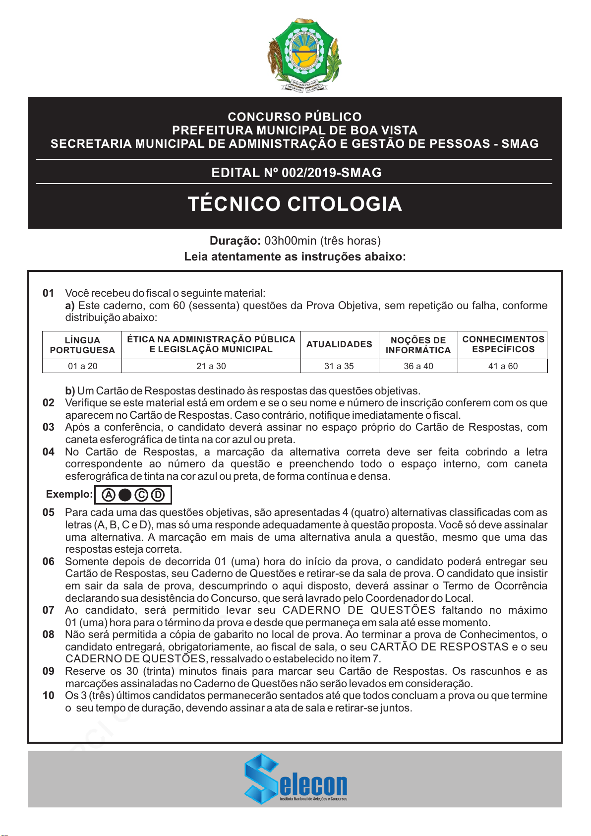 pcimarkpci MjgwNDowMTRkOjU4ODg6NTFhMTo4MGVmOmVjNWM6Y2ZmYzphYWNj:VHVlLCAyMCBKYW4gMjAyNiAwOTowNDoyMyAtMDMwMA== www.pciconcursos.com.br Duração: 03h00min (três horas) Leia atentamente as instruções abaixo: 01 Você recebeu do fiscal o seguinte material: a) Este caderno, com 60 (sessenta) questões da Prova Objetiva, sem repetição ou falha, conforme distribuição abaixo: b) Um Cartão de Respostas destinado às respostas das questões objetivas. 02 Verifique se este material está em ordem e se o seu nome e número de inscrição conferem com os que aparecem no Cartão de Respostas. Caso contrário, notifique imediatamente o fiscal. 03 Após a conferência, o candidato deverá assinar no espaço próprio do Cartão de Respostas, com caneta esferográfica de tinta na cor azul ou preta. 04 No Cartão de Respostas, a marcação da alternativa correta deve ser feita cobrindo a letra correspondente ao número da questão e preenchendo todo o espaço interno, com caneta esferográfica de tinta na cor azul ou preta, de forma contínua e densa. 05 Para cada uma das questões objetivas, são apresentadas 4 (quatro) alternativas classificadas com as letras (A, B, C e D), mas só uma responde adequadamente à questão proposta. Você só deve assinalar uma alternativa. A marcação em mais de uma alternativa anula a questão, mesmo que uma das respostas esteja correta. 06 Somente depois de decorrida 01 (uma) hora do início da prova, o candidato poderá entregar seu Cartão de Respostas, seu Caderno de Questões e retirar-se da sala de prova. O candidato que insistir em sair da sala de prova, descumprindo o aqui disposto, deverá assinar o Termo de Ocorrência declarando sua desistência do Concurso, que será lavrado pelo Coordenador do Local. 07 Ao candidato, será permitido levar seu CADERNO DE QUESTÕES faltando no máximo 01 (uma) hora para o término da prova e desde que permaneça em sala até esse momento. 08 Não será permitida a cópia de gabarito no local de prova. Ao terminar a prova de Conhecimentos, o candidato entregará, obrigatoriamente, ao fiscal de sala, o seu CARTÃO DE RESPOSTAS e o seu CADERNO DE QUESTÕES, ressalvado o estabelecido no item 7. 09 Reserve os 30 (trinta) minutos finais para marcar seu Cartão de Respostas. Os rascunhos e as marcações assinaladas no Caderno de Questões não serão levados em consideração. 10 Os 3 (três) últimos candidatos permanecerão sentados até que todos concluam a prova ou que termine o seu tempo de duração, devendo assinar a ata de sala e retirar-se juntos. CONCURSO PÚBLICO PREFEITURA MUNICIPAL DE BOA VISTA SECRETARIA MUNICIPAL DE ADMINISTRAÇÃO E GESTÃO DE PESSOAS - SMAG EDITAL Nº 002/2019-SMAG TÉCNICO CITOLOGIA Exemplo: A C D LÍNGUA PORTUGUESA ÉTICA NA ADMINISTRAÇÃO PÚBLICA E LEGISLAÇÃO MUNICIPAL ATUALIDADES CONHECIMENTOS ESPECÍFICOS 01 a 20 21 a 30 31 a 35 41 a 60 NOÇÕES DE INFORMÁTICA 36 a 40 pcimarkpci MjgwNDowMTRkOjU4ODg6NTFhMTo4MGVmOmVjNWM6Y2ZmYzphYWNj:VHVlLCAyMCBKYW4gMjAyNiAwOTowNDoyMyAtMDMwMA== www.pciconcursos.com.br LÍNGUA PORTUGUESA Leia o texto a seguir para responder às questões de 1 a 20. Texto I Publicidade de alimentos e obesidade infantil: uma reflexão necessária A epidemia de obesidade e doenças crônicas é um problema que atinge, de maneira crescente, o mundo inteiro. E tornou-se consenso entre as principais organizações e pesquisadores em saúde pública que a regulação da publicidade de alimentos é uma das estratégias necessárias para combatê-la. As campanhas de marketing não apenas influenciam as escolhas alimentares na infância, mas também buscam fidelizar consumidores desde a mais tenra idade. O objeto preferencial são os alimentos ultraprocessados, feitos a partir de ingredientes industriais, com pouco ou nenhum produto fresco, e, geralmente, com alta quantidade de açúcar, gordura e/ou sódio. Em 2010, a Organização Mundial da Saúde recomendou a redução da exposição das crianças à propaganda de alimentos, sobretudo aqueles com alta quantidade de açúcar, sal e gordura. Em 2012, a Organização Pan-Americana da Saúde aprofundou- se no tema e também apresentou recomendações de ações concretas por parte dos governos para reduzir a exposição das crianças à publicidade de alimentos. Para especialistas, a autorregulamentação do setor não tem funcionado. A mais recente publicação sobre obesidade do periódico Lancet, divulgada em fevereiro deste ano, indica que, até o momento, as iniciativas de regulação da propaganda não foram suficientes. Desde os avanços conquistados na proteção da amamentação, com a eliminação de anúncios que apresentam substitutos do leite materno, poucas ações efetivas foram implementadas para frear o massivo marketing da indústria de alimentos para crianças em todo o mundo. No Brasil, apesar da proibição da publicidade abusiva (direcionada à criança) prevista no Código de Defesa do Consumidor (CDC) desde 1990, a falta de regulamentação específica para alimentos prejudica a efetivação da lei. Em 2010, a movimentação internacional em torno do tema motivou a elaboração da primeira regulação sobre publicidade de alimentos em geral, por parte da Anvisa (Agência Nacional de Vigilância Sanitária). A regulação, no entanto, foi suspensa logo após sua publicação, devido à pressão de diversas associações da indústria de alimentos. A Norma Brasileira de Comercialização de Alimentos para Lactentes e Crianças de Primeira 1. A partir da discussão do texto, é possível estabelecer entre as expressões “publicidade de alimentos” e “obesidade infantil”, contidas no título, uma relação definida, respectivamente, pelo seguinte par de palavras: A) generalização/causa B) indicação/contraposição C) motivação/consequência D) exemplificação/refutação Infância, Bicos, Chupetas e Mamadeiras (NBCAL) contribuiu muito para a proteção ao aleitamento materno, porém aguarda regu