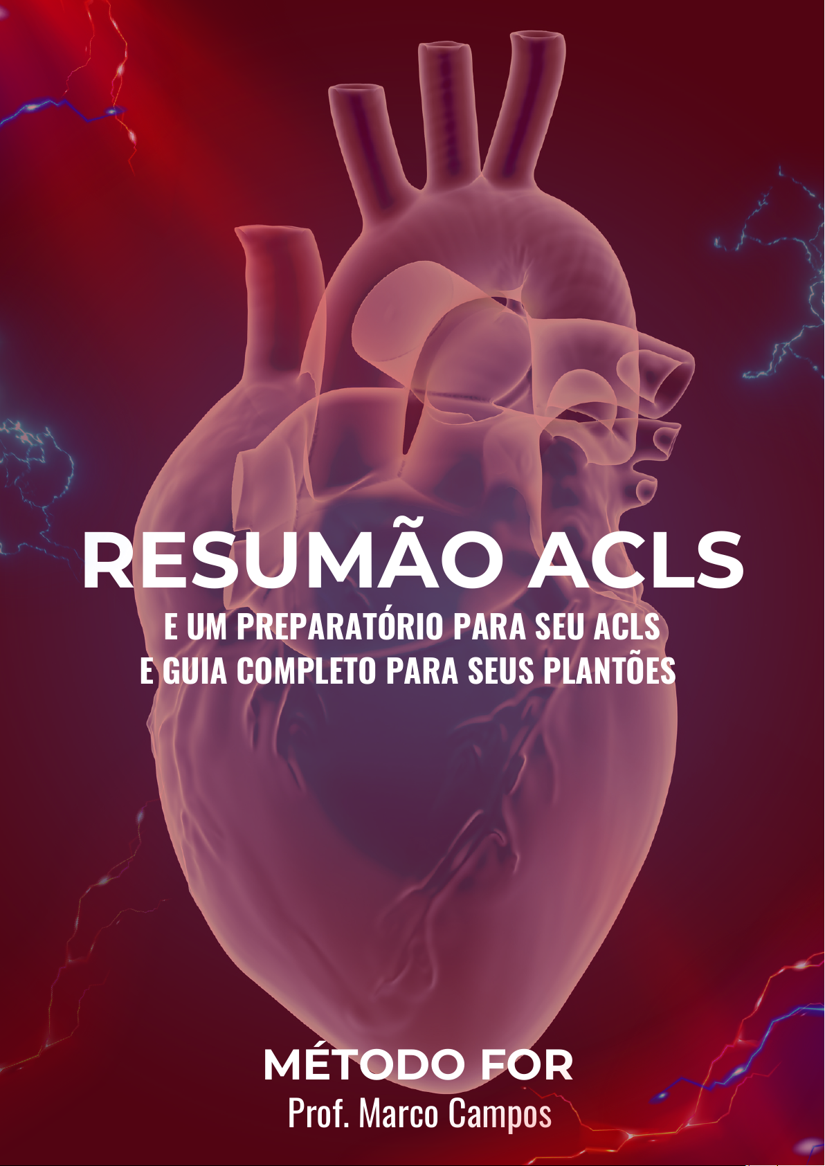 MÉTODO FOR RESUMÃO ACLS E UM PREPARATÓRIO PARA SEU ACLS E GUIA COMPLETO PARA SEUS PLANTÕES Prof. Marco Campos CONHEÇA - ME Instrutor de Suporte Avançado de Vida Cardiovascular (ACLS) pela American Heart Association Formado pela FMUSP, pós graduado em cardiologia e especialista em emergências cardiovasculares e já capacitou mais de 7 mil Médicos e Enfermeiros em cursos online e presenciais. INSTRUTOR ENF. MARCO CAMPOS @profmarcocampos Com uma sólida carreira em salas de emergências de grandes instituições, atualmente, além de atuar como Enfermeiro em São Paulo, dedica parte do seu tempo ajudando Médicos(as) e Enfermeiros(as) a alcançar um alto nível no atendimento das emergências cardiovasculares. 02 SUMÁRIO 1. 2. 3. Suporte básico de vida e suporte de via aérea..................... 04 Bradiarritmias.............................................................................................. 08 Taquiarritmias.............................................................................................. 15 4. Paradas cardiorespiratórias........................................... 20 5. Práticas de Casos clínicos ................................................................... 33 6. Retorno de circulação espontânea................................................39 SBV Abordagem sistemática da Via Aérea Como identificar bloqueis AV Manejo adequado Instalação de marca - passo Como identificar taquiarritmias Reconhecer sinais de instabilidade hemodinâmica Manejo - condutas terapêuticas Ritmos de PCR Manejo - condutas terapêuticas Dicas do especialista Cuidados pós parada Manejo -Condutas terapêuticas SUPORTE BÁSICO DE VIDA E SUPORTE DE VIA AÉREA RESUMÃO ACLS Este guia foi cuidadosamente elaborado para ser seu parceiro nos momentos mais desafiadores do plantão. Com uma abordagem direta, objetiva e centrada na prática, você encontrará aqui as principais estratégias para o manejo eficiente das emergências cardiovasculares, tanto no ambiente hospitalar quanto como preparação sólida para o Advanced Cardiovascular Life Support (ACLS). Ao sistematizar os protocolos de atendimento, você desenvolverá mais segurança, agilidade e confiança para atuar em situações críticas, garantindo um cuidado mais eficaz e assertivo. Além disso, este material é um recurso valioso de estudo, ideal para quem busca se destacar no curso de ACLS e elevar a qualidade da assistência prestada aos pacientes. Prepare-se para aprimorar sua atuação profissional com conhecimento técnico, clareza nas condutas e foco no que realmente importa: salvar vidas. VAMOS LÁ ENTÃO? GUIA PRÁTICO DE EMERGÊNCIAS CARDIOVASCULARES 05 Checar responsividade ( Tocando vigorosamente nos dois ombros da vítima) Chamar ajuda ( SME 192 e solicitar um DEA) Checar pulso carotídeo e respiração simultâneos ( 5-10 seg) Compressões Abertura de Via aérea Boas ventilações com BVM/AMBU- 30:2 (2 ventilações a cada 30 compressões sem VA avançada) Desfibrilação assim que o DEA estiver disponível. ( Ligue o DEA e aguarde as instruções) SUPORTE BÁSICO DE VIDA Abordagem ao paciente inconsciente em PCR. Nota: Sequência para atendimento Intra ou Extra hospitalar 06 Checar responsividade ( Tocando vigorosamente nos dois ombros da vítima) Chamar ajuda ( SME 192 e solicitar um DEA) Checar pulso carotídeo e respiração simultâneos ( 5-10 seg) Vítima tem pulso, mas não respira Abertura de Via aérea (Chin-Lift/atenção a suspeita de trauma) Boas ventilações com BVM/AMBU- ( 1 ventilação a cada 6 segundos). Se o tórax não expandir, você deverá inserir uma COF (Cânula orofaríngea) e ventilar novamente, observando se há expansibilidade. Desfibrilação - Nesta estação não será utilizado o DEA. SUPORTE DE VIA AÉREA Abordagem ao paciente inconsciente em parada respiratória . 07 Nota: Na falha de dispositivos adjuntos, se faz necessário aplicação de dispositivos avançados RESUMÃO ACLS BRADIARRITMIAS BRADIARRITMIAS As bradiarritmias são distúrbios do ritmo cardíaco com frequência abaixo de 60 bpm. Suas causas podem ser cardíacas (como disfunção do nó sinusal ou bloqueios atrioventriculares) ou extracardíacas (como uso de medicamentos, distúrbios eletrolíticos ou aumento do tônus vagal). Identificar a causa é essencial para um manejo rápido e eficaz, especialmente em situações de emergência. EXEMPLO DE UM CASO CLÍNICO P/ SEU PLANTÃO Mulher, 64 anos, admitida na sala de emergência com fraqueza generalizada. Histórico de HAS e Fibrilação atrial. 09 Paciente consciente - Realizar a abordagem sistemática; Monitor ( PA/Saturação/FC) Oxigênio (S/N) Veia (Estabeleça um acesso venoso ou IO) Exame físico e exames complementares Avaliar via aérea Boas ventilações Circulação ( PA/Perfusão/Sinais de choque) Deficit neurológico Exames complementares MANEJO DO PACIENTE Os quatro mnemônicos a seguir devem ser utilizados em todos os pacientes conscientes 10 Reconhecer sinais de instabilidade hemodinâmica Dispneia - FR >30 / SO2 30 / SO2e objetivos Confirmar que foram compreendidos Evitar sobrecarregar um único membro com múltiplas tarefas Supervisionar o cumprimento adequado das funções por toda a equipe 21 AS CHOCÁVEIS SÃO: Fibrilação ventricular (FV) , caracterizado por um ritmo caótico, totalmente desorganizado. RITMOS DE PCR Existem dois grupos de PCR, as chocáveis e as não chocáveis. 22 Abaixo segue um exemplo de organização da equipe para o atendimento das emergências: AS NÃO CHOCÁVEIS SÃO: Assistolia - Ao visualizar uma linha reta no monitor, deve- se seguir o protocolo de confirmação de assistolia, composto por 3 passos essenciais: 1.Checar os cabos e eletrodos torácicos — verificar se há algum desconectado. 2.Aumentar o ganho ao máximo — para melhorar a visualização do traçado. 3.Trocar a derivação (DI, DII, DIII) — para confirmar se o ritmo é realmente uma assistolia. 💡 Para facilitar a memorização, 