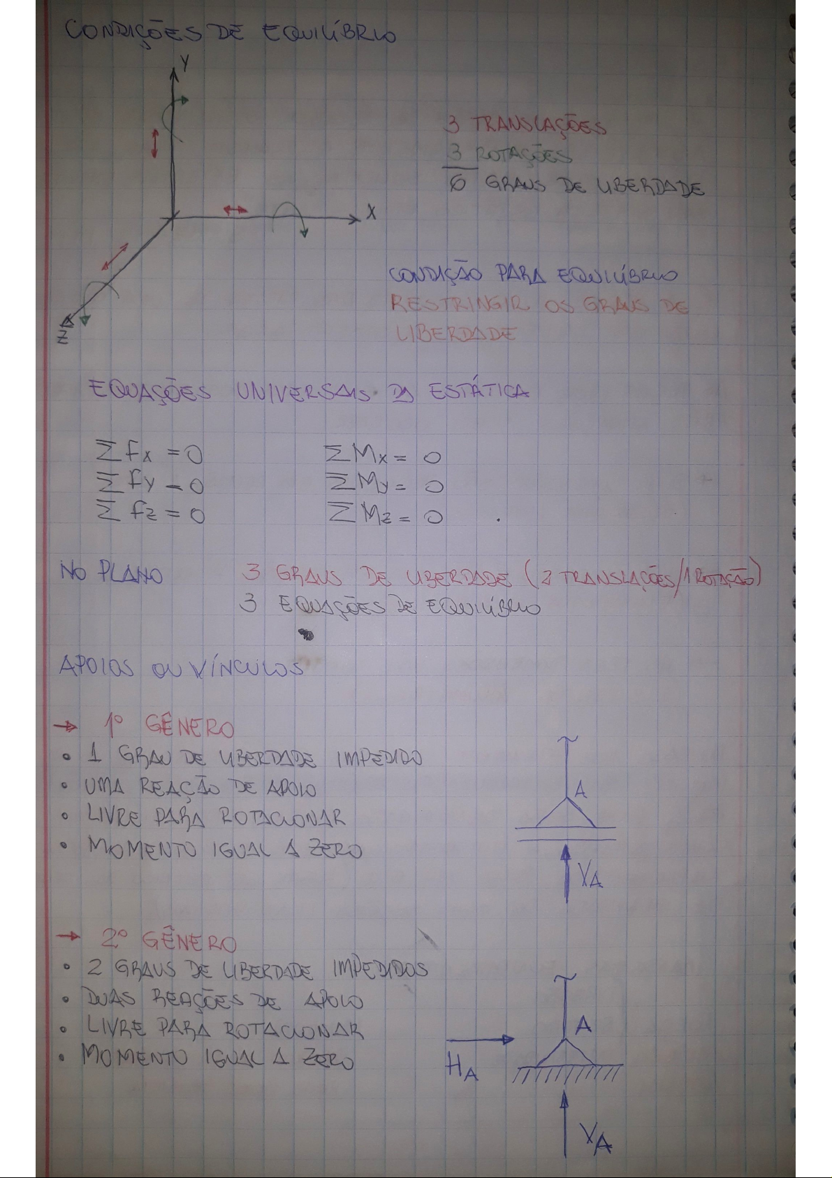 CONDIÇÕES DE 3 3 6 GRAUS DE UBERDADE x CONDIÇÃO PARA RESTRINGIR as GRAUS DE Z LIBERDADE EQUAÇÕES DD ESTÁTICA = 0 1 0 = 0 11 0 M IN Mz 0 No PLANO 3 GRAUS DE (2 3 APOIOS or 10 GENERO 1 DE UBERDADE IMPEDIDO UMA A LIVRE PARA MOMENTO IGUAL A ZERO VA 2 GRAUS DE LIBERDADE IMPEDIDOS DUAS DE APOLO LIVRE PARA ROTACIONAR A MOMENTO A ZERO HA(ENGASTE) 3 GRAUS DE LIBERDADE IMPEDIDOS TRÊS DE MA NAO ESTÁ LIVRE PARA HA A MOMENTO DIFERENTE ZERO VA ESTATICIDADE E ESTABILIDADE NÚMERO DE = X (REAÇÕES EQUAÇÕES DE X E ESTRUTURA HIPOSTÁTICA ESTRUTURA INSTÁVEL E ISOSTÁTICA NECESSARIA, MAS N10 > ESTRUTURA HIPERESTÁTICA PARA UMA ESTRUTURA ESTÁVEL DE (G) X 0 ESTRUTURA HIPOSTÁTICA 0 ESTRUTURA ISOSTÁTICA ESTRUTURA EXEMPLOS DE DE 1) A B A X= 2 + 1 = 3 1 REACÃO E=3 = f = (EQ. DE IN = G- X2) X= 4 2 2 3 DE APOW DE APOLO G= = 3 G= = 1 ESTRUTURA 3) 2+ 2+ 2+ 2= 2 R.A. 2R.A. 2R.A. = 8 G 8- 3 G= = 5 : ESTRUTURA 4) X= 3 MA) E=3 3 R.A. G= 3 G= 0 ESTRUTURA ISOSTÁTICA 5) A X 1+ 1=2 (INCOGNITAS) 1 R.A. 1R.A 3 M 2-3 G= 1 2 ESTRUTURA 6) A 3 R.A. 1 R.A. X= 11 B H 4 = 3 G = - E G= = 4- 3 G 11 1 ESTRUTURA7) X= 4 A A A 3 1 R A 1R.A. 1 R.A. 1R.A. No ENTANTO A TRANSLAÇÃO G 3 ESTA IMPE HN G 1 ESTRUTURA 8) A B X= I (INCÓGNITAS) 2 R.A. 1 R.A E=3 = (EQ = X - NO ENTANTO 0 IMPEDE G= 3 - 3 NAS Ax E "B" G 0 IMPEDE TRANS LAÇÃO NA DIRECÃO Ax A DO SISTEMA NÃO ESTA ESTRUTURA 9) = = (INCÓGNITAS) 2 R.A. 1 R.A E=B = X- W G 3 0 :- ESTRUTURA DE P f HA if 0 A B + HA VB - P.a = 0 a b = P.a l l CARGA N = 0 CONCENTRADA VA VA + VB = P FH=0 = VA + P.a =P = IN > M = P.b lQ I B V IN f H=O MA 4 M W l VA VB = 0 0 + D A 0 CARGA - I 0 UNIFORMEMENTE = VB= = Ql 2 2 + = 0 + Q 2 11 0 VA= и 2