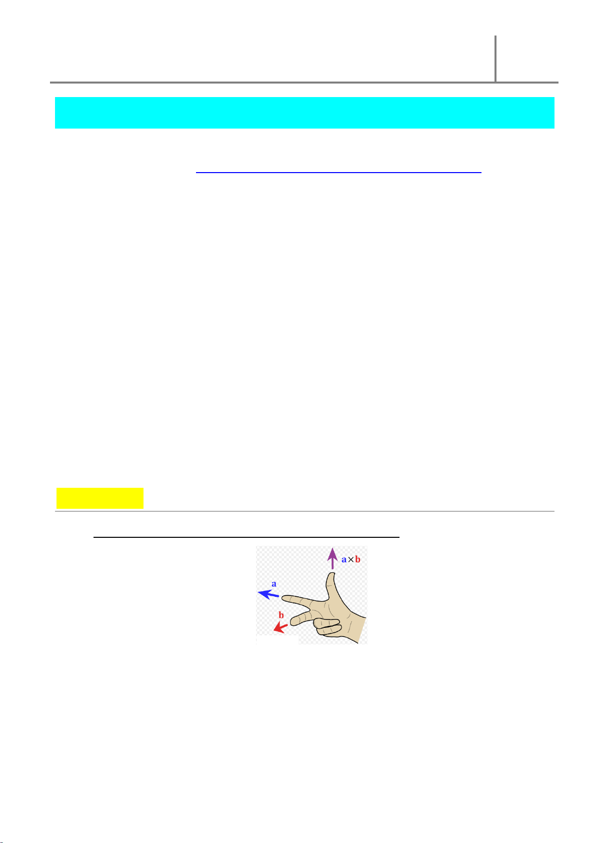 Notas de aula: 4_Produto Vetorial TÓPICOS 1 Profa. Angelita Minetto Araújo UTFPR DAMAT 1 Aula n. 4 – PRODUTO VETORIAL ou PRODUTO EXTERNO sugestão: Disponível em: https://www.youtube.com/watch?v=GIAKtb6mHDg . Prof. Manoel Wallace Alves Ramos O produto vetorial é uma operação binária sobre vetores em um espaço vetorial. Seu resultado difere do produto escalar por ser também um vetor, ao invés de um escalar. Seu principal uso baseia-se no fato que o resultado de um produto vetorial é sempre ortogonal a ambos os vetores originais. Aplicações: na fórmula do operador vetorial rotacional. para descrever a Força de Lorentz experimentada por uma carga elétrica movendo-se em um campo magnético. https://www.youtube.com/watch?v=GIAKtb6mHDg http://pt.wikipedia.org/wiki/Opera%C3%A7%C3%A3o_bin%C3%A1ria http://pt.wikipedia.org/wiki/Vector_(espacial) http://pt.wikipedia.org/wiki/Espa%C3%A7o_vetorial http://pt.wikipedia.org/wiki/Produto_escalar http://pt.wikipedia.org/wiki/Escalar http://pt.wikipedia.org/wiki/For%C3%A7a_de_Lorentz Notas de aula: 4_Produto Vetorial TÓPICOS 1 Profa. Angelita Minetto Araújo UTFPR DAMAT 2 “Quando uma carga elétrica se movimenta em um campo magnético, sofre a ação da força magnética. Esta força é perpendicular à direção do deslocamento e também perpendicular à direção do campo magnético no qual ela está inserida.” Fonte: https://www.infoescola.com/fisica/forca-de- lorentz/#:~:text=Quando%20uma%20carga%20el%C3%A9trica%20se,no%20qual%20ela%20est%C3%A1%20inserida. As definições de torque e momento angular também envolvem produto vetorial. O torque é o agente dinâmico da rotação. Quando aplicamos um torque sobre algum corpo, esse corpo pode ganhar velocidade angular, passando a descrever um movimento de rotação. Dizemos que, quando um corpo está em rotação, ele apresenta momento angular. Fonte: https://brasilescola.uol.com.br/fisica/torque-uma-forca.htm#:~:text=ser%C3%A1%20rotacion%C3%A1%2Dlo.- ,Torque%20e%20momento%20angular,rota%C3%A7%C3%A3o%2C%20ele%20apresenta%20momento%20angular. para calcular a normal de um triângulo ou outro polígono, o que é importante no ramo da computação gráfica. para o desenvolvimento de jogos eletrônicos, para permitir efeitos que simulam iluminação, dentre outros. https://brasilescola.uol.com.br/fisica/torque-uma-forca.htm#:~:text=ser%C3%A1%20rotacion%C3%A1%2Dlo.-,Torque%20e%20momento%20angular,rota%C3%A7%C3%A3o%2C%20ele%20apresenta%20momento%20angular https://brasilescola.uol.com.br/fisica/torque-uma-forca.htm#:~:text=ser%C3%A1%20rotacion%C3%A1%2Dlo.-,Torque%20e%20momento%20angular,rota%C3%A7%C3%A3o%2C%20ele%20apresenta%20momento%20angular https://www.google.com/search?rlz=1C1FCXM_pt-PTBR991BR991&q=O+que+diz+a+Lei+de+Lorentz?&tbm=isch&source=iu&ictx=1&vet=1&fir=LZkn8INv4UJpRM,RX96MwsV1ITh3M,_&usg=AI4_-kRz27UFtInYdLZ7_YZ03UNm7KYXZw&sa=X&ved=2ahUKEwiZ_L-_mfv2AhU9pJUCHfjSDigQ9QF6BAgeEAE#imgrc=LZkn8INv4UJpRM Notas de aula: 4_Produto Vetorial TÓPICOS 1 Profa. Angelita Minetto Araújo UTFPR DAMAT 3 Dados dois vetores �⃗⃗� e �⃗⃗� no espaço, podemos definir um terceiro vetor, chamado de produto vetorial de �⃗⃗� por �⃗⃗� como sendo o vetor ortogonal a esses dois vetores: O produto vetorial de �⃗� por 𝑣 é denotado por �⃗� ⨯ 𝑣 ou �⃗� ∧ 𝑣 Se �⃗� ⫽ 𝑣 , então, por definição o produto vetorial (ou produto externo) de �⃗� por 𝑣 , é o vetor nulo. Notação: �⃗� ⨯ 𝑣 = 0⃗ ou �⃗� ∧ 𝑣 ⃗⃗⃗ = 0⃗ Exemplo: �⃗� = 2 𝑖 - 𝑗 + �⃗� e 𝑣 = 𝑖 + 𝑗 - 2 �⃗� , calcule o produto externo entre �⃗� e 𝑣 . Notas de aula: 4_Produto Vetorial TÓPICOS 1 Profa. Angelita Minetto Araújo UTFPR DAMAT 4 Ao contrário do produto escalar, que resulta num escalar, e pode ser definido em vetores do espaço e em vetores do plano, o produto vetorial só pode ser definido em vetores do espaço, pois está ligado essencialmente ao conceito de orientação. O sentido de �⃗� ⨯ 𝑣 pode ser dado pela regra da mão direita. A regra da mão direita pode ser melhor observada nas figuras que seguem, onde o polegar indica o sentido do vetor oriundo do produto vetorial: Notas de aula: 4_Produto Vetorial TÓPICOS 1 Profa. Angelita Minetto Araújo UTFPR DAMAT 5 Assim, nas figuras que seguem tem-se: �⃗� ⨯ 𝑣 = �⃗⃗� e 𝑣 ⨯ �⃗� = − �⃗⃗� Sugestão... Teste 😁: https://www.youtube.com/watch?v=6M3Nhz2g1OE https://www.youtube.com/watch?v=6M3Nhz2g1OE Notas de aula: 4_Produto Vetorial TÓPICOS 1 Profa. Angelita Minetto Araújo UTFPR DAMAT 6 Propriedades do produto vetorial i. �⃗� ⨯ (𝑣 + �⃗⃗� ) = �⃗� ⨯ 𝑣 + �⃗� ⨯ �⃗⃗� Ou ( �⃗� + 𝑣 ) ⨯ �⃗⃗� = �⃗� ⨯ �⃗⃗� + 𝑣 ⨯ �⃗⃗� ii. ( 𝛼 �⃗� ) ⨯ 𝑣 = 𝛼 ( �⃗� ⨯ 𝑣 ) = �⃗� ⨯ (𝛼 𝑣 ) iii. �⃗� ⨯ 𝑣 = − 𝑣 ⨯ �⃗� Interpretação geométrica do produto vetorial A área do paralelogramo que tem �⃗� e 𝑣 como lados é a norma do produto vetorial destes vetores, isto é 𝑆 = |�⃗� ⨯ 𝑣 | Fórmula canônica Notas de aula: 4_Produto Vetorial TÓPICOS 1 Profa. Angelita Minetto Araújo UTFPR DAMAT 7 Dados dois vetores: �⃗� = x1 𝑖 + y1 𝑗 + z1 �⃗� e 𝑣 = x2 𝑖 + y2 𝑗 + z2 �⃗� o produto vetorial �⃗� ⨯ 𝑣 pode ser escrito na forma de um determinante: �⃗� ⨯ 𝑣 = || 𝑖 𝑗 �⃗� 𝑥1 𝑦1 𝑧1 𝑥2 𝑦2 𝑧2 || = | 𝑦1 𝑧1 𝑦2 𝑧2 | . 𝑖 − | 𝑥1 𝑧1 𝑥2 𝑧2 | . 𝑗 + | 𝑥1 𝑦1 𝑥2 𝑦2 | . �⃗� Obs.: Para usar 𝑗 positivo na fórmula é preciso fazer: | 𝑧1 𝑥1 𝑧2 𝑥2 | Vetor unitário e ortogonal Para achar um vetor que seja ortogonal aos vetores �⃗� e 𝑣 , calculamos o produto externo, pois pela definição: o produto externo resulta em um vetor ortogonal a