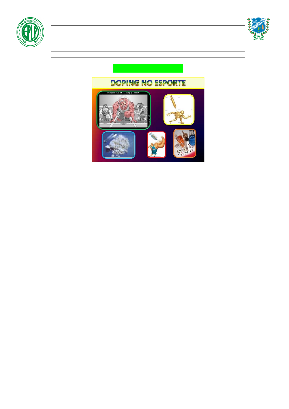 1ª Atividade Remota O doping esportivo é a utilização, por um atleta, de substâncias não naturais ao corpo para melhorar seu desempenho de forma artificial. Atualmente, durante competições esportivas internacionais, os jornais publicam escândalos envolvendo técnicos e atletas pegos no exame antidoping. A notícia mais recente desse tipo foi no Mundial de Atletismo da Alemanha, no início de agosto, envolvendo esportistas brasileiros. O uso ilícito de substâncias - medicamentos e hormônios - como artifício para ganhar competições esportivas é muito antigo. Já nos Jogos Olímpicos da Grécia, cerca de três séculos antes de Cristo, havia uma regulamentação para evitar que os competidores tivessem o baço arrancado. Acreditava-se que com o esforço físico dos maratonistas, este órgão poderia endurecer e prejudicar o resultado. Ao longo dos anos, esse tipo de artimanha tem se sofisticado. Ao mesmo tempo em que as substâncias e os fármacos são aprimorados para passarem despercebidos nos exames de urina e de sangue feitos nos atletas, os próprios métodos de detecção também se sofisticam. Assim, é difícil haver dúvida nos resultados, conforme explica Jair Rodrigues Garcia Junior, professor do curso de Educação Física da Universidade do Oeste Paulista (Uno este), ainda que algumas substâncias sejam parecidas com as produzidas pelo corpo humano. "As mulheres, por exemplo, também produzem hormônios masculinos, porém, em pequenas quantidades. Quando elas usam esteroides para aumentar a força muscular, os exames detectam a quantidade de hormônio artificial no corpo, porque a excreção na urina é diferente da natural", afirma o professor. O que complica para determinar se um atleta usou ou não doping, é que muitos trocam a urina a ser examinada por a de outra pessoa, sem resquícios dos medicamentos ou drogas. Por isso, os comitês esportivos internacionais agora também pedem DNA da urina, quando necessário. Para o doping não deixar traços, muitos atletas deixam de usar as drogas no período de competição, mas já foram "beneficiados" por seus efeitos. "Agora alguns campeonatos começam a realizar os testes ainda no período de treinamento para evitar isso", diz o professor Jair. Como o doping é mais comum em competições importantes, geralmente internacionais, os envolvidos são esportistas de muita experiência. "Dificilmente um atleta Escola Municipal de Ensino Fundamental Padre Leandro Pinheiro Disciplina: Educação Física Professora: Bianca Soeiro Aluno(a) 8º Ano Turma: Turno: Data: desse nível profissional não sabe que as substâncias são ilícitas, especialmente porque a maioria delas é injetável e é preciso a concordância dele para a aplicação. Por isso, não se pode culpar somente os treinadores", afirma. A dificuldade em combater o doping se dá também porque praticamente todas as substâncias utilizadas são de uso médico, vendidas com receitas controladas. "Um paciente com câncer, por exemplo, usa hormônios para recuperar a força muscular", explica Jair. Isso significa que por trás do doping, há sempre alguém que está descumprindo a lei e vendendo esses medicamentos sem o controle médico devido. É importante fazer uma reflexão em relação a algumas práticas presentes no mundo esportivo, no qual atletas na busca pela superação de recordes e pela constituição de um corpo atlético ideal com desempenhos extraordinários. Para atingir esses objetivos alguns atletas utilizam medicamentos que podem desencadear uma série de prejuízos na sua saúde e, pode abreviar sua carreira esportiva. É também interessante refletir se essa prática é correta, pensando no que ela significa para o atleta e para à sociedade/mundo esportivo. O Comitê Olímpico Internacional criou uma lista com cinco categorias de substâncias proibidas: anabolizantes, diuréticos, hormônios, analgésicos narcóticos e estimulantes. Todas elas melhoram o desempenho do atleta, mas têm efeitos colaterais prejudiciais à saúde. Essa lista é constantemente atualizada para incluir drogas novas. Os atletas que fazem uso dessas substâncias são punidos pelos órgãos desportivos, assim como seus médicos e treinadores. Muitos atletas famosos foram suspensos da prática esportiva em competições e perderam títulos e medalhas conquistados. No Brasil, já ocorreram casos de doping no futebol, vôlei, natação, atletismo e judô, entre outros. Um dos casos mais famosos de doping da história esportiva foi o do velocista canadense, nascido na Jamaica, Ben Johnson, que quebrou o recorde mundial dos 100 metros rasos duas vezes e foi considerado o homem mais veloz do mundo na década de 1980. Em 1988, nas Olimpíadas de Seul, Johnson perdeu a medalha de ouro após ser flagrado no exame antidoping pelo uso de uma substância chamada anabolizante. Atividade de Fixação 1- O que é doping de acordo com seu entendimento? 2- Quais os efeitos ou resultados o atleta busca obter com o doping? 3- Por que o doping é uma prática proibida, ilícita? 4- Vale a pena o doping nos esportes? Por quê? 5- O que complica para saber se um atleta usou ou não um doping? 6- Como os atletas agem para não deixar traços de doping? https://escola.britannica.com.br/artigo/futebol/482528 https://escola.britannica.com.br/artigo/v%C3%B4lei/482819 https://escola.britannica.com.br/artigo/nata%C3%A7%C3%A3o/482615 https://escola.britannica.com.br/artigo/atletismo/482699 https://escola.britannica.com.br/artigo/jud%C3%B4/483327 https://escola.britannica.com.br/artigo/Jamaica/481605 https://escola.britannica.com.br/artigo/Jogos-Ol%C3%ADmpicos/482102