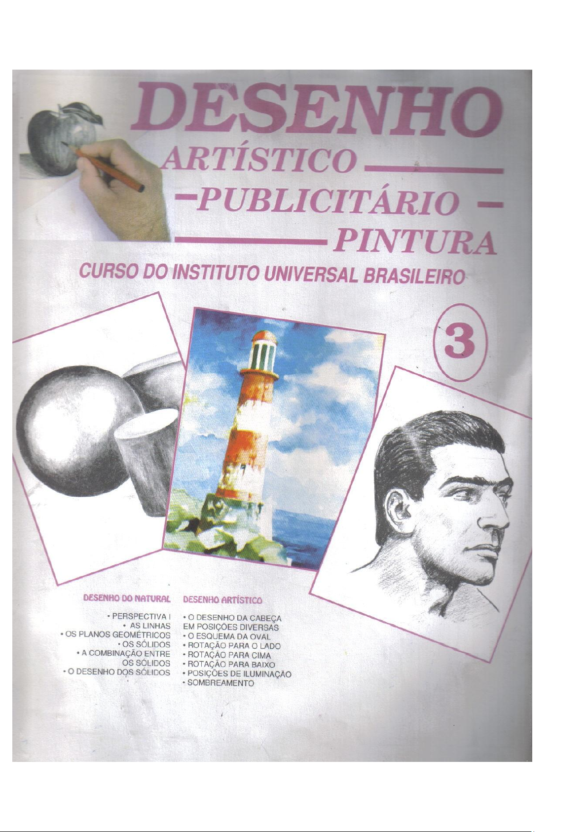 DESENHO ARTÍSTICO -PUBLICITÁRIO - PINTURA CURSO DO INSTITUTO UNIVERSAL BRASILEIRO 3 DESENHO DO NATURAL DESENHO ARTÍSTICO PERSPECTIVA I DESENHO DA CABEÇA AS LINHAS EM POSIÇÕES DIVERSAS OS PLANOS GEOMÉTRICOS ESQUEMA DA OVAL OS SÓLIDOS ROTAÇÃO PARA LADO A COMBINAÇÃO ENTRE ROTAÇÃO PARA CIMA OS SÓLIDOS ROTAÇÃO PARA BAIXO 0 DESENHO DOS SÓLIDOS POSIÇÕES DE ILUMINAÇÃO SOMBREAMENTOPERSPECTIVA Quando nós utilizamos um pedaço da linha reta desenho, podemos, para efeito de estudo, marcar seu começo e seu fim, por meio de letras. Para quem está aprendendo a desenhar, torna-se um Nesse caso a linha reta toma nome de segmento de grande desafio, representar os objetos que apresentam reta AB. volume, como uma caixa de fósforos, uma mala ou uma geladeira. Em auxílio ao desenhista vem uma técnica muito interessante que permite a representação de qualquer objeto A de três dimensões, comprimento, largura e altura, através de B um desenho que transmite a sensação de volume a todo RETA HORIZONTAL aquele que observa. Figura 2 Segmento de reta AB. Se segmento de reta estiver na posição em pé, dizemos que 0 segmento de reta AB está na posição ALTURA A COMPRIMENTO LARGURA Figura 1 Exemplo de desenho em três dimensões. Essa técnica foi descoberta e desenvolvida por arquitetos e pintores do período da história chamado "RENASCIMENTO", dos quais podemos citar arquiteto Leon Battista Alberti e o pintor Leonardo da Vinci. Numa definição bem simples, podemos dizer, que a Figura 3 Linha PERSPECTIVA é a técnica de representar através de um vertical reta AB. desenho objetos como eles aparecem à nossa vista. Para que possamos melhor compreender e aplicar vários recursos da Perspectiva nos nossos desenhos, é preciso nos familiarizar com os componentes básicos da Foto 2 Comparação de um poste de iluminação, mesma, tais como linhas, formas e planos. com reta vertical. Vamos então conhecer esses componentes? LINHA RETA Como próprio nome diz, é uma linha Caso segmento de reta estiver na posição deitada, que caminha sempre na mesma direção, no sentido reto, como dizemos que segmento de reta AB, está na posição fios elétricos no alto dos postes. horizontal. Foto 1 Exemplo de Foto 3 Comparação linha reta. de dormente de estrada de ferro com reta horizontal AB. 36Foto 22 Três sólidos geométricos. M Foto 20 torre de igreja pirâmide paralelepipedo e E M C M M M E M C C E E M C Foto 23 Desenho dos três sólidos geométricos vistos Você encontra desenho esboçado com as indicações das zonas de luz e sombra: E, zona de tom escuro; M, zona de tom médio e C, zona de tom claro. Abaixo, temos desenho acabado. Foto 21 nave espacial cilindro importante, é que você saiba reconhecer as formas dos sólidos geométricos nos objetos que diariamente estão ao alcance da sua visão. UM DESENHO DO NATU- RAL A Vamos agora, representar através de um desenho três sóli- dos geométricos, realçando seu volume com auxílio das tonali- dades, que vão do branco do papel até negro intenso O branco do papel representa a luz e negro representa a ausência dela. Os vários tons de cinza representam a passagem da área iluminada até a área escura, sem iluminação. Não vamos ainda utilizar os recursos da perspectiva pois é Foto 24 Desenho acabado dos sólidos geométricos. preciso antes, nos familiarizarmos com desenho livre. 41NOSSA PRIMEIRA COMPOSIÇÃO Em desenho do natural, a compo- sição é a arte de combinar dois ou mais objetos organizando um conjunto agradá- vel esteticamente à visão. Foto 29 Cilindro e cubo desenhados. Foto 28 Cilindro Vamos supor que o desenhista irá desenhar 3 sólidos geométricos que serão Foto 25 Cilindro sobre plano. arranjados numa composição. Na foto 25, um cilindro é colocado sobre plano, sendo desenhado,como na foto 28. Em seguida é colocado à frente do lado esquerdo do cilindro um cubo, foto 26. Observe na foto 29 que bo esconde parte do lado esquerdo do cilin- dro. O último sólido, um cone é colocado sobre cubo, completando a composição, foto 27. Veja na foto 30 que cone esconde parte da face superior do cubo. Nesta fase é iniciado sombreamento. Na Foto 30 Cilindro, cubo e cone sombreado. foto 31 temos trabalho concluído. Foto 26 Cilindro e cubo. Foto 31 Desenho pronto. Foto 27 Cilindro, cubo e cone. 42Desenho Publicitário Foto 13 Pirâmide. Foto 17 livro paralelepípedo e Foto 14 Exemplo de sólido Foto 18 copo ASSOCIAÇÃO MISTA Assim como existem semelhanças entre um objeto e um sólido individualmente, podemos fazer uma associação de formas entre dois ou mais sólidos sugerindo uma composição. Como exemplo, podemos escolher uma moringa que será a combinação de uma esfera com um cilindro. A torre de uma igreja poderá ser a combinação de uma pirâmide com um paralelepípedo. E uma nave espacial poderá ser a combinação de um cilindro e um cone. Foto 15 com a parte superior cortada. RELAÇÃO ENTRE as OBJETOS E SÓLIDOS GEOMÉTRICOS Entre pequenos objetos do cotidiano e as grandes formas com volume criadas pelo homem e as existentes na natureza, existe uma relação direta com sólidos geométricos. Assim, podemos associar a forma de uma laranja, com uma esfera. A forma de um livro, com um paralelepípedo.E a forma de um copo com um cilindro. Foto 16 Associações laranja esfera, Foto 19 Associações mista - Moringa Esfera -cilindro, 40ARESTA FACE CUBO Foto 10 Prisma. VÉRTICE Figura 13 Cubo transparente e seus componentes. PARALELEPÍPEDO É sólido formado por planos retangulares e um plano quadrado Foto 8 Foto 11 Cone. CILINDRO É sólido formado por dois planos circulares ligados por um plano lateral que os circunda. Foto 9 Exemplo de Foto 12 Esfera PRISMA É 0 sólido formado pela junção de 5 ou mais PIRÂMIDE É o sólido formado por quatro planos trian- faces laterais, de acordo com o polígono que lhe origem. gulares e um plano quadrado. CONE É sólido formado por um plano circular e um pla