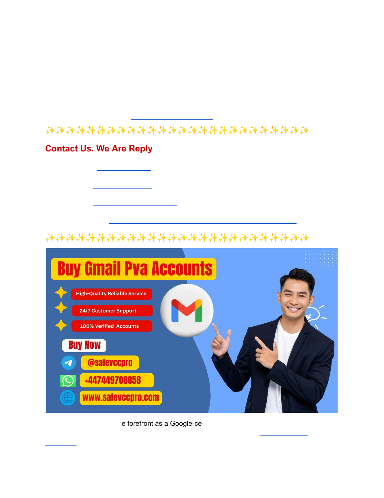 Top 11 Best Sites to Fresh Gmail PVA Accounts for Social Media – Multi-Platform Ready | Anti-Ban Guaranteed In the competitive landscape of 2026, entrepreneurs and agency owners know that digital infrastructure is the backbone of any successful marketing campaign. To scale operations without the constant fear of shadowbans or account restrictions, high-quality assets are a non-negotiable requirement.Buy Gmail Pva Accounts ✨✨✨✨✨✨✨✨✨✨✨✨✨✨✨✨✨✨✨✨✨✨✨✨✨✨ Contact Us. We Are Reply 24/7 Hours ➥➤Telegram: @SafeVCCPro ➥Whatsapp: +44 7449 708858 ➥➤Website: https://safevccpro.com/ ➥➤Product Info: https://safevccpro.com/product/buy-gmail-accounts/ ✨✨✨✨✨✨✨✨✨✨✨✨✨✨✨✨✨✨✨✨✨✨✨✨✨✨ Safevccpro stands at the forefront as a Google-certified marketplace, offering premium bulk-aged email, social, and advertising accounts. If you are looking toBuy Gmail Pva Accountsthat offer longevity and high trust scores, choosing a provider that uses Real-SIM https://safevccpro.com/product/buy-gmail-accounts/ https://t.me/SafeVCCPro https://wa.me/447449708858 https://safevccpro.com/ https://safevccpro.com/product/buy-gmail-accounts/ https://safevccpro.com/product/buy-gmail-accounts/ https://safevccpro.com/product/buy-gmail-accounts/ infrastructure and residential IPs is the only way to ensure your business remains multi-platform-ready. What does "PVA" mean in Gmail accounts? PVA stands for Phone Verified Account. In the context of Gmail, this means the account has passed Google’s mandatory mobile verification process using a unique, valid phone number. Unlike standard accounts created with just an email or a virtual VOIP number, a PVA account carries a "trust badge" in Google’s backend. For an agency owner, this verification serves as a primary filter, distinguishing your business assets from automated bots. At Safevccpro, our PVA accounts are verified with physical SIM cards, providing the highest level of security and ensuring the account won't be flagged for suspicious activity upon first login. Why should I buy Phone Verified Gmail accounts instead of regular ones? Regular, non-verified accounts are increasingly fragile in 2026. Google’s AI-driven security protocols often trigger a "re-verification" loop whenever a regular account is accessed from a new IP address or device. By choosing Phone Verified accounts, you are investing in an asset that has already bypassed the most difficult security gate. These accounts offer higher daily sending limits, better deliverability for cold outreach, and are far less likely to be suspended during high-volume social media management. For a businessman, the time saved by avoiding manual verification hurdles translates directly into operational efficiency and higher ROI on marketing spend. ✨✨✨✨✨✨✨✨✨✨✨✨✨✨✨✨✨✨✨✨✨✨✨✨✨✨ Contact Us. We Are Reply 24/7 Hours ➥➤Telegram: @SafeVCCPro ➥Whatsapp: +44 7449 708858 ➥➤Website: https://safevccpro.com/ ➥➤Product Info:https://safevccpro.com/product/buy-gmail-accounts/ ✨✨✨✨✨✨✨✨✨✨✨✨✨✨✨✨✨✨✨✨✨✨✨✨✨✨ What is the difference between a "Fresh" and an "Aged" Gmail account? https://t.me/SafeVCCPro https://wa.me/447449708858 https://safevccpro.com/ https://safevccpro.com/product/buy-gmail-accounts/ A "Fresh" Gmail account is one that has been created and verified recently, ideal for short-term projects or testing new marketing funnels. An "Aged" account, however, has been active for several months or even years. Aged accounts are the "gold standard" for agency owners because they carry a legacy of trust. Because they have a history of being "dormant" or lightly used in a controlled environment, Google’s filters are much more lenient with them. They are less likely to be flagged as spam, making them perfect for scaling Google Ads or managing long-term social media profiles for clients. Are purchased Gmail accounts legal to use for business? Using purchased Gmail accounts is a common practice among digital marketers and is entirely legal for business operations, provided they are used for legitimate purposes like social media management, email marketing, or software testing. While Google’s Terms of Service generally prefer users to create their own accounts, businesses often require a scale that manual creation cannot support. When you source your accounts from a trusted, Google-certified marketplace like Safevccpro, you ensure the assets are ethically created using residential IPs, helping your business stay compliant with platform-specific security standards while protecting your brand's reputation. How long do these accounts typically stay active? The lifespan of a Gmail PVA account depends heavily on how it is managed after purchase. If you follow "warming" protocols—gradually increasing activity over several days—and use high-quality residential proxies, these accounts can remain active indefinitely. At Safevccpro, our accounts are built on a foundation of reliability. We provide accounts that have already passed initial stability checks. For entrepreneurs, this means these aren't just "throwaway" emails but long-term digital assets that can support your business's growth for years, provided they aren't used for prohibited activities like aggressive spamming or phishing. What are "USA PVA" Gmail accounts, and why are they special? USA PVA accounts use authentic U.S. phone numbers and U.S.-based residential IPs, ideal for agencies targeting North American markets. Platforms such as Facebook Ads and Google Ads assign higher trust scores to U.S.-origin accounts, reducing geographic triggers and ensuring greater stability in managing ad spend and delivering marketing messages. Can I use these accounts on any device? Yes, our Gmail PVA (Phone Verified Accounts) accounts are multi-platform ready. You can access them via des