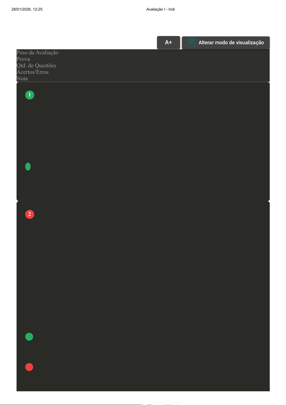 Prova Impressa GABARITO | Avaliação I - Individual (Cod.:670692) Peso da Avaliação 1,50 Prova 29691754 Qtd. de Questões 10 Acertos/Erros 9/1 Nota 9,00 Quando se fala das sete ferramentas da qualidade (Diagrama de Processo, Diagrama de Análise de Pareto, Diagramas de Causa e efeito, Diagramas de Correlação, Histogramas, Cartas de Controle de Processo e Folhas de Verificação), estas devem ser conhecidas por todos da organização. Essas ferramentas de qualidades foram implantadas por Ishikawa, um químico japonês. Qual é a verdadeira finalidade dessas ferramentas para a organização? A Para que os colaboradores pudessem refletir somente sobre as questões relativas à qualidade. B Oferecer treinamentos aos colaboradores para apenas aumentar a sua motivação e, com isso, errar menos. C As técnicas não deveriam ficar restritas à equipe da qualidade, já que todos os setores e pessoas de todas as hierarquias deveriam contribuir. D Aperfeiçoar os investimentos em treinamento e assegurar o cumprimento das políticas dos Recursos Humanos. A implementação do Ciclo PDCA (plan, do, check, act; planejar, fazer, checar, agir) tem como objetivo a melhoria contínua dos processos organizacionais e pode contribuir para o sistema de gestão ambiental (SGA) e o sistema de gestão da qualidade (SGQ). Nesse contexto, analise as afirmativas a seguir: I- O Ciclo PDCA visa à melhoria contínua de um fluxo completo de valor ou de um processo individual, a fim de se criar mais valor com menos desperdício. II- As auditorias para a identificação das conformidades e não conformidades no Ciclo PDCA devem ser realizadas na fase de implementação e operação desse sistema, com posterior adoção de medidas corretivas. III- O Ciclo PDCA é a base para a implantação da qualidade total, que, por meio da metodologia 5S, consegue melhorar a qualidade de vida dos membros da equipe e do ambiente de trabalho. IV- Com as ações corretivas ao final do primeiro Ciclo PDCA, é possível e desejável que seja criado um novo planejamento para a melhoria de determinado procedimento, iniciando-se um novo Ciclo PDCA, sendo esse novo ciclo, a partir do anterior, fundamental para o sucesso da utilização dessa ferramenta. Assinale a alternativa CORRETA: A Somente a afirmativa IV está correta. B As afirmativas I e III estão corretas. C Somente a afirmativa II está correta. D As afirmativas II e IV estão corretas. VOLTAR A+ Alterar modo de visualização 1 2 28/01/2026, 12:25 Avaliação I - Individual about:blank 1/5 A Era da Inspeção teve, como principal finalidade, o monitoramento dos processos, através da determinação de limites, o objetivo era separar o produto com qualidade daquele que apresentava defeito, por meio da avaliação direta. Com relação ao modelo de inspeção, assinale a alternativa CORRETA: A As inspeções eram realizadas em 100% das peças do lote. B A aprovação do lote dependia do número de materiais defeituosos encontrados durante a análise realizada. C Era selecionada uma determinada quantidade de produtos, em que o resultado da inspeção era atribuído ao lote do qual foram retiradas as amostras. D O processo de inspeção não era realizado pelo processo de amostragem. O PDCA pode ser interpretado como uma filosofia que, quando adotada pela empresa, visa auxiliar na implantação da melhoria contínua. Um determinado microprocesso pode ser estudado e melhorado continuamente por meio da aplicação do ciclo PDCA, em etapas consecutivas. A letra "A" da sigla PDCA abrevia a palavra "Action", que significa "Ação" ou "Agir". Com a ação, fecha-se um giro do ciclo PDCA. Como também pode ser interpretada a etapa "Agir" no ciclo PDCA? A "Planejamento contínuo", ou seja, após as etapas anteriores, é importante planejar as ações subsequentes. B "Modificar o padrão", ou seja, após as etapas anteriores, é importante alterar os padrões antigos para os novos estabelecidos. C "Verificar o padrão", ou seja, após as etapas anteriores, é importante checar se o que foi planejado foi efetivamente executado. D "Fixar o padrão", ou seja, após os processos anteriores, é preciso garantir que a melhoria alcançada seja mantida ao longo do tempo. O controle de processo é exercido por meio do Ciclo PDCA, que é um método utilizado para promover a melhoria contínua através de quatro etapas sequenciais: Planejar, Executar, Verificar e Atuar Corretivamente. Sua finalidade principal é facilitar a análise dos processos de gestão da empresa, buscando torná-los mais claros e objetivos, alcançando melhoria nos resultados no sistema de gestão do negócio. Com relação às etapas de um processo de melhoria, classifique V para as sentenças verdadeiras e F para as falsas: ( ) Confrontar os resultados obtidos com as metas estabelecidas; essencial o treinamento no trabalho, decorrente da fase de planejamento. ( ) Definir a meta e os métodos a serem aplicados; estabelecer a melhor forma de alcançar as metas; fase de estabelecer as diretrizes. ( ) Corrigir, prevenir ou melhorar, após detectados os desvios, agir no sentido de fazer as correções definitivas, de tal modo que o problema não volte mais a acontecer. ( ) Fazer uma análise do custo e a viabilidade da implementação das melhorias propostas no plano de ação. Assinale a alternativa que apresenta a sequência CORRETA: Revisar Conteúdo do Livro 3 4 5 28/01/2026, 12:25 Avaliação I - Individual about:blank 2/5 A V - F - V - V. B V - V - V - F. C V - V - F - V. D F - V - V - F. A necessidade constante das empresas em buscar a qualidade total de seus produtos tem gerado muitas situações, como custos elevados, desperdícios, entre outros. Para tanto, é importante essa busca por qualidade para não se perder clientes, visto que a concorrência está muito acirrada e sobreviverá aquele que tem um maior investimento em tecnologia e inovação. No que se refere à qualidade, classifique V para as sentenças verdade