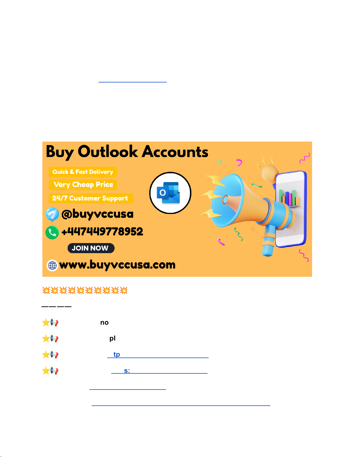 Top Vendors for Fresh and Aged Outlook Email Accounts If you are looking to Buy Outlook Accounts safely and efficiently, BuyVccUsa.com is a trusted online platform. We provide high-quality Microsoft Outlook accounts suitable for business communication, marketing, automation, and professional use. Every account is tested before delivery to ensure full access, stability, and reliability. With secure payment methods, instant delivery options, and dedicated customer support, BuyVccUsa.com offers a smooth and risk-free buying experience. Whether you need single accounts or bulk Outlook accounts, our focus is on quality, affordability, and long-term customer satisfaction worldwide. 💥💥💥💥💥💥💥💥💥💥 — — — — — — — — — — ⭐📢➥➤Contact now for more information and services ⭐📢➥➤24-Hour Reply/Contact ⭐📢➥➤Telegram: https://telegram.me/buyvccusa ⭐📢➥➤WhatsApp: https://wa.me/+447449778952 ▣Website link: https://buyvccusa.com/ ▣Product Link: https://buyvccusa.com/product/buy-outlook-accounts/ https://buyvccusa.com/product/buy-hotmail-accounts/ https://telegram.me/buyvccusa https://wa.me/+447449778952 https://buyvccusa.com/ https://buyvccusa.com/product/buy-outlook-accounts/ — — — — — — — — — — 💥💥💥💥💥💥💥💥💥💥 What Is Microsoft Outlook? Microsoft Outlook is a widely used email service developed by Microsoft. It allows users to send and receive emails, manage calendars, organize contacts, and handle professional communication efficiently. Outlook is trusted globally due to its strong security features, clean interface, and reliable email delivery. Businesses, professionals, and organizations prefer Outlook for corporate communication and official registrations. Because it integrates seamlessly with other Microsoft services, Outlook is suitable for both personal and business use, making it one of the most popular email platforms worldwide. Buy Outlook Accounts in Bulk Buying Outlook accounts in bulk is ideal for businesses, agencies, and marketers who need multiple email accounts. BuyVccUsa.com offers bulk Outlook account packages that save time and reduce costs. All bulk accounts are tested before delivery to ensure quality and consistency. Bulk purchasing allows businesses to scale operations efficiently without the hassle of manual account creation. Our bulk solutions are reliable, affordable, and suitable for professional use. Buy Outlook Accounts Cheap BuyVccUsa.com provides cheap Outlook accounts without compromising quality. Affordable pricing makes Outlook accounts accessible for individuals and businesses with budget considerations. Even at low prices, all accounts are tested and delivered with full access. Cheap Outlook accounts are ideal for users who need multiple accounts while keeping expenses low. Transparent pricing and reliable service make BuyVccUsa.com a preferred choice. 💥💥💥💥💥💥💥💥💥💥 — — — — — — — — — — ⭐📢➥➤Contact now for more information and services ⭐📢➥➤24-Hour Reply/Contact ⭐📢➥➤Telegram: https://telegram.me/buyvccusa ⭐📢➥➤WhatsApp: https://wa.me/+447449778952 ▣Website link: https://buyvccusa.com/ https://buyvccusa.com/product/buy-hotmail-accounts/ https://buyvccusa.com/product/buy-hotmail-accounts/ https://buyvccusa.com/product/buy-hotmail-accounts/ https://telegram.me/buyvccusa https://wa.me/+447449778952 https://buyvccusa.com/ ▣Product Link: https://buyvccusa.com/product/buy-outlook-accounts/ — — — — — — — — — — 💥💥💥💥💥💥💥💥💥💥 Are Outlook Accounts Region-Specific? Outlook accounts can be created in different regions, such as the USA or UK. Region-specific accounts may be preferred for certain business or marketing needs. BuyVccUsa.com offers Outlook accounts suitable for global use. Region details depend on availability and account type. Choosing the right region helps improve relevance and acceptance for specific use cases. Can I Buy Outlook Accounts from the USA or UK? Yes, you can buy Outlook accounts suitable for use in the USA or UK from BuyVccUsa.com. These accounts are commonly used for business, registrations, and professional communication. USA and UK-based Outlook accounts are popular due to their trust and acceptance. BuyVccUsa.com ensures quality and reliability regardless of region. What Are Instant Delivery Outlook Accounts? Instant delivery Outlook accounts are accounts delivered immediately after purchase. BuyVccUsa.com offers instant delivery options so customers can start using their accounts right away. These accounts are pre-tested and ready to login and use. Instant delivery saves time and ensures convenience for urgent needs. 💥💥💥💥💥💥💥💥💥💥 — — — — — — — — — — ⭐📢➥➤Contact now for more information and services ⭐📢➥➤24-Hour Reply/Contact ⭐📢➥➤Telegram: https://telegram.me/buyvccusa ⭐📢➥➤WhatsApp: https://wa.me/+447449778952 ▣Website link: https://buyvccusa.com/ ▣Product Link: https://buyvccusa.com/product/buy-outlook-accounts/ https://buyvccusa.com/product/buy-outlook-accounts/ https://buyvccusa.com/product/buy-hotmail-accounts/ https://buyvccusa.com/product/buy-hotmail-accounts/ https://telegram.me/buyvccusa https://wa.me/+447449778952 https://buyvccusa.com/ https://buyvccusa.com/product/buy-outlook-accounts/ — — — — — — — — — — 💥💥💥💥💥💥💥💥💥💥 Are Cheap Outlook Accounts Reliable? Cheap Outlook accounts can be reliable when purchased from a trusted seller. BuyVccUsa.com ensures that even low-priced accounts meet quality standards. All accounts are tested before delivery. Reliability depends on account quality and responsible usage. Choosing a reputable provider reduces risks. How Many Outlook Accounts Can I Buy at Once? The number of Outlook accounts you can buy depends on your ne