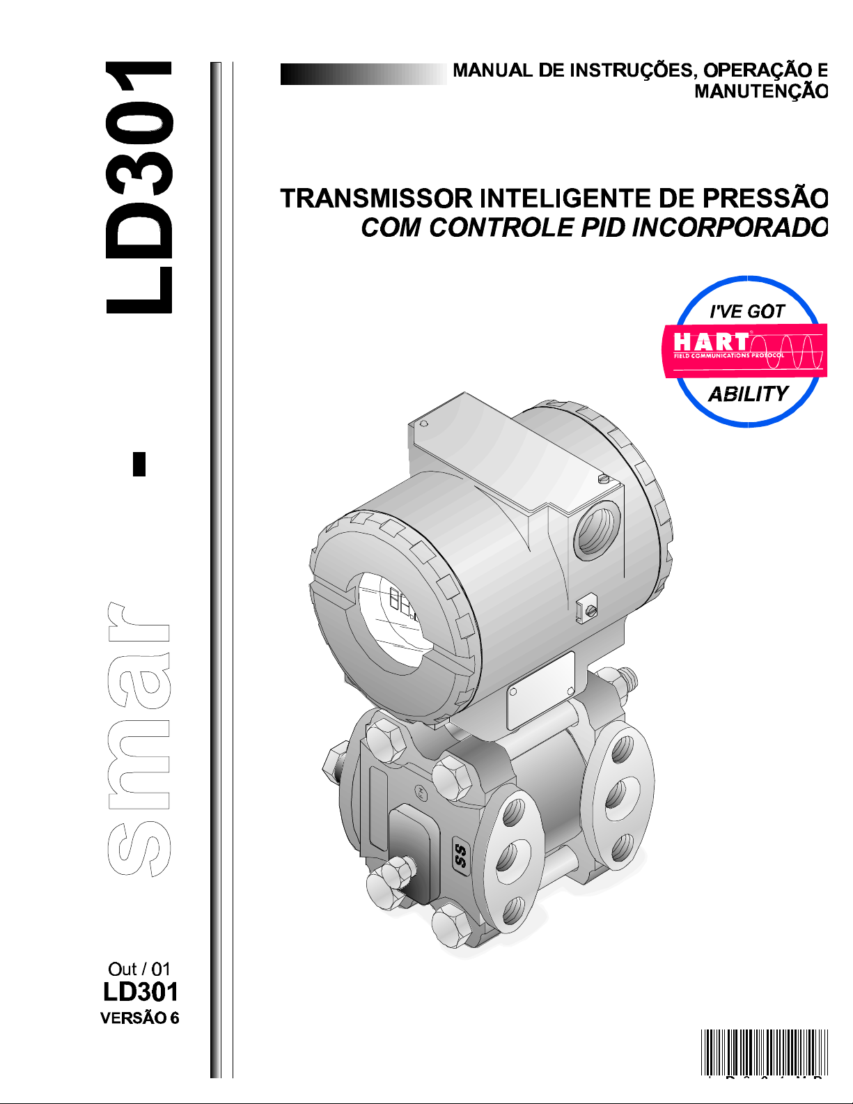 e-mail: dncom@smar.com.brWeb: www.smar.com.brsmar Especificações e informações estão sujeitas a modificações sem prévia consulta. BRASIL Smar Equipamentos Ind. Ltda. Rua Dr. Antonio Furlan Jr., 1028 Sertãozinho SP 14170-480 Tel.: +55 16 645-3599 Fax: +55 16 645-6454 e-mail: dncom@smar.com.br ARGENTINA Smar Argentina Soldado de La Independencia, 1259 (1429) Capital Federal – Argentina Telefax: 00 (5411) 4776 -1300 / 3131 e-mail: smarinfo@smarperifericos.com CHINA Smar China Corp. 3 Baishiqiao Road, Suite 30233 Beijing 100873, P.R.C. Tel.: +86 10 6849-8643 Fax: +86 10 6849-9549 e-mail: info@smar.com.cn FRANÇA Smar France S. A. R. L. 42, rue du Pavé des Gardes F-92370 Chaville Tel.: +33 1 41 15-0220 Fax: +33 1 41 15-0219 e-mail: smar.adm@wanadoo.fr ALEMANHA Smar GmbH Rheingaustrasse 9 55545 Bad Kreuznach Germany Tel: + 49 671-794680 Fax: + 49 671-7946829 e-mail: infoservice@smar.de MÉXICO Smar Mexico 11, Poniente, No. 1314-1 PB Col. Centro C. P. 72000 Ciudad de Puebla, Puebla Tel.: +52 22 46-4386 Fax: +52 22 46-4386 e-mail: smarinfo@mexis.com CINGAPURA Smar Singapore Pte. Ltd. 315 Outram Road #06-07, Tan Boon Liat Building Singapore 169074 Tel.: +65 324-0182 Fax: +65 324-0183 e-mail: info@smar.com.sg EUA Smar International Corporation 6001 Stonington Street, Suite 100 Houston, TX 77040 Tel.: +1 713 849-2021 Fax: +1 713 849-2022 e-mail: sales@smar.com Smar Laboratories Corporation 10960 Millridge North, Suite 107 Houston, TX 77070 Tel.: +1 281 807-1501 Fax: +1 281 807-1506 e-mail: smarlabs@swbell.net Smar Research Corporation 4250 Veterans Memorial Hwy. Suite 156 Holbrook , NY 11741 Tel: +1-631-737-3111 Fax: +1-631-737-3892 e-mail: sales@smarresearch.com Introdução III INTRODUÇÃO O LD301 é um transmissor inteligente para medição de pressão diferencial, absoluta, manométrica, nível e vazão. O transmissor é baseado num sensor capacitivo que proporciona uma operação segura e um excelente desempenho em campo. A tecnologia digital usada no LD301 permite a escolha de vários tipos de funções de transferência, um interfaceamento fácil entre o campo e a sala de controle e algumas características que reduzem consideravelmente a instalação, operação e os custos de manutenção. O LD301 oferece, além das funções normais disponíveis pelos outros transmissores inteligentes, as seguintes funções: ü √(∆P)3 - Usada na medição de vazão em calhas abertas com vertedor tipo Parshal. ü √ (∆P)5 - Usada na medição de vazão em calhas abertas com vertedor tipo V. ü TABELA - O sinal de saída segue uma curva determinada por 16 pontos, livremente configuráveis. ü CONTROLADOR - A variável de processo é comparada com o setpoint. O desvio atua no sinal de saída de acordo com o algoritmo PID. ü AJUSTE LOCAL - Ajusta por intermédio de uma chave de fenda magnética o valor inferior e superior, função de entrada/saída, modo de operação, indicação, setpoint e parâmetros PID. ü SENHA - Três níveis para funções diferentes. ü CONTADOR DE OPERAÇÃO - Indica o número de alterações em determinadas funções. ü TOTALIZAÇÃO - Totalização de vazão em volume ou massa. ü UNID-USUÁRIO - Indicação em unidade de engenharia da grandeza realmente medida. Por exemplo: nível, vazão ou volume. Leia cuidadosamente estas instruções para obter o máximo aproveitamento do LD301. LD301 – Manual de Instruções, Operação e Manutenção IV NOTA Este Manual é compatível com as Versões 6.XX, onde 6 indica a Versão do software e XX indica o "release". Portanto, o Manual é compatível com todos os "releases" da Versão 6. Índice V Índice 1 INSTALAÇÃO GERAL ............................................................................................................................................................... 1.1 MONTAGEM....................................................................................................................................................... 1.1 ROTAÇÃO DA CARCAÇA................................................................................................................................... 1.3 LIGAÇÃO ELÉTRICA .......................................................................................................................................... 1.4 2 OPERAÇÃO DESCRIÇÃO FUNCIONAL - SENSOR................................................................................................................. 2.1 DESCRIÇÃO FUNCIONAL - CIRCUITO............................................................................................................... 2.2 DESCRIÇÃO FUNCIONAL - SOFTWARE............................................................................................................ 2.3 DISPLAY DE CRISTAL LÍQUIDO......................................................................................................................... 2.5 3 CONFIGURAÇÃO RECURSOS DE CONFIGURAÇÃO ..................................................................................................................... 3.2 IDENTIFICAÇÃO E DADOS DE FABRICAÇÃO.................................................................................................... 3.3 TRIM DA VARIÁVEL PRIMÁRIA - PRESSÃO ...................................................................................................... 3.3 TRIM DE CORRENTE DA VARIÁVEL PRIMÁRIA ................................................................................................ 3.5 AJUSTE DO TRANSMISSOR À FAIXA DE TRABALHO ....................................................................................... 3.5 SELEÇÃO DA UNIDADE DE ENGENHARIA........................................................................................................ 3.6 FUNÇÃO DE TRANSFERÊNCIA PARA MEDIÇÃO VAZÃO.................................................................................. 3.8 TABELA DE LINEARIAZAÇÃO ...........................................