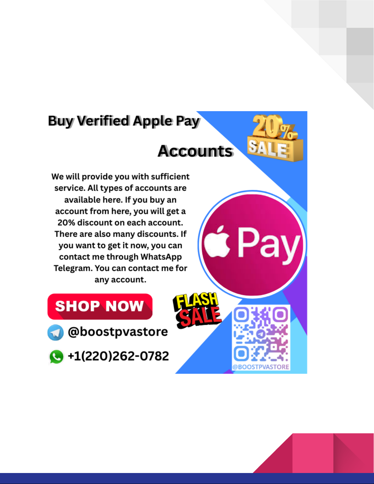 "Learn everything about Apple Pay accounts in 2026: how they work, the benefits, and why they’re changing the way we pay. Simplified, secure, and fast." Understanding Apple Pay Accounts in 2026: The Future of Digital Payments The Rise of Digital Payments In recent years, digital payment solutions have transformed the way we shop and manage our finances. Among the most influential of these systems is Apple Pay, a secure, fast, and easy way to make purchases without carrying physical cards or cash. In this article, we’ll dive deep into Apple Pay Accounts in 2026, exploring what they are, how they work, and why they’re rapidly becoming an essential tool in modern financial ecosystems. ➤WhatsApp:+1(220)262-0782 ➤Telegram: @boostpvastore What Is Apple Pay? A Brief Overview of Apple Pay Apple Pay is a digital wallet service that allows users to store credit and debit card information on their Apple devices, enabling contactless payments in stores, apps, and online. Since its launch in 2014, Apple Pay has grown significantly, with millions of users around the world taking advantage of its convenience, security, and integration with other Apple products. The Evolution of Apple Pay Accounts in 2026 While Apple Pay began as a simple payment tool, its capabilities have expanded drastically over the years. In 2026, Apple Pay Accounts are far more than just a method for buying coffee or clothes. They serve as centralized hubs for personal financial management, integrating banking features, loyalty programs, and even some investment tools. Understanding this evolution is key to appreciating how Apple Pay can revolutionize your everyday financial interactions. How Does Apple Pay Work in 2026? Step 1: Setting Up Your Apple Pay Account https://wa.me/12202620782 http://t.me/boostpvastore Setting up Apple Pay is simple. In 2026, Apple continues to streamline the process for new users. Follow these steps: ➤WhatsApp:+1(220)262-0782 ➤Telegram: @boostpvastore 1. Open the Wallet App: On your iPhone or Apple Watch, open the Wallet app. 2. Add Your Payment Method: Tap on the "+" symbol to add your credit or debit cards. You can scan your physical cards or manually enter the information. 3. Verify Your Identity: Apple uses multi-factor authentication (like Face ID, Touch ID, or a password) to verify your identity. This makes your account more secure than traditional payment methods. 4. Set Up Apple Pay on Other Devices: Once your account is set up on your phone, it can also be linked to your iPad, Mac, or Apple Watch for seamless payments across devices. Step 2: Making Payments with Apple Pay Using Apple Pay is as simple as holding your device near a compatible terminal. Here’s how it works: 1. In-Store Purchases: When you’re ready to pay, hold your iPhone or Apple Watch near the contactless payment reader. You’ll be prompted to authenticate the payment via Face ID, Touch ID, or your device’s passcode. 2. In-App or Online Purchases: Many apps and websites allow you to check out quickly using Apple Pay. Simply choose the Apple Pay option at checkout, authenticate the payment, and complete the purchase. https://wa.me/12202620782 http://t.me/boostpvastore Apple Pay also supports peer-to-peer payments via Apple Cash, making it easy to send money to friends and family with just a few taps. ➤WhatsApp:+1(220)262-0782 ➤Telegram: @boostpvastore Why Is Apple Pay Becoming a Dominant Payment Tool in 2026? 1. Enhanced Security and Privacy One of the biggest reasons Apple Pay accounts have gained such widespread adoption is their superior security features. Unlike physical cards, Apple Pay uses tokenization to protect your information during transactions. When you make a purchase, Apple Pay doesn’t transmit your actual credit card number. Instead, it uses a unique device account number, ensuring that even if your payment data is intercepted, it can’t be used maliciously. Apple Pay also offers features like Apple Pay Cash, which provides real-time peer-to-peer transfers with no fees, and Apple Pay Family, allowing parents to set up accounts for their children that can be monitored and controlled. 2. Global Acceptance and Growth Apple Pay is accepted by millions of retailers around the world, and in 2026, it continues to expand its reach. Whether you’re buying groceries, booking a flight, or purchasing online, Apple Pay is becoming an increasingly common payment method. Apple Pay is also integrated with BoostPvaStore, one of the leading online stores in the USA, enabling users to complete transactions with ease and security. 3. Simplified User Experience The user-friendly nature of Apple Pay is another key factor driving its popularity. The integration with Apple devices means that payments are always at your fingertips. The system is incredibly intuitive, and Apple’s continuous focus on refining its user interface has kept it ahead of other competitors. Key Features of Apple Pay Accounts in 2026 https://wa.me/12202620782 http://t.me/boostpvastore 1. Integration with Financial Services Apple Pay accounts are no longer just limited to making payments. They are increasingly integrating with traditional banking services. In 2026, you can use your Apple Pay account to manage your spending, track your budget, and even invest in stocks and bonds—all within the same app. This feature makes Apple Pay an essential tool for users looking to streamline their financial lives. 2. Loyalty Programs and Discounts Another key feature in 2026 is the enhanced ability to manage loyalty programs. Many retailers now offer loyalty points or discounts that can be directly stored in your Apple Pay account. This makes it easier for users to earn rewards while shopping and automatically apply discounts at checkout. 3. Apple Pay Later Apple Pay has introduced a “Buy Now, Pay Later” feature in 2026, allowing users to make purchases and split payments over time. This feature is especially popular for larger purchases, s
