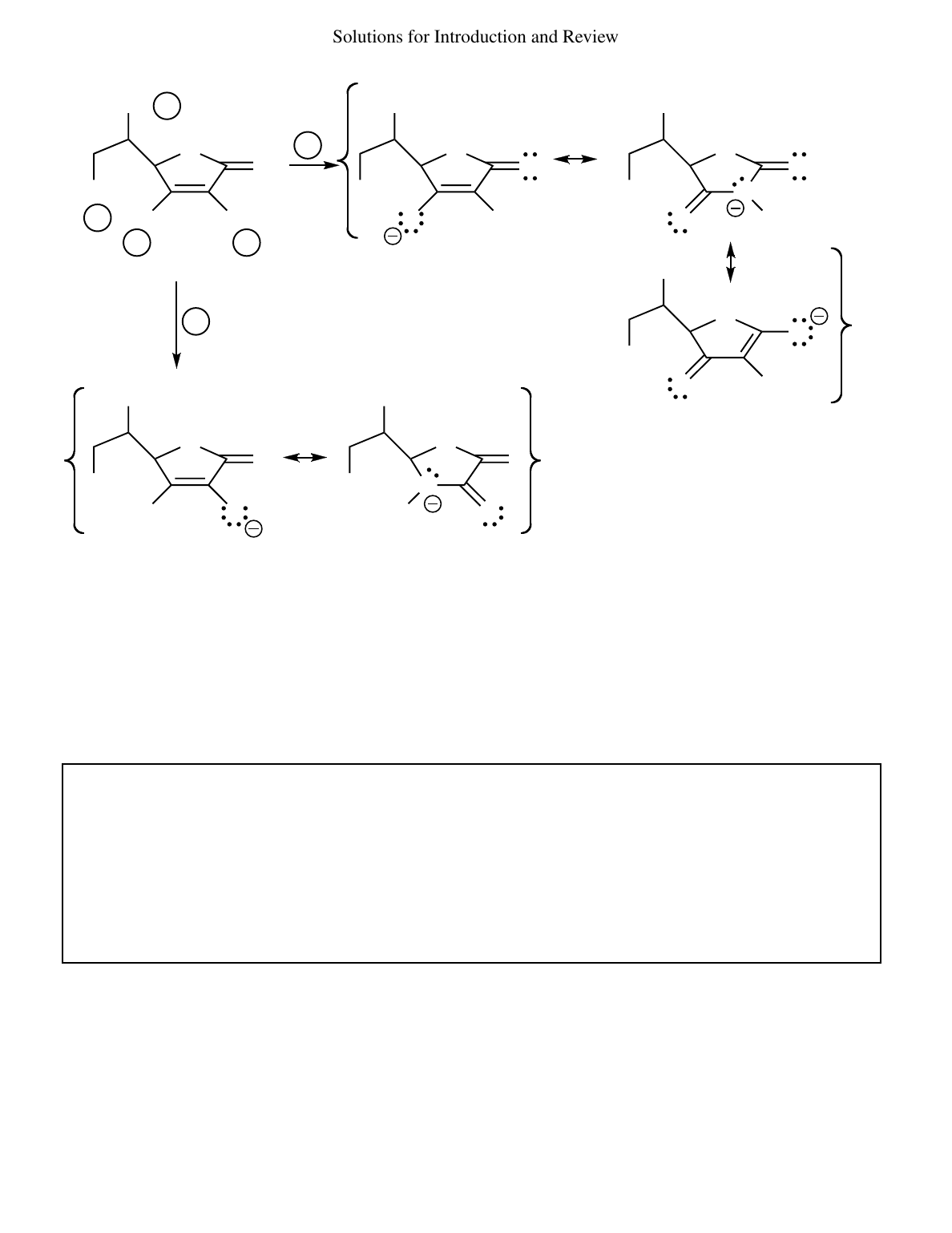 Solutions for Introduction and Review O HO OH O OH OH 1 2 3 4 3 O O OH O OH OH C O O OH O OH OH 55 (a) continued O O OH O OH OH three resonance forms, two with negative charge on oxygen4 O HO O O OH OH C O HO O O OH OH two resonance forms, one with negative charge on oxygen (b) The ionization of the OH labeled "3" produces a conjugate base with three resonance forms, two of which have negative charge on oxygen. This OH is the most acidic group in ascorbic acid. (c) The conjugate base of acetic acid, the acetate ion, CH3COO– , has two resonance forms (see the solution to problem 52(a), page 27 of this manual), each of which has a C=O and a negatively charged oxygen, similar to two of the resonance forms of the ascorbate ion. The acidity of these two very different molecules is similar because the stabilization of the conjugate base is so similar. The strength of an acid is determined by the stability of its conjugate base. Note to the student: Organic chemistry professors will ask you to "explain" questions, that is, to explain a certain trend in organic structures or behavior of an organic reaction. The professor is trying to determine two things: 1) does the student understand the principle underlying the behavior? 2) does the student understand how the principle applies in this particular example? To answer an "explain" question, somewhere in your answer should be a statement of the principle, like: "The strength of an acid is determined by the stability of its conjugate base." From there, show through a series of logical steps how the principle applies, like drawing resonance forms to show which acid has the most stable conjugate base through resonance or induction. Answering these questions is like crossing a creek on stepping stones. Each phrase or sentence is a step to the next stone. When strung together, the steps bridge the gap between the principle and the observation. 34