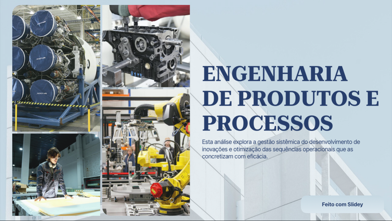 ENGENHARIA SPACEX DE PRODUTOS E I PROCESSOS Esta análise explora a gestão sistêmica do desenvolvimento de inovações e otimização das sequências operacionais que as concretizam com eficácia. Feito com SlideyCONCEITOS FUNDAMENTAIS QUE É UM PRODUTO? 1 Um artefato ou serviço desenvolvido para atender a demandas de mercado, agregando valor funcional e satisfação ao usuário final. QUE É UM PROCESSO? 2 Define-se como a série ordenada de etapas que convertem recursos em resultados específicos, otimizando a criação de valor do produto. ENGENHARIA DE PRODUTO E PROCESSO 3 Esta disciplina integra design de bens com a otimização dos métodos de produção, visando eficiência e qualidade, crucial inovação e competitividade. CICLO DE VIDA E REQUISITOS 4 Requisitos ciclo de vida do produto, da concepção à desativação desenvolvimento ea satis Feito com SlideyENGENHARIA DE PRODUTOS: CICLO DE VIDA PRODUÇÃO E CONCEPÇÃO E PROJETO FABRICAÇÃO Esta etapa crucial delineia Esta etapa converte projeto em requisitos funcionais e técnicos, produtos tangíveis, otimizando gerando soluções inovadoras para processos de fabricação e desenvolvimento do produto, controle de qualidade para fundamentando sua arquitetura. máxima eficiência produtiva e sustentabilidade. USO, SUPORTE FIM DE VIDA E E MANUTENÇÃO RECICLAGEM Após a produção produto é Após uso, descarte utilizado, demandando suporte responsável visa à recuperação técnico contínuo e manutenção material, minimizando impacto preventiva para otimizar seu ambiental e promovendo a desempenho e longevidade economia circular. operacional. Feito com SlideyENGENHARIA DE PROCESSOS: OTIMIZAÇÃO DIAGNÓSTICO E IMPACTO NA EFICIÊNCIA E IDENTIFICAÇÃO DE SUSTENTABILIDADE DESPERDÍCIOS A otimização refina processos, elevando a A identificação sistemática dos 7 produtividade em 20% e reduzindo emissões desperdícios (Muda), como superprodução e em 15%, assegurando crescimento espera, é essencial para a otimização responsável e competitividade de mercado. contínua de processos. APLICAÇÃO DE FERRAMENTAS DE OTIMIZAÇÃO Com base no diagnóstico, implementam-se algoritmos e softwares de otimização, como programação linear, para reconfigurar processos, maximizando eficiência operacional. Feito com Slidey /A INTEGRAÇÃO PRODUTO-PROCESSO VANTAGENS CONCEITOS ESSENCIAIS E DESAFIOS Esclarecem-se as premissas teóricas e as abordagens Promove ganhos de eficiência e sistêmicas que alicerçam a qualidade, agilizando tempo de integração eficaz entre produto e mercado, embora desafios como coordenação inter funcional e processo. custos iniciais persistam. ENGENHARIA RESULTADOS CONCORRENTE E OTIMIZAÇÃO Para mitigar desafios e A mensuração de indicadores de potencializar vantagens, equipes multifuncionais colaboram desde desempenho, como custos e tempo de ciclo, viabiliza a início, considerando fabricação otimização contínua para ganhos e serviço para otimizar ciclo de sistemáticos. vida. Feito com SlideyBENEFÍCIOS E VANTAGENS COMPETITIVAS OTIMIZAÇÃO DE CUSTOS DIFERENCIAÇÃO E LIDERANÇA E QUALIDADE DE MERCADO A engenharia aprimora continuamente Essa base permite criar produtos distintivos, processos produtivos, reduzindo despesas capturando segmentos específicos e operacionais e elevando padrão de estabelecendo uma posição superior no qualidade e desempenho dos produtos finais. mercado, impulsionando a participação. Feito com SlideyFERRAMENTAS E TECNOLOGIAS ATUAIS DIGITALIZAÇÃO NA ENGENHARIA DE PRODUTO A digitalização integra CAD/CAE e PLM, otimizando ciclo de vida do produto; reduzindo em 20% tempo de desenvolvimento. AUTOMAÇÃO E OTIMIZAÇÃO DE PROCESSOS Esta progressão culmina na automatização de fluxos de trabalho e na otimização algorítmica de processos, reduzindo custos operacionais e elevando a eficiência produtiva significativamente. Feito com SlideyDESAFIOS E TENDÊNCIAS FUTURAS DESAFIOS DA COMPLEXIDADE SUSTENTABILIDADE E GLOBAL ECONOMIA CIRCULAR A interconexão global, com regulamentações Processos e produtos demandam otimização divergentes e cadeias de valor frágeis, impõe de recursos, minimização de resíduos e riscos sistêmicos à engenharia de produtos e design circular, visando estender a vida útil e processos. regenerar ecossistemas. TRANSFORMAÇÃO DIGITAL E 4.0 A superação da complexidade exige a integração de sistemas ciberfísicos, análise de Big Data e IA, otimizando processos e fábricas inteligentes. Feito com Slidey