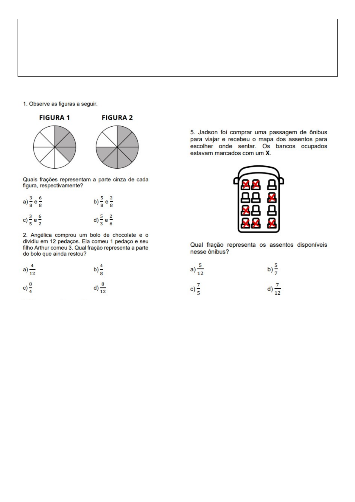 ( PREF EITURA MUNICIPAL DE ____________ SECRETARIA MUNICIPAL DE EDUCAÇÃO NOTA: __________ ES COLA MUNICIPAL ________________ ALUNO (A) _________________________________________________________ _____ Nº _____ T URMA: 5ºA DATA: ____ / _____ / 20 25 PROFESSOR ( A): CONTEÚDOS: FRAÇÃO )SIMULADO DE FRAÇÕES II image6.png image1.png image2.png image3.png image4.png image5.png