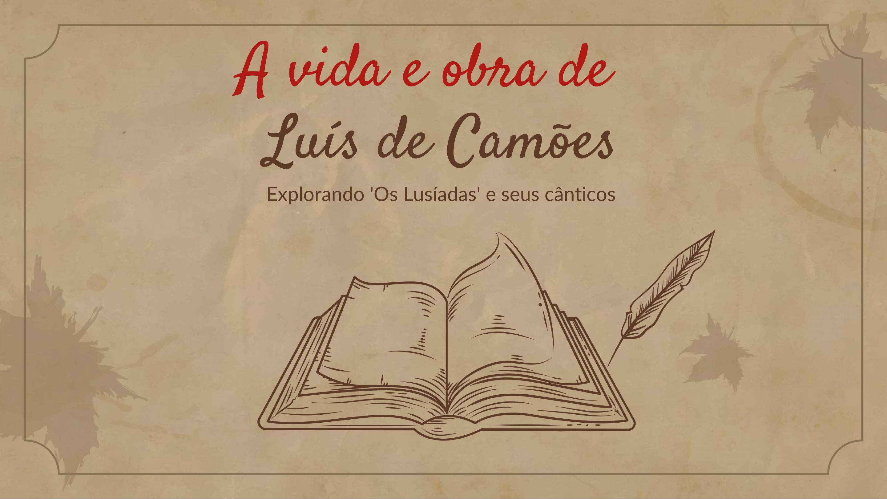 A vida e obra de Luís de Camões Explorando 'Os Lusíadas' e seus cânticosVIDA DE LUÍS DE CAMÕESBIOGRAFIA RESUMIDA Luís de Camões (c. 1524-1580) foi um poeta e soldado português, célebre por seu poema épico Os Lusíadas, que narra feitos da navegação portuguesa, e por sua obra lírica. Sua vida foi marcada por aventuras como soldado e navegador na Índia e África, onde perdeu um olho em batalha e sobreviveu a um naufrágio, salvando manuscrito de sua obra-prima. Apesar de ter recebido uma pensão do rei D. Sebastião após a publicação de Os Lusíadas em 1572, viveu e morreu na pobreza em Lisboa, em 10 de junho de 1580, data que é celebrada como Dia de Portugal.CONTEXTO HISTÓRICO contexto histórico de Luís de Camões é do Século de Ouro português e do Renascimento europeu (século XVI), um período de expansão marítima, conquistas ultramarinas e intensa atividade cultural e intelectual, marcado pela transição da Idade Média para a Idade Moderna. A sua vida foi entrelaçada com as aventuras militares em diversas campanhas na Índia, Macau e outras paragens do Oriente, onde perdeu um olho em batalha, e, regressado a Portugal, publicou a sua obra-prima, Os Lusíadas.IMPACTO NA LITERATURA impacto de Luís de Camões na literatura é colossal, consolidando a língua portuguesa através da sua obra "Os Lusíadas", que se tornou um símbolo da identidade nacional e do Classicismo europeu, e eternizando temáticas universais como amor e sofrimento em seus sonetos. Ele é considerado um dos maiores poetas em língua portuguesa, com uma obra que serviu como referência filológica e linguística, influenciando escritores e intelectuais por séculos.INTRODUÇÃO A 'OS LUSIADASOrigem e publicação Camões começou a escrever a obra durante suas viagens pelo Oriente, principalmente OS enquanto esteve na Índia. título vem de LVSIADAS "Lusos", antigos habitantes da Lusitânia, ou de Luis de Ca- seja, portugueses. COM PRIVILEGIO REAL. Foi publicada pela primeira vez em Lisboa, Impreffos em Lisboa, com licença da em 1572, com apoio do rei D. Sebastião. A Inquifição, do Ordina- em de Antonio primeira edição é chamada de edição princeps e marcou a consagração de Camões como maior poeta da língua por tuguesa.TEMAS PRINCIPAIS Os Lusíadas exalta heroísmo dos portugueses, a viagem de Vasco da Gama, orgulho nacional e descobrimentos. Mistura história com mitologia e traz também críticas sociais e reflexões sobre amor e destino.ESTRUTURA DO A estrutura de "Os Lusíadas" de Luís Vaz de Camões é composta por dez cantos, 1.102 estrofes e 8.816 versos, todos em oitavas decassilabas, seguindo esquema rímico A obra divide-se em três partes principais: uma introdução (proposição, invocação e dedicatória), a narração da viagem de Vasco da Gama às Índias, e um epílogo.OS CÂNTICOS 'OS LUSIADAS'CÂNTICO I No canto 1 de Os Lusíadas, após a Proposição (a declaração do tema do poema), a Invocação é a parte em que Camões pede às ninfas do rio Tejo (as ninfas Tágides, que ele próprio inventa) que inspirem com uma "fúria grande e sonorosa" para que possa cantar feitos dos heróis portugueses de maneira digna e em estilo elevado.CÂNTICO II No Canto II de Os Lusíadas, após a partida da frota portuguesa de Moçambique, Baco, com auxílio de um piloto, engana a armada e a desvia para Mombaça, onde rei local, influenciado pelo deus, arma uma emboscada para a destruir. Vénus, protetora dos portugueses, intervém e salva-os da armadilha, orientando-os para Melinde. Chegando a Melinde, Vasco da Gama e a frota são bem recebidos pelo rei, que, impressionado com navegadores, pede que este lhe conte a história de Portugal, que dá início à narração da história do país.CÂNTICO III Canto III de Os Lusíadas narra episódio da morte de Inês de Castro, uma história de amor e tragédia que envolve rei D. Pedro e a sua amada, Inês, e como sua morte foi ordenada pelo rei D. Afonso IV, pai de D. Pedro. O episódio é contado por Vasco da Gama aos marinheiros como forma de relembrar a história de Portugal e exaltar a figura de D. Pedro, que vingou a morte de Inês após ascender ao trono.CÂNTICO IV Canto IV de Os Lusíadas narra momento da partida de Vasco da Gama, com discurso do Velho do Restelo que critica a ambição dos navegadores e prevê desgraça para Portugal. Em seguida, há um flashback da luta contra Castelianos, onde D. João I lidera a defesa do país na Batalha de Aljubarrota, demonstrando a vitória e a bravura de Portugal.DE TRECHOSTRECHOS: le II Canto I: As armas e barões assinalados, / Que da ocidental praia Lusitana, / Por mares nunca de antes navegados, / Passaram ainda além da Taprobana, / Em perigos e guerras esforçados, / Mais do que prometia a força humana, / E entre gente remota edificaram / Novo reino, que tanto sublimaram. Canto II: Já neste tempo lúcido Planeta / Que as horas vai do dia distinguindo, / Chegava à desejada e lenta meta, / A luz celeste às gentes encobrindo.TRECHOS: III, IV e V Canto III: Agora tu, Calíope, me ensina, / que contou ao Rei ilustre Gama; / Inspira imortal canto e voz divina, / Para que seja sua glória tanta. Canto IV: Despois de procelosa tempestade, / Nocturna sombra e sibilante vento, / Traz a manhã serena claridade / Ao triste e desolado mar sedento. Canto V: Estas sentenças tais velho honrado / Vociferando estava, quando abrimos / As asas ao sereno e sossegado / Vento que as velas nossas abrimos.TRECHOS: VI, VII e VIII Canto VI: Não sabia em que modo festejasse / Rei Pagão fortes navegantes, / Pera que as amizades alcançasse, / Com festins e com manjares requintados. Canto VII: Já se viam chegados junto à terra, / Que desejada já de tantos fora, / Que entre as correntes Indicas se encerra, / E a grande terra da Índia agora. Canto VIII: Na primeira figura se detinha, / O Catual que vira estar pintada, / Que por divisa um ramo na mão tinha, / Mostrando que era gente desarma