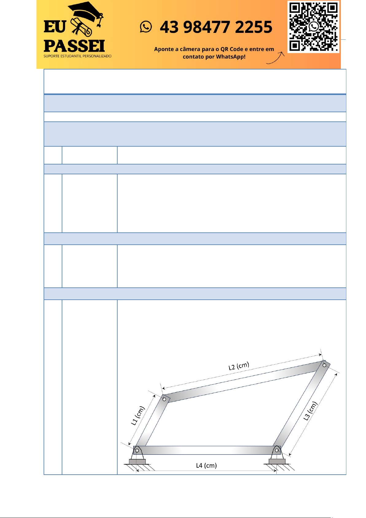 Calcule o comprimento das barras L3 e L4, em cm, do mecanismo de 4 barras:
