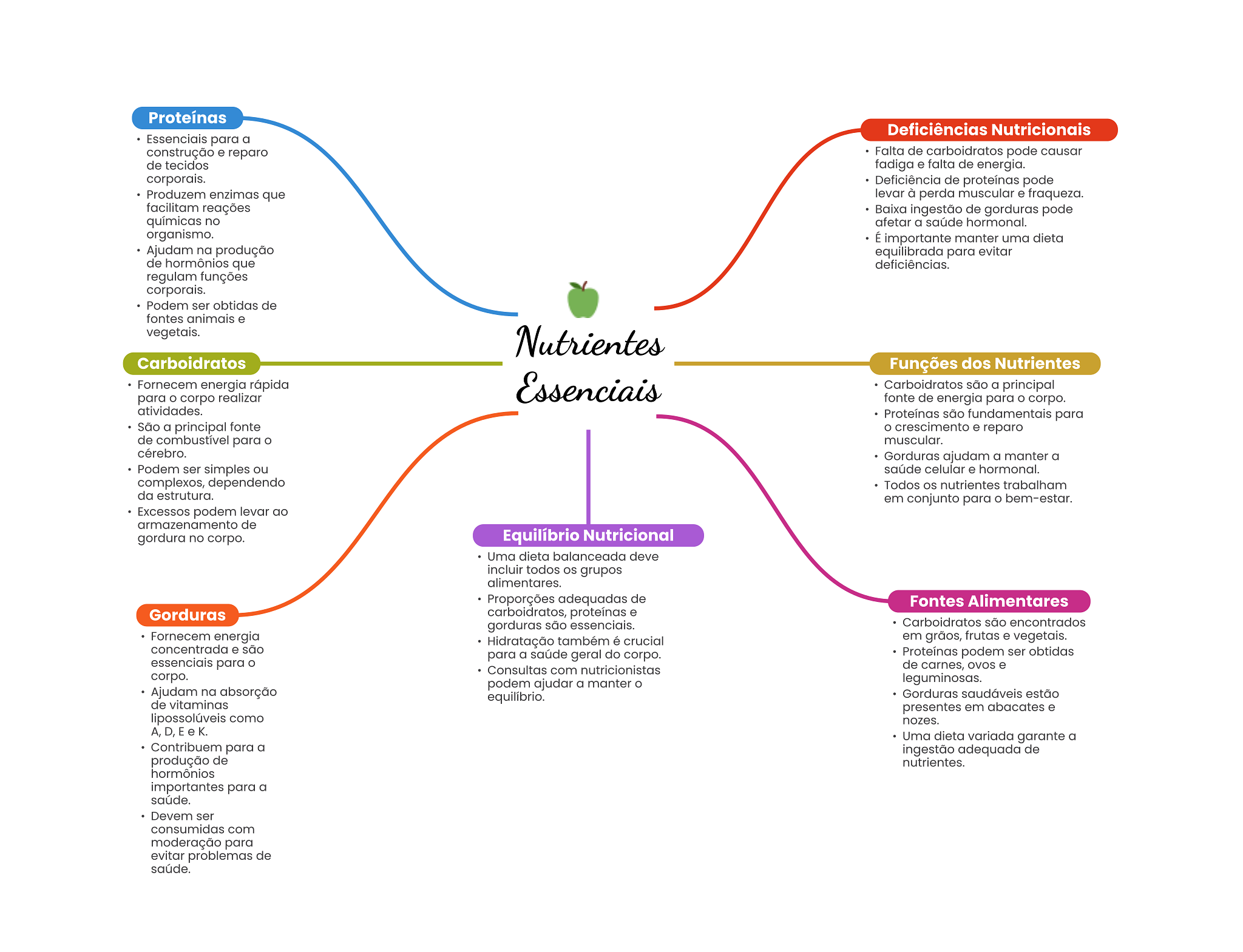 Proteínas Deficiências Nutricionais Essenciais para a construção e reparo Falta de carboidratos pode causar de tecidos fadiga e falta de energia. corporais. Deficiência de proteínas pode Produzem enzimas que levar à perda muscular e fraqueza. facilitam reações Baixa ingestão de gorduras pode químicas no afetar a saúde hormonal. organismo. É importante manter uma dieta Ajudam na produção equilibrada para evitar de hormônios que deficiências. regulam funções corporais. Podem ser obtidas de fontes animais e vegetais. Nutrientes Carboidratos Funções dos Nutrientes Fornecem energia rápida Essenciais Carboidratos são a principal para corpo realizar fonte de energia para corpo. atividades. Proteínas são fundamentais para São a principal fonte crescimento e reparo de combustível para muscular. cérebro. Gorduras ajudam a manter a Podem ser simples ou saúde celular e hormonal. complexos, dependendo Todos nutrientes trabalham da estrutura. em conjunto para bem-estar. Excessos podem levar ao armazenamento de gordura no corpo. Equilíbrio Nutricional Uma dieta balanceada deve incluir todos grupos alimentares. Proporções adequadas de Fontes Alimentares Gorduras carboidratos, proteínas e gorduras são essenciais. Carboidratos são encontrados Fornecem energia Hidratação também é crucial em grãos, frutas e vegetais. concentrada e são para a saúde geral do corpo. Proteínas podem ser obtidas essenciais para Consultas com nutricionistas de carnes, ovos e corpo. podem ajudar a manter leguminosas. Ajudam na absorção equilíbrio. Gorduras saudáveis estão de vitaminas presentes em abacates e lipossolúveis como nozes. A, D, E e K. Uma dieta variada garante a Contribuem para a ingestão adequada de produção de nutrientes. hormônios importantes para a saúde. Devem ser consumidas com moderação para evitar problemas de saúde.