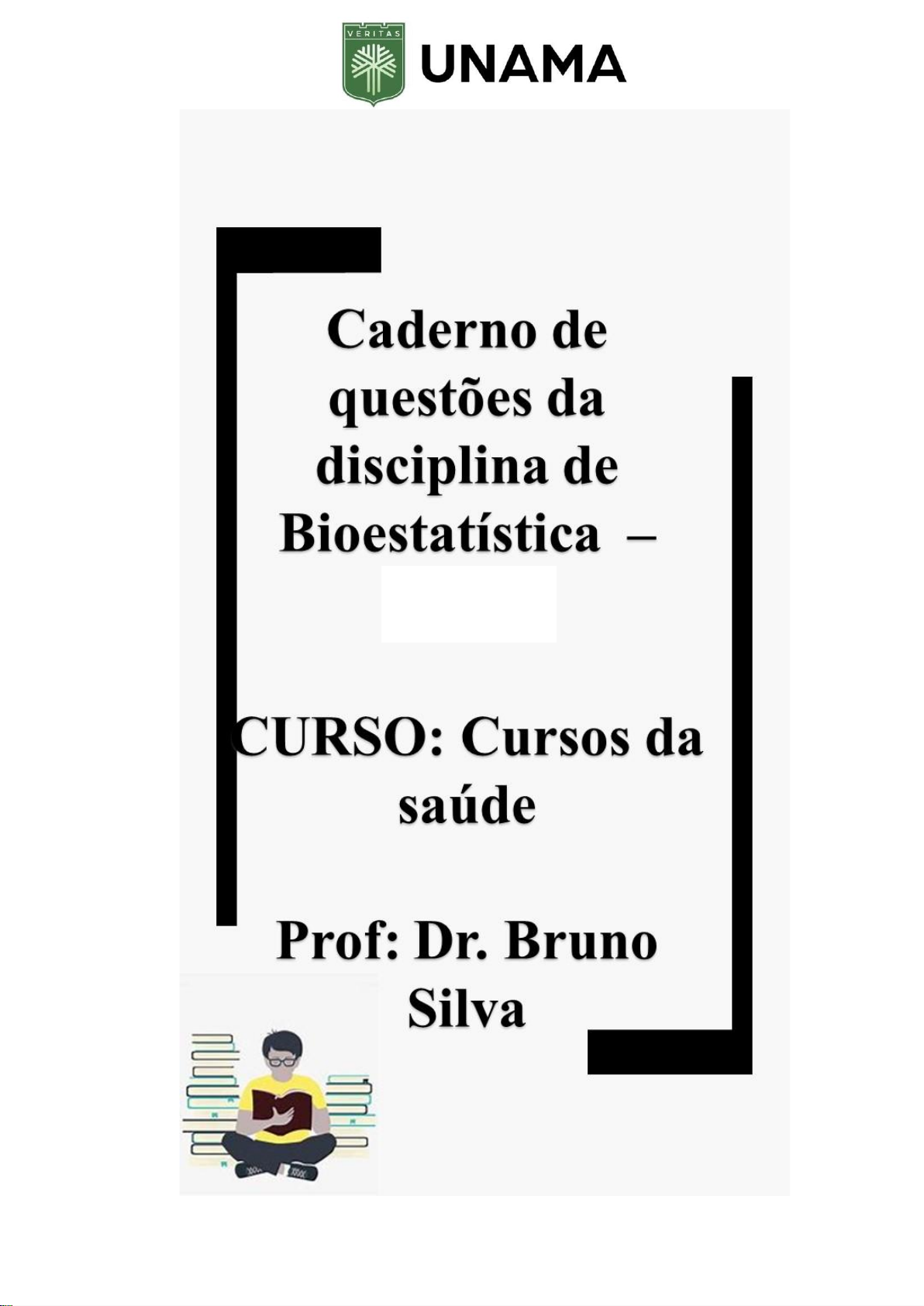 1) Responda as seguintes perguntas: Pergunta 1. Nos itens abaixo, identifique a população e a amostra. a) Sexo e Câncer (Revista Veja de 18/07/2001) Estar exposto a doenças sexualmente transmissíveis aumenta o risco de desenvolver câncer na próstata em homens de meia-idade. Esse é o resultado de um levantamento da Universidade de Illinois e do Fred Hutchinson Cancer Research, em Seattle (EUA), com 1456 homens entre 40 e 64 anos. Indivíduos com cerca de trinta parceiras ou mais, sobretudo com registro de doenças sexuais desse tipo, apresentaram risco dobrado para o câncer em comparação com aqueles de vida sexual menos ativa. População: Amostra: b) Mais velhos em risco (Revista Veja de 08/05/2002) Primogênitos correm maior risco de problemas cardiovasculares do que seus irmãos, de acordo com pesquisadores italianos. A Fundação Don Carlo Gnocchi, de Milão, constatou que, de 348 pacientes com doença coronariana, 46,7% eram primogênitos. A proporção de primogênitos na população italiana é de 29,3%. Não há conclusão sobre os motivos. População: Amostra: c) Aleitamento (Revista Veja de 29/08/2002) Amamentar uma criança por menos de três meses é um risco para a inteligência da garotada. Uma pesquisa publicada no Archives of Disease in Childhood avaliou as habilidades de 345 crianças. As avaliações ocorreram aos 13 meses e aos 5 anos de idade, com participantes que mamaram no peito por seis meses ou mais e outros que o fizeram por menos de noventa dias. Esses últimos apresentaram maior probabilidade de marcar pontos abaixo da média para habilidades mentais posteriores. População: Amostra: d) Pedaladas pela vida (Revista Época de 08/09/2003) Exercícios aeróbicos como pedalar ou caminhar são recomendados a pacientes que lutam contra a hipertensão. A boa noticia é que a atividade física combate a pressão alta mesmo quando praticada sem muito afinco. Algo entre 60 e 90 minutos de prática esportiva moderada por semana já contribui para manter a pressão arterial nos níveis ideais: entre 11 por 7 e 12 por 8. A revelação surgiu de um estudo com 207 homens e mulheres hipertensos e totalmente sedentários realizado pelo Instituto Nacional de Saúde e Nutrição do Japão. “Espero que nosso trabalho tire do sofá quem pensa que exercício só faz bem quando praticado várias vezes por semana”, diz o pesquisador Kazuko Ishikawa- Takata. Conclusão: pouco é sempre melhor do que nada. População: Amostra: e) Amigos do peito (Revista Época de 15/09/2003) Atividade física moderada, como natação, bicicleta ou caminhada de 30 minutos, praticada cinco vezes por semana, reduz em 20% o risco de câncer de mama. A conclusão é do mais abrangente estudo sobre o assunto, o Women’s Health Initiative, que acompanhou 74 mil americanas durante cinco anos. A prática de exercícios contribui para a saúde das mamas mesmo quando iniciada depois da menopausa. Os benefícios do esporte foram observados até em mulheres mais propensas aos tumores: aquelas com históricos de câncer de mama na família, as que fazem reposição hormonal e as que não tiveram filhos. A atividade reduz o risco de desenvolvimento da doença porque diminui a gordura corporal, que favorece a circulação de hormônios indutores do câncer. Mesmo que pratiquem exercícios, as mulheres devem combater o sobrepeso para garantir o efeito benéfico sobre as mamas. População: Amostra: 2) Considere as seguintes variáveis. I. Tamanho de um objeto (pequeno, médio ou grande). II. Volume de água em um rio. III. Número de clientes numa fila. IV. Número da seção de votação. V. Comprimento de um inseto. VI. Classe Social. 3) Com relação à classificação dos dados requeridos como variáveis de pesquisa, é correto afirmar que a) as variáveis I, IV e VI são qualitativas. b) as variáveis III e V são quantitativas contínuas. c) as variáveis II e III são quantitativas discretas. d) a variável IV é qualitativa ordinal. e) a variável IV é quantitativa discreta. 4) Assinale a alternativa que apresenta o conceito de variável quantitativa discreta: a) É aquela que expressa o valor de uma contagem, por exemplo, idade, quantidade de televisores numa casa, quantidade de habitantes de uma cidade. b) É aquela que separa os indivíduos em classes com uma determinada ordem, por exemplo, nível de escolaridade: fundamental, médio e superior. c) É aquela que expressa uma medida como um valor real, por exemplo, peso e altura. d) É aquela que separa os indivíduos em classes, porém não é possível estabelecer uma ordem, por exemplo, sexo (masculino e feminino) e esporte praticado (futebol, basquete, ciclismo…). e) É aquela que agrega os indivíduos em classes com uma determinada ordem. 5) Que parte da estatística se preocupa apenas em descrever determinada característica da população? a) Regressão estatística. b) Estatística contínua. c) Estatística descritiva. d) Estatística amostral. e) Estatística inferencial. 6) Classifique as seguintes variáveis em: (QN) Qualitativa nominal, (QO) Qualitativa ordinal (QC) Quantitativa contínua, (QD) Quantitativa discreta ( ) Cor dos olhos ( ) Número de filhos de um casal ( ) Peso de um indivíduo ( ) Altura de um indivíduo ( ) Número de alunos de uma escola ( ) Tipo sanguíneo ( ) Posicionamento das empresas no mercado ( ) Fator RH ( ) Sexo ( ) Comprimento de um segmento de reta ( ) Área de um círculo ( ) Raça ( ) Quantidade de livros de uma biblioteca ( ) Escolaridade dos funcionários de uma empresa ( ) Religião ( ) Salário dos empregados de uma empresa ( ) Comprimento dos parafusos produzidos em uma fábrica ( ) Estado civil ( ) O nível sócio-econômico dos residentes em um bairro de Ipatinga ( ) Tempo de vida de uma lâmpada ( ) Profissão ( ) Número de ações negociadas diariamente na bolsa de valores ( ) Volume de água contida numa piscina ( ) A classificação dos alunos no último vestibular 7) Identifique a 