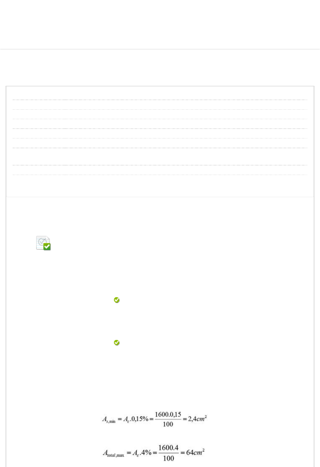 Revisar envio do teste: QUESTIONÁRIO UNIDADE III ESTRUTURAS DE CONCRETO ARMADO 7866-60_45301_D_20251 CONTEÚDO Usuário dayanne.honorio @aluno.unip.br Curso ESTRUTURAS DE CONCRETO ARMADO Teste QUESTIONÁRIO UNIDADE III Iniciado 07/03/25 15:02 Enviado 07/03/25 15:04 Status Completada Resultado da tentativa 4 em 4 pontos Tempo decorrido 1 minuto Resultados exibidos Todas as respostas, Respostas enviadas, Respostas corretas, Comentários, Perguntas respondidas incorretamente Pergunta 1 Resposta Selecionada: c. Respostas: a. b. c. d. e. Comentário da resposta: A NBR 6118, em seu item 17.3.5.2, fornece recomendações a respeito da adoção de valores máximos e mínimos das taxas de armaduras longitudinais, bem como oferece diretrizes sobre a adoção de armadura de pele. Com base nessas prescrições normativas, podemos afirmar que o valor mínimo da taxa de armadura de flexão, o valor máximo da soma das armaduras de compressão e tração fora da região de emendas, e a armadura de pele, por face, para uma viga de seção retangular de 20 cm x 80 cm, serão, em termos de combinações de barras, respectivamente: 2 ø 12,5 mm; 8 ø 32,0 mm e 4 ø 8,0 mm. 2 ø 12,5 mm; 4 ø 8,0 mm e 8 ø 32,0 mm. 8 ø 32,0 mm; 2 ø 12,5 mm e 4 ø 8,0 mm. 2 ø 12,5 mm; 8 ø 32,0 mm e 4 ø 8,0 mm. 2 ø 10,0 mm; 8 ø 32,0 mm e 4 ø 8,0 mm. 2 ø 12,5 mm; 10 ø 25,0 mm e 4 ø 8,0 mm. Resposta: C Comentário: sendo a seção da viga 20 cm x 80 cm, sua área será igual a 1600 cm2. A exigência normativa a respeito da área mínima absoluta da armadura de tração é de 0,15% . Ac. Então: Já a armadura longitudinal máxima, na região onde não houver emendas, será: UNIP EAD BIBLIOTECAS MURAL DO ALUNO TUTORIAISCONTEÚDOS ACADÊMICOS 0,4 em 0,4 pontos 07/03/2025, 15:02 Revisar envio do teste: QUESTIONÁRIO UNIDADE III – ... https://ava.ead.unip.br/w ebapps/assessment/review /review.jsp?attempt_id=_111058431_1&course_id=_385961_1&content_id=_4331980_1… 1/14 http://company.blackboard.com/ https://ava.ead.unip.br/webapps/blackboard/execute/courseMain?course_id=_385961_1 https://ava.ead.unip.br/webapps/blackboard/content/listContent.jsp?course_id=_385961_1&content_id=_4322373_1&mode=reset https://ava.ead.unip.br/webapps/portal/execute/tabs/tabAction?tab_tab_group_id=_10_1 https://ava.ead.unip.br/webapps/portal/execute/tabs/tabAction?tab_tab_group_id=_27_1 https://ava.ead.unip.br/webapps/portal/execute/tabs/tabAction?tab_tab_group_id=_47_1 https://ava.ead.unip.br/webapps/portal/execute/tabs/tabAction?tab_tab_group_id=_29_1 https://ava.ead.unip.br/webapps/portal/execute/tabs/tabAction?tab_tab_group_id=_25_1 https://ava.ead.unip.br/webapps/login/?action=logout Por fim, como h = 80 cm > 60 cm, a armadura de pele em cada face da alma da viga será calculada pela expressão: Deve-se, então, eleger as combinações de diâmetros comerciais de barras de aço, mais próximas dos valores calculados. Assim, conforme indica a figura a seguir, as combinações serão: Fonte: livro-texto As,mín = 2,4 cm2 → 2 ø 12,5 mm = 2,5 cm2 (situação A, no quadro) Atotal,máx = 64 cm2 → 8 ø 32,0 mm = 64 cm2 (situação B, no quadro) Asp,face = 1,6 cm2 → 4 ø 8,0 mm = 2,0 cm2 (situação C, no quadro) Pergunta 2 Com base na figura, na qual se representam o detalhamento parcial de uma viga de concreto armado e hipotéticas seções a ela relacionadas, assinale a alternativa correta: Fonte: autoria própria 0,4 em 0,4 pontos 07/03/2025, 15:02 Revisar envio do teste: QUESTIONÁRIO UNIDADE III – ... https://ava.ead.unip.br/w ebapps/assessment/review /review.jsp?attempt_id=_111058431_1&course_id=_385961_1&content_id=_4331980_1… 2/14 Resposta Selecionada: d. Respostas: a. b. c. d. e. Comentário da resposta: Trata-se de uma viga contínua de dois tramos simétricos em relação ao apoio central, sendo que ao corte AA corresponde a seção (II), e ao corte BB corresponde a seção (III), e N3, N4 e N6 são armaduras de tração. Trata-se de uma viga contínua de dois tramos simétricos em relação ao apoio central, sendo que, ao corte AA corresponde a seção (III), e ao corte BB corresponde a seção (II), e N3 e N4 são armadura de compressão. Trata-se de uma viga biapoiada, sendo que ao corte AA corresponde a seção (II), e ao corte BB corresponde a seção (III), e N2, N3 e N4 são armaduras de compressão, enquanto N6 e N7 são armadura de tração. Trata-se de uma viga biapoada, sendo que ao corte AA corresponde a seção (III), e ao corte BB corresponde a seção (II), e N3 e N4 são armadura de compressão. Trata-se de uma viga contínua de dois tramos simétricos em relação ao apoio central, sendo que ao corte AA corresponde a seção (II), e ao corte BB corresponde a seção (III), e N3, N4 e N6 são armaduras de tração. Trata-se de uma viga contínua de dois tramos simétricos em relação ao apoio central, sendo que ao corte AA corresponde a seção (II), e ao corte BB corresponde a seção (III), e N3, N4 e N6 são armaduras de compressão. Resposta: D Comentário: a simetria em relação ao centro da armadura deixa evidente tratar-se de armadura de uma viga contínua, triapoiada e simétrica em relação ao apoio central. Assim sendo, o diagrama de momentos fletores “inverterá” na região desse apoio, fazendo com que as armaduras superiores trabalhem tracionadas. Assim, podemos dizer que: Alternativa A: trata-se de uma viga contínua de dois tramos simétricos em relação ao apoio central, mas ao corte AA não corresponde a seção (III), mas sim à seção (II), e ao corte BB não corresponde a seção (II), mas sim a (III), e N3 e N4 não são armaduras de compressão, mas sim de tração. Portanto, a alternativa está incorreta. Alternativa B: não se trata de uma viga biapoiada, sendo que ao corte AA corresponde a seção (II), e ao corte BB corresponde a seção (III), e N2, N3 e N4 não são armaduras de compressão, enquanto N6 e N7 são armaduras de tração. Portanto, a alternativa está inco