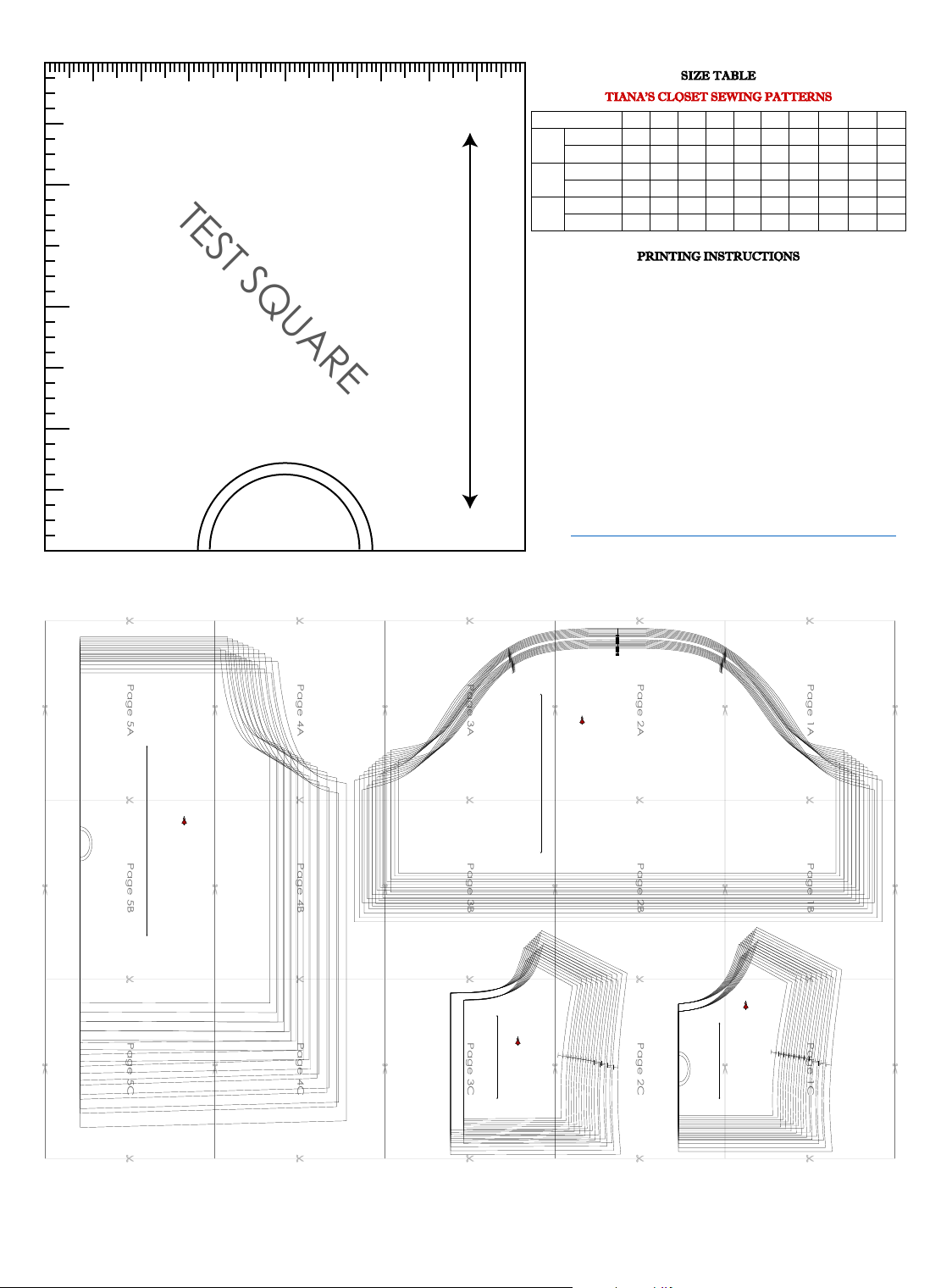 For more ideas and free sewing patterns, visit http://tianascloset.com TEST SQUARE 10 centimeters 4 inches this is a fold mark SIZE TABLE TIANA’S CLOSET SEWING PATTERNS Size code XXS XS S M L XL XXL 3XL 4XL 5XL Bust centimeter 80 84 88 92 96 100 104 110 116 122 inch 31.5 33.1 34.6 36.2 37.8 39.4 40.9 43.3 45.7 47.2 Waist centimeter 60 64 68 72 76 80 84 90 96 102 inch 23.6 25.2 26.8 28.3 29.9 31.5 33.1 35.4 37.8 40.2 Hip centimeter 88 92 96 100 104 108 112 118 124 130 inch 34.6 36.2 37.8 39.4 40.9 42.5 44.1 46.5 49.6 52.0 PRINTING INSTRUCTIONS - Tiana’s Closet sewing patterns are made in Layered PDF format, which means all sizes are saved in one file and can be shown or hidden. It is recommended to use Adobe Acrobat Reader (paid version on Mac OS, free on Windows) or Foxit PDF Reader (free, works on Windows only) to read the file correctly. In order to choose the desired size(s), go to Layers tab of your PDF reader, uncheck all boxes except for the desired size(s) and the box Print for all sizes. - When printing the pattern, go to Print settings, in the tab Scale choose Custom scale: 100% (or Scaling: None or Actual Size) to print true to size. Note: some computers print smaller than true size even when you choose 100% scale, so you will have to adjust the scale to a little larger than 100% and measure the test square until you get the true size. - The test square is 10 centimeters (horizontally) and 4 inches (vertically). - Always print the first page of the file and measure to avoid waste of paper. - After printing the pattern, cut the pages along the lines with scissors icon, align and tape the pages according to their sequences. For example, page 1A is taped to page 1B in a row, and page 1A is taped to page 2A in a column. Please see the image below to see how the pages line up. - You can find photo instruction for printing sewing patterns on Tiana’s Closet website: https://tianascloset.com/index.php/how-to-print-tianas-closet-patterns/ th is is th e gr ai nl in e P a g e 1 A P a g e 1 B P a g e 1 C P a g e 2 A P a g e 2 B P a g e 2 C P a g e 3 A P a g e 3 B P a g e 3 C P a g e 4 A P a g e 4 B P a g e 4 C P a g e 5 A P a g e 5 B P a g e 5 C BASALIE FLUTTER SLEEVE TOP with seam allowance FRONT YOKE cut 1 on fold (unlined) cut 1 self + 1 lining on fold (lined) Tiana’s Closet BASALIE FLUTTER SLEEVE TOP with seam allowance BACK YOKE cut 2 (unlined) cut 2 self + 2 lining (lined) Tiana’s Closet BASALIE FLUTTER SLEEVE TOP with seam allowance LOWER TOP (FRONT AND BACK) cut 2 on fold (unlined) cut 2 self + 2 lining on fold (lined) Tiana’s Closet BASALIE FLUTTER SLEEVE TOP with seam allowance SLEEVE cut 2 (unlined) Tiana’s Closet Size: XXS Size: XXS Size: XXS Size: XXS Size: XS Size: XS Size: XS Size: XS Size: S Size: S Size: S Size: S Size: M Size: M Size: M Size: M Size: L Size: L Size: L Size: L Size: XL Size: XL Size: XL Size: XL Size: XXL Size: XXL Size: XXL Size: XXL Size: 3XL Size: 3XL Size: 3XL Size: 3XL Size: 4XL Size: 4XL Size: 4XL Size: 4XL Size: 5XL Size: 5XL Size: 5XL Size: 5XL Page 1A Page 1B Page 1C BA SA LI E FL UT TE R SL EE VE T O P w ith s ea m a llo w an ce FR O N T YO KE cu t 1 o n fo ld (u nl in ed ) cu t 1 s el f + 1 li ni ng o n fo ld (l in ed ) Ti an a’ s Cl os et Si ze : X XS Si ze : X S Si ze : S Si ze : M Si ze : L Si ze : X L Si ze : X XL Si ze : 3 XL Si ze : 4 XL Si ze : 5 XL Page 2A BA SA LI E FL UT TE R SL EE VE T O P w ith s ea m a llo w an ce SL EE VE cu t 2 (u nl in ed ) Ti an a’ s Cl os et Si ze : X XS Si ze : X S Si ze : S Si ze : M Si ze : L Si ze : X L Si ze : X XL Si ze : 3 XL Si ze : 4 XL Si ze : 5 XL Page 2B Page 2C Page 3A Page 3B Page 3C BA SA LI E FL UT TE R SL EE VE T O P w ith s ea m a llo w an ce BA CK Y O KE cu t 2 (u nl in ed ) cu t 2 s el f + 2 li ni ng (l in ed ) Ti an a’ s Cl os et Si ze : X XS Si ze : X S Si ze : S Si ze : M Si ze : L Si ze : X L Si ze : X XL Si ze : 3 XL Si ze : 4 XL Si ze : 5 XL Page 4A Page 4B Page 4C Page 5A Page 5B BA SA LI E FL UT TE R SL EE VE T O P w ith s ea m a llo w an ce LO W ER T O P (F RO N T AN D BA CK ) cu t 2 o n fo ld (u nl in ed ) cu t 2 s el f + 2 li ni ng o n fo ld (l in ed ) Ti an a’ s Cl os et Si ze : X XS Si ze : X S Si ze : S Si ze : M Si ze : L Si ze : X L Si ze : X XL Si ze : 3 XL Si ze : 4 XL Si ze : 5 XL Page 5C