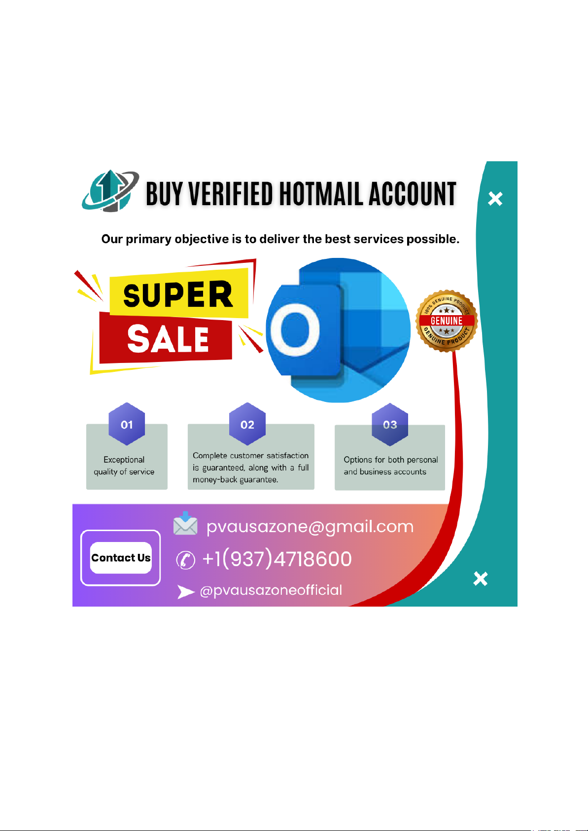 #7 Best Online Platfrom Safe & Legal Hotmail Account Setup Guide (2026 Edition) How to Create and Secure a Hotmail (Outlook) Account Safely — Complete 2026 Guide In today’s digital ecosystem, your email account is your identity hub. It connects banking, social media, work tools, and cloud storage. A poorly created or weakly secured account becomes an easy target for hijacking, phishing, and identity misuse. We approach Hotmail (now Outlook) account setup with a security-first mindset. Proper configuration at the beginning prevents recovery headaches, lockouts, and unauthorized access later. A legitimate, well-verified account also builds long-term trust with Microsoft’s systems, reducing flags or suspicious activity warnings. This guide walks through a clean, compliant, and secure method to create and maintain a Hotmail account that remains stable for years. ▰▰▰▰▰▰▰▰▰▰▰▰▰▰▰▰▰▰▰ ✅⇒Order Now: https://pvausazone.com/ ✅⇒24-hour Reply/Contacts ✅⇒Telegram: @pvausazoneofficial ✅⇒Whatsapp: +19374718600 ✅⇒Website Visit Now: https://pvausazone.com/product/buy-hotmail-accounts/ ▰▰▰▰▰▰▰▰▰▰▰▰▰▰▰▰▰▰▰ Step-by-Step Guide to Creating a Legitimate Hotmail Account 1. Use a Secure and Trusted Device Always create your account on: ● A personal computer or phone ● Updated operating system ● Trusted home internet connection Avoid public Wi-Fi or shared devices. These environments increase exposure to session interception and malware. 2. Navigate to the Official Microsoft Signup Page Only use Microsoft’s official signup portal. Bookmark it for future access. Avoid links from emails or ads that may redirect to phishing clones. 3. Choose a Professional Username A strong username should be: ● Easy to remember ● Professional if used for work https://pvausazone.com/ https://t.me/pvausazoneofficial https://wa.me/qr/6JPQRQQVHTFSE1 https://pvausazone.com/product/buy-old-gmail-accounts/ ● Free from suspicious keywords Avoid spam-like patterns. Microsoft systems monitor account credibility signals from the start. 4. Create a High-Strength Password A secure password includes: ● 14+ characters ● Uppercase and lowercase letters ● Numbers and symbols ● No personal information Password managers are recommended for storage. Identity Verification Best Practices Microsoft may request verification to confirm legitimacy. This is a positive security layer. Phone Verification Tips ● Use your real mobile number ● Ensure signal availability during signup ● Do not reuse numbers across many accounts Recovery Email Setup Add a recovery email immediately. This ensures: ● Account recovery access ● Security alert delivery ● Identity confirmation Never skip this step. Activating Advanced Security Features Enable Two-Factor Authentication (2FA) 2FA adds a second login layer using: ● Authenticator apps ● SMS verification ● Security prompts This prevents unauthorized access even if your password leaks. Turn On Login Alerts Instant alerts notify you of: ● New device logins ● Suspicious attempts ● Password changes Early detection is critical. Account Warm-Up and Trust Building New accounts benefit from gradual activity. Avoid behavior that looks automated. Recommended actions: ● Send a few legitimate emails ● Organize inbox folders ● Update profile details ● Sync with calendar and cloud Consistency signals legitimacy to Microsoft systems. Avoiding Common Security Mistakes Many account issues stem from avoidable behaviors. Do NOT: ● Share login credentials ● Use unknown browser extensions ● Click suspicious email links ● Log in from multiple regions quickly ● Ignore security notifications Do: ● Regular password updates ● Device security scans ● Backup recovery methods ▰▰▰▰▰▰▰▰▰▰▰▰▰▰▰▰▰▰▰ ✅⇒Order Now: https://pvausazone.com/ ✅⇒24-hour Reply/Contacts ✅⇒Telegram: @pvausazoneofficial ✅⇒Whatsapp: +19374718600 ✅⇒Website Visit Now: https://pvausazone.com/product/buy-hotmail-accounts/ ▰▰▰▰▰▰▰▰▰▰▰▰▰▰▰▰▰▰▰ Maintaining Long-Term Account Stability Healthy accounts require periodic maintenance. Security Routine Checklist ● Review login history monthly https://pvausazone.com/ https://t.me/pvausazoneofficial https://wa.me/qr/6JPQRQQVHTFSE1 https://pvausazone.com/product/buy-old-gmail-accounts/ ● Update recovery info yearly ● Remove unused connected apps ● Check spam filters Consistency reduces lockout risks. Recognizing and Preventing Phishing Attacks Modern phishing attempts look convincing. Warning signs: ● Urgent language ● Fake account warnings ● Suspicious links ● Requests for personal info Always verify directly through official Microsoft portals. Professional Use Optimization If your Hotmail account is used for business or outreach: ● Maintain a clean email signature ● Use organized folders ● Avoid mass unsolicited emails ● Follow communication best practices Professional behavior improves deliverability and credibility. Recovery Strategy Preparation Preparation prevents panic during access issues. Always keep: ● Recovery email updated ● Phone number active ● Backup codes stored securely Test recovery options annually. Future-Proofing Your Account Security Security threats evolve. Stay proactive: ● Follow Microsoft security updates ● Adopt new authentication features ● Monitor breach alerts ● Update credentials periodically A future-ready account is resilient. ▰▰▰▰▰▰▰▰▰▰▰▰▰▰▰▰▰▰▰ ✅⇒Order Now: https://pvausazone.com/ ✅⇒24-hour Reply/Contacts ✅⇒Telegram: @pvausazoneofficial ✅⇒Whatsapp: +19374718600 ✅⇒Website Visit Now: https://pvausazone.com/product/buy-hotmail-accounts/ ▰▰▰▰▰▰▰▰▰▰▰▰▰▰▰▰▰▰▰ Conclusion A Hotmail account is more than an inbox — it is a digital id