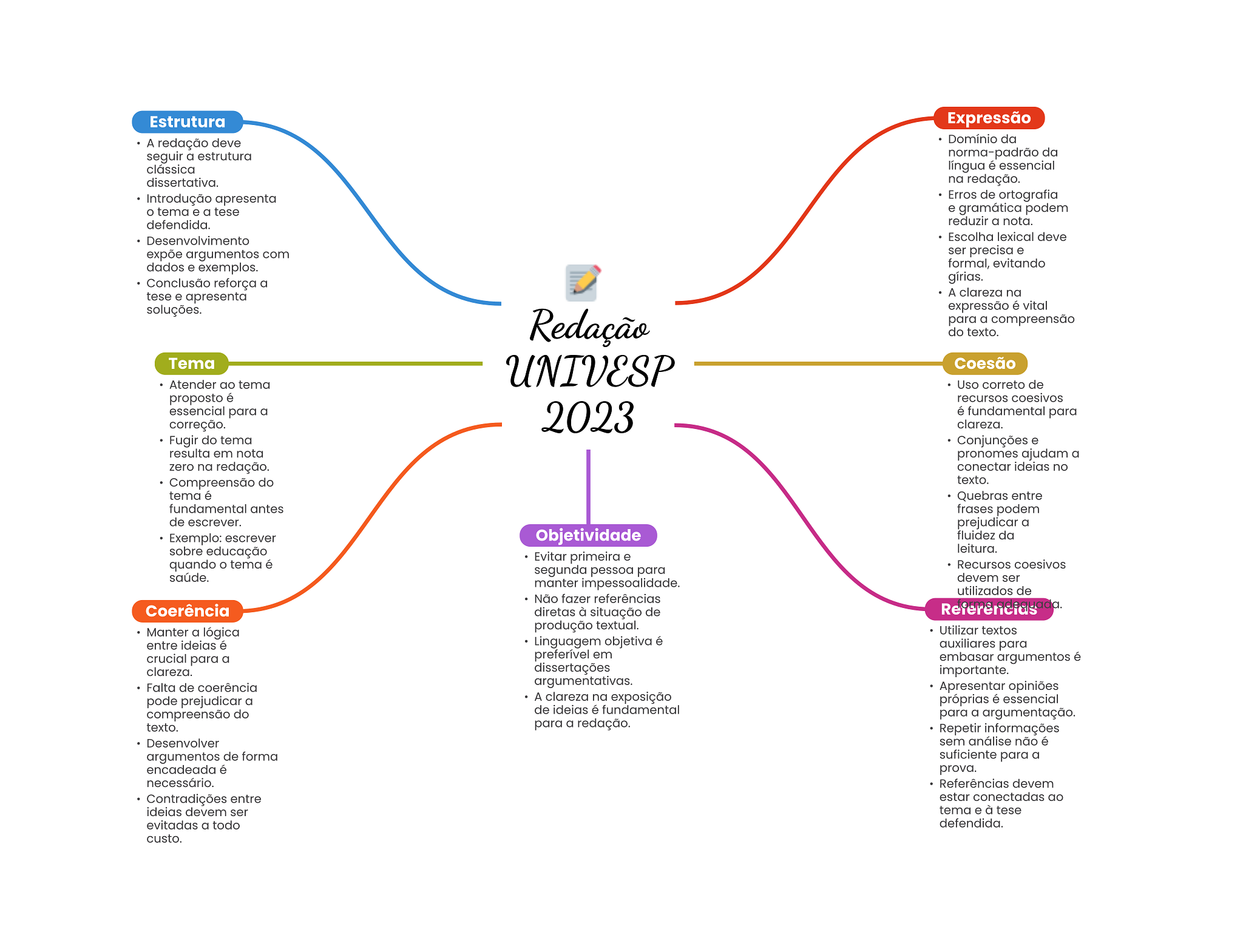 Estrutura Expressão A redação deve Domínio da seguir a estrutura norma-padrão da clássica língua é essencial dissertativa. na redação. Introdução apresenta Erros de ortografia tema e a tese e gramática podem defendida. reduzir a nota. Desenvolvimento Escolha lexical deve expõe argumentos com ser precisa e dados e exemplos. formal, evitando Conclusão reforça a gírias. tese e apresenta A clareza na soluções. expressão é vital Redação para a compreensão do texto. Tema UNIVESP Coesão Atender ao tema Uso correto de proposto é recursos coesivos essencial para a correção. 2023 é fundamental para clareza. Fugir do tema Conjunções e resulta em nota pronomes ajudam a zero na redação. conectar ideias no Compreensão do texto. tema é Quebras entre fundamental antes frases podem de escrever. prejudicar a Exemplo: escrever Objetividade fluidez da sobre educação leitura. Evitar primeira e quando tema é segunda pessoa para Recursos coesivos saúde. devem ser manter impessoalidade. utilizados de Não fazer referências Coerência diretas à situação de Referências Manter a lógica produção textual. Utilizar textos entre ideias é Linguagem objetiva é auxiliares para crucial para a preferível em embasar argumentos é clareza. dissertações importante. Falta de coerência argumentativas. Apresentar opiniões pode prejudicar a A clareza na exposição próprias é essencial compreensão do de ideias é fundamental para a argumentação. texto. para a redação. Repetir informações Desenvolver sem análise não é argumentos de forma suficiente para a encadeada é prova. necessário. Referências devem Contradições entre estar conectadas ao ideias devem ser tema e à tese evitadas a todo defendida. custo.