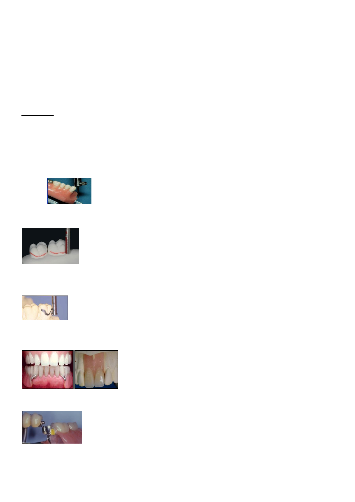 Roteiro Aula- Profa.Elvira Inostroza Delineadores Delineador é um instrumento usado para determinar o paralelismo relativo de duas ou mais superfícies de dentes ou outras partes do modelo de uma arcada dentária. Delinear é o procedimento utilizado para estudar o paralelismo ou sua falta entre as superfícies dentais, os dentes entre si e os dentes ao rebordo ósseo a ser utilizado como suporte. FUNÇÕES 1-Determinação da trajetória de inserção: Selecionar uma trajetória de inserção em que haja o mínimo de interferências em dentes e rebordos, promovendo assim retenção balanceada, adequando as forças para serem favoráveis à prótese. 2-Localização de interferências: Localizar áreas de interferências dentárias (ex: inclinações para o EP) e também áreas ósseas que serão críticas (retentivas) nas moldagens funcionais. 3-Determinação e localização da LEP : Demarcar o equador protético dos dentes remanescentes, evidenciando a necessidade ou não da confecção dos planos de guia de inserção da PPR. Volpato,2011 4-Localização dos terminais retentivos: Localizar as áreas de retenção conveniente dos dentes pilares para a aplicação do terminal retentivos dos grampos (calibradores de retenção) 5-Analisar os efeitos estéticos dos retentores, e realizar o desenho preliminar da PPR.Verificar os ângulos mortos nas proximais dos dentes pilares vizinhos a um EP. 6-Posicionamento de encaixes de precisão. http://www.preatstore.com Partes constituintes dos Delineadores - Delineador: base horizontal, braço horizontal móvel,braço vertical rígido, braço vertical móvel. - Platina (mesa de modelo): base, suporte do modelo, junta universal, parafuso da junta universal. -Acessórios: mandril ou porta grafite, faca ou cinzel, pontas calibradoras (0,25/ 0,50 e 0,75), ponta analisadora. Dispositivo paralelizador(braçadeira) Métodos de Determinação da Trajetória de Inserção Fatores determinantes na seleção da direção de inserção: A – evitar retenções ósseas ou mucosas que dificultem ou impeçam a inserção da prótese na boca. B - possibilitar a preparação de planos de guia em todosos dentes pilares; C – possibilitar a obtenção de retenção equivalente emtodos os dentes pilares; D – possibilitar a localização dos grampos em regiões que favoreçam a estética; Método de Roach ou dos Três pontos É baseado no princípio de que 3 pontos formam um plano.O objetivo deste método é tornar o plano oclusal perpendicular à trajetória de inserção. Os três pontos devem localizar-se: - Na arcada superior:Nas fossetas mesiais dos molares direitos e esquerdos; Entre os incisivos centrais na região palatina, onde os incisivos inferiores fazem contato. - Na arcada inferior: Nas fossetas mesiais dos molares direitos e esquerdos;Na superfície incisal entre os incisivos centrais. Desvantagens: Generaliza todos os casos a uma única situação;A trajetória de inserção obtida, muitas vezes exige um preparo de boca extenso e prejudicial. Método das Bissetrizes É baseado na inclinação dos longos eixos dos dentes de suporte. Na base do modelo traçam-se linhas paralelas ao longo eixo dos dentes suportes, no sentido mésio-distal, obtendo-se a bissetriz dessas linhas. Desvantagens: Não considera o contorno da coroa de cada dente; Método Seletivo de Applegate ou das Tentativas É baseado no equilíbrio das retenções, nos planos guias, nas interferências e na estética. O melhor posicionamento será aquele que proporciona maiores vantagens de paralelismo (menor desgaste de planos guias), maior retenção, melhor estética e menor interferências dentais e de rebordo. Fixação ou Perpetuação da Trajetória de Inserção A)Pela cimentação de uma haste metálica no modelo B) Por traços realizados no modelo: traços na lateral e na parte posterior da base do modelo. C) Seleção de três pontos internos na mesma altura no modelo D) Guia ou dispositivo de fixação da trajetória de inserção. Ele também serve para transferir essa trajetória do modelo de estudo para o modelo de trabalho. Referências Bibliográficas: Todescan R; Silva EB; Silva OJ. Atlas de Prótese Parcial Removível. 1996. http://www.bioart.com.br/caso_clinico/alessandro.pdf