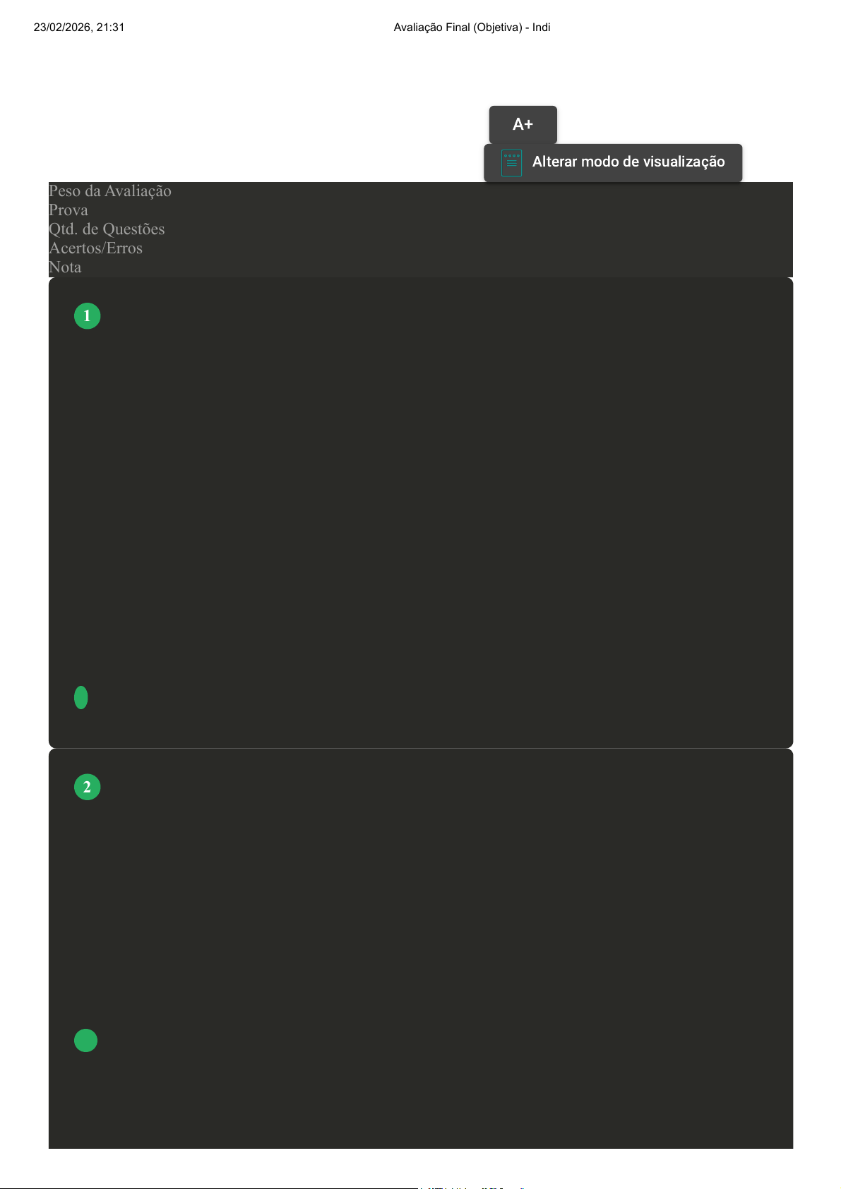 Prova Impressa GABARITO | Avaliação Final (Objetiva) - Individual (Cod.:1525830) Peso da Avaliação 4,00 Prova 105947945 Qtd. de Questões 10 Acertos/Erros 7/3 Nota 7,00 Os cabos condutores aéreos usados em linhas de transmissão têm evoluído nos últimos 130 anos, tanto no que diz respeito aos materiais, quanto às formas. Os materiais condutores evoluíram do cobre para o alumínio, por motivação de preço, devido à abundancia do metal na crosta terrestre. Os materiais mecanicamente resistentes evoluíram do cobre para o aço e, mais recentemente, para nanomateriais em cerâmicas e polímeros. Os materiais mecanicamente resistentes foram combinados aos materiais condutores para melhorar o desempenho mecânico dos cabos suspensos, aumentando os vãos de suspensão dos cabos. Para o pleno funcionamento das linhas de transmissão, os condutores são ditos como elementos ativos e fundamentais; portanto, o dimensionamento e a especificação são primordiais. Com base nas características ideais que os condutores de cobre ou de alumínio devem possuir para essas aplicações, assinale a alternativa CORRETA: A A condutibilidade elétrica pode ser baixa visto que as linhas de transmissão não dependem desse parâmetro; o peso dos condutores não influencia nas estruturas e suportes metálicos; boa resistência mecânica. B Baixa condutibilidade elétrica; alto peso específico para suportar os ventos; baixa resistência mecânica; alta resistência a oxidação e corrosão por agentes químicos poluentes. C Alta condutibilidade elétrica; ter boa resistência mecânica e boa resistência a oxidação, pois no Brasil as linhas não sofrem com oxidação por estarem distantes da zona marítima. D Alta condutibilidade elétrica; baixo custo; baixo peso específico; boa resistência mecânica; alta resistência a oxidação e baixa corrosão por agentes químicos poluentes. As harmônicas são componentes de uma onda periódica cuja frequência é um múltiplo da frequência fundamental. Estão associadas às deformações periódicas nas formas de onda de tensão ou corrente. Assinale a alternativa correta que apresenta um exemplo de carga, o tipo de carga e quais as harmônicas que são mais prejudiciais aos sistemas elétricos. A Acionamentos tiristorizados, cargas não lineares e harmônicas pares. B Máquinas de solda e arco, cargas não lineares e harmônicas pares. C Conversores eletrônicos, cargas não lineares e harmônicas ímpares. D Acionamento direto de motores trifásicos, cargas não lineares e harmônicas ímpares. VOLTAR A+Aumentar, Fonte Alterar modo de visualização 1 2 23/02/2026, 21:31 Avaliação Final (Objetiva) - Individual about:blank 1/6 E Inversor de frequência, cargas lineares e harmônicas ímpares. Transformador é uma máquina elétrica estática que tem como finalidade transferir energia elétrica de um circuito para outro, geralmente com tensões e correntes diferentes, mantendo a mesma frequência e aproximadamente a mesma potência. Podemos classificá-los em transformadores abaixadores e elevadores. Os abaixadores transformam tensões de um determinado valor para outros mais baixos e os elevadores fazem o inverso, ou seja, recebem tensões de um determinado valor e elevam para outros mais elevados. Sobre os transformadores, analise as sentenças a seguir: I- Os transformadores são fabricados para serem usados em circuitos monofásicos, bifásicos ou trifásicos. II- A refrigeração desses equipamentos pode ser a óleo ou a seco. Em áreas residenciais, normalmente são utilizados transformadores trifásicos com refrigeração a seco. III- Transformadores abaixadores são máquinas elétricas que reduzem o nível de tensão da saída e apresentam uma baixa perda de potência. IV- Nos transformadores abaixadores o nível de tensão de saída é menor do que o nível de tensão de entrada, a corrente de saída deve incrementar na mesma proporção, de modo que a potência de entrada seja igual à potência de saída. Assinale a alternativa CORRETA: A As sentenças I e II estão corretas. B As sentenças II, III e IV estão corretas. C Somente a sentença III está correta. D As sentenças I, III e IV estão corretas. Uma linha de transmissão de energia elétrica pode ser representada pelos parâmetros: resistência, indutância, capacitância e condutância. A condutância leva em conta a corrente de fuga nos isoladores, podendo ser desprezível. A resistência é fornecida pelos fabricantes de condutores para certas condições de operação. A indutância e a capacitância são determinadas com base nos campos elétrico e magnético presentes em um circuito. Uma variação de corrente nos condutores provoca uma variação no número de linhas de fluxo magnético concatenadas com o circuito. Por sua vez, qualquer variação do fluxo concatenado com o circuito lhe induz uma tensão, cujo valor é proporcional à taxa de variação do fluxo. Por outro lado, a diferença de potência entre condutores faz com que esses se tornem carregados, de modo semelhante às placas de um capacitor. Assim, chega-se à conclusão que a indutância e a capacitância são parâmetros determinados por fatores construtivos e geométricos (material e dimensões). Com base no exposto, classifique V para as sentenças verdadeiras e F para as falsas: ( ) A capacitância de uma linha de transmissão resulta da diferença de potencial entre os condutores. ( ) A capacitância entre condutores em paralelo é uma constante que depende das dimensões e do afastamento entre os condutores. ( ) Por meio do campo magnético, é determinado o parâmetro da indutância, que resulta da diferença de potencial entre condutores. ( ) Para linhas menores que 80 km de comprimento, o efeito da capacitância é mínimo e usualmente desprezado. 3 4 23/02/2026, 21:31 Avaliação Final (Objetiva) - Individual about:blank 2/6 Assinale a alternativa que apresenta a sequência CORRETA: FONTE: STEVE