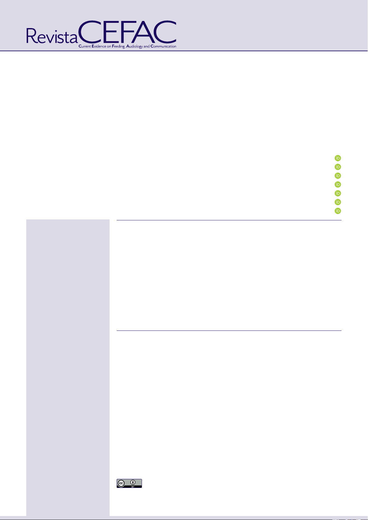 1 Universidade Federal de Minas Gerais - UFMG, Programa de Pós-Graduacão em Ciências Fonoaudiológicas, Belo Horizonte, MG, Brasil. 2 Universidade Federal de Minas Gerais - UFMG, Graduação em Fonoaudiologia, Belo Horizonte, MG, Brasil. 3 Universidade Federal de Minas Gerais - UFMG, Faculdade de Medicina, Departamento de Otorrinolaringologia, Belo Horizonte, MG, Brasil. 4 Universidade Federal de Minas Gerais - UFMG, Faculdade de Medicina, Departamento de Fonoaudiologia, Belo Horizonte, MG, Brasil. A estimulação vestibular galvânica na melhora do equilíbrio de um indivíduo com doença de Parkinson e dependência total para atividades de vida diária: relato de caso Galvanic vestibular stimulation in improving balance in an individual with Parkinson’s disease totally dependent for activities of daily living: A case report Maria Luiza Diniz1 Stéfane Laura Brandão2 Alessandra Cardoso Ribeiro2 Anna Paula Batista de Ávila Pires3 Renata Cristina Cordeiro Diniz Oliveira1 Denise Utsch Gonçalves3 Ludimila Labanca4 Estudo realizado na Universidade Federal de Minas Gerais, Belo Horizonte, Minas Gerais, Brasil. Fonte de financiamento: Pró-Reitoria de Pesquisa (PRPq) da Universidade Federal de Minas Gerais processo 02/2025 Conflito de interesses: Inexistente Endereço para correspondência: Maria Luiza Diniz Av. Prof. Alfredo Balena, 190 Cep 30130- 100 - Belo Horizonte, MG, Brasil E-mail:marialuizadnz@hotmail.com Recebido em 19/06/2025 Recebido na versão revisada em 26/07/2025 Aceito em 23/09/2025 Editor Chefe: Erissandra Gomes Editor Associado: Denise Costa Menezes RESUMO Descreveram-se os efeitos imediatos e tardios da intervenção Estimulação Vestibular Galvânica (EVG) na instabilidade postural de um homem, 75 anos, com doença de Parkinson (DP), demência e dependência total para atividades de vida diária básicas. A instabilidade postural foi avaliada por meio da Escala de Equilíbrio de Berg (EEB) e pelo Timed Up and Go Test (TUG). As medidas de análise foram feitas antes, logo após e doze meses após a intervenção, denominados Pré-EVG, Pós-EVG e após12m-EVG, respectivamente. A EVG foi aplicada uma vez por semana por oito semanas consecutivas. Utilizou-se corrente do tipo alternada com intensidade variando de 1mA a 3,5mA. A duração do estímulo foi de 11 minutos na 1ª semana, 18 minutos na 2ª semana e, da 3ª à 8ª semana, foi de 30 minutos. Para o TUG, no momento Pré-EVG o tempo de execução foi de 26 segundos, no Pós-EVG foi de 15 segundos e Após-12m-EVG foi de 29 segundos. Para a EEB, o Pré-EVG foi de 4 pontos, o Pós-EVG foi de 16 pontos e Após12m-EVG foi de 10 pontos. Assim, percebe-se que houve melhora da instabilidade postural; no entanto, os efeitos não se mantiveram após 12 meses. Descritores: Doença de Parkinson; Demência; Equilíbrio Postural; Terapia por Estimulação Elétrica; Sistema Vestibular ABSTRACT This report describes the immediate and late effects of galvanic vestibular stimulation (GVS) on postural instability in a 75-year-old man with Parkinson’s disease (PD) and dementia, who was totally dependent for basic activities of daily living. Postural instability was assessed using the Berg Balance Scale (BBS) and the Timed Up and Go Test (TUG). Analytical measures were taken before, immediately after, and 12 months after the intervention, designated pre-GVS, post-GVS, and post-12m-GVS, respectively. GVS was applied once a week for 8 consecutive weeks, using alternating currents ranging from 1 mA to 3.5 mA. The stimulation duration was 11 minutes in the first week, 18 minutes in the second week, and 30 minutes from the third to the eighth week. TUG values were 26 seconds (pre-GVS), 15 seconds (post-GVS), and 29 seconds (post-12m-GVS). BBS scores were 4 points (pre-GVS), 16 points (post-GVS), and 10 points (post-12m-GVS). Therefore, his postural instability improved, but the effects were not maintained after 12 months. Keywords: Parkinson Disease; Dementia; Postural Balance; Electric Stimulation Therapy; Vestibular System 6125 Relatos de casos Rev. CEFAC. 2026;28(1):e6125 DOI: 10.1590/1982-0216/20262816125 DOI: 10.1590/1982-0216/20262816125s | Rev. CEFAC. 2026;28(1):e6125 eISSN 1982-0216 1/7 © 2025 Diniz et al. Este é um artigo publicado em acesso aberto (Open Access) sob a licença Creative Commons Attribution, que permite uso, distribuição e reprodução em qualquer meio, sem restrições desde que o trabalho original seja corretamente citado. https://orcid.org/0000-0001-5479-4377 https://orcid.org/0009-0000-4786-4621 https://orcid.org/0009-0000-0625-3357 https://orcid.org/0000-0002-9592-1878 https://orcid.org/0000-0001-6739-7098 https://orcid.org/0000-0002-9154-7436 https://orcid.org/0000-0003-3296-4800 https://creativecommons.org/licenses/by/4.0/ Rev. CEFAC. 2026;28(1):e6125 | DOI: 10.1590/1982-0216/20262816125s 2/7 | Diniz ML, Brandão SL, Ribeiro AC, Pires APBÁ, Oliveira RCCD, Gonçalves DU, Ludimila Labanca L A aplicação da EVG é realizada por meio de eletrodos de superfície fixados nos processos mastoides. A corrente possui um polo ativo (anodo) e outro inibitório (catodo) que regulam a atividade neural. A EVG é um método de fácil aplicação, seguro e de baixo custo. Sua contraindicação restringe-se à presença de dispositivos eletrônicos implantados, como o marcapasso e o implante coclear. Estudos que utilizaram a EVG para promover melhora do equilíbrio encontraram benefícios para os tratamentos de causas centrais e periféricas de instabi- lidade postural10. Quando aplicado em pacientes com a DP, a EVG melhorou a instabilidade postural, a marcha e a postura, tornando-a uma terapia promissora para a reabilitação postural desses pacientes2,7,11. Esse efeito resulta da capacidade do estímulo galvânico ativar o sistema aferente e eferente vestibular, promovendo a compensação vestibular8,11,12. Esse processo de neuro- plasticidade permite a melhora do controle postural por meio da adaptação vestibula