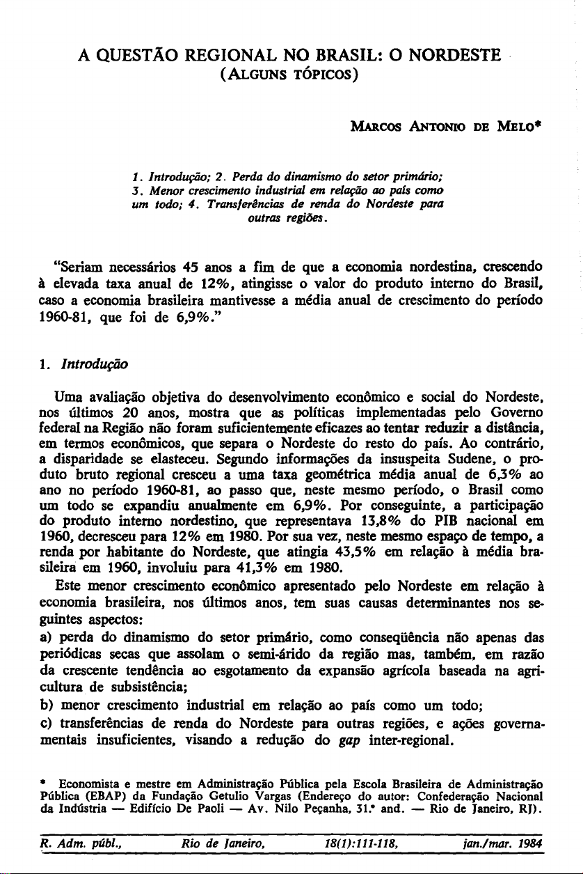 A QUESTÃO REGIONAL NO BRASIL: O NORDESTE