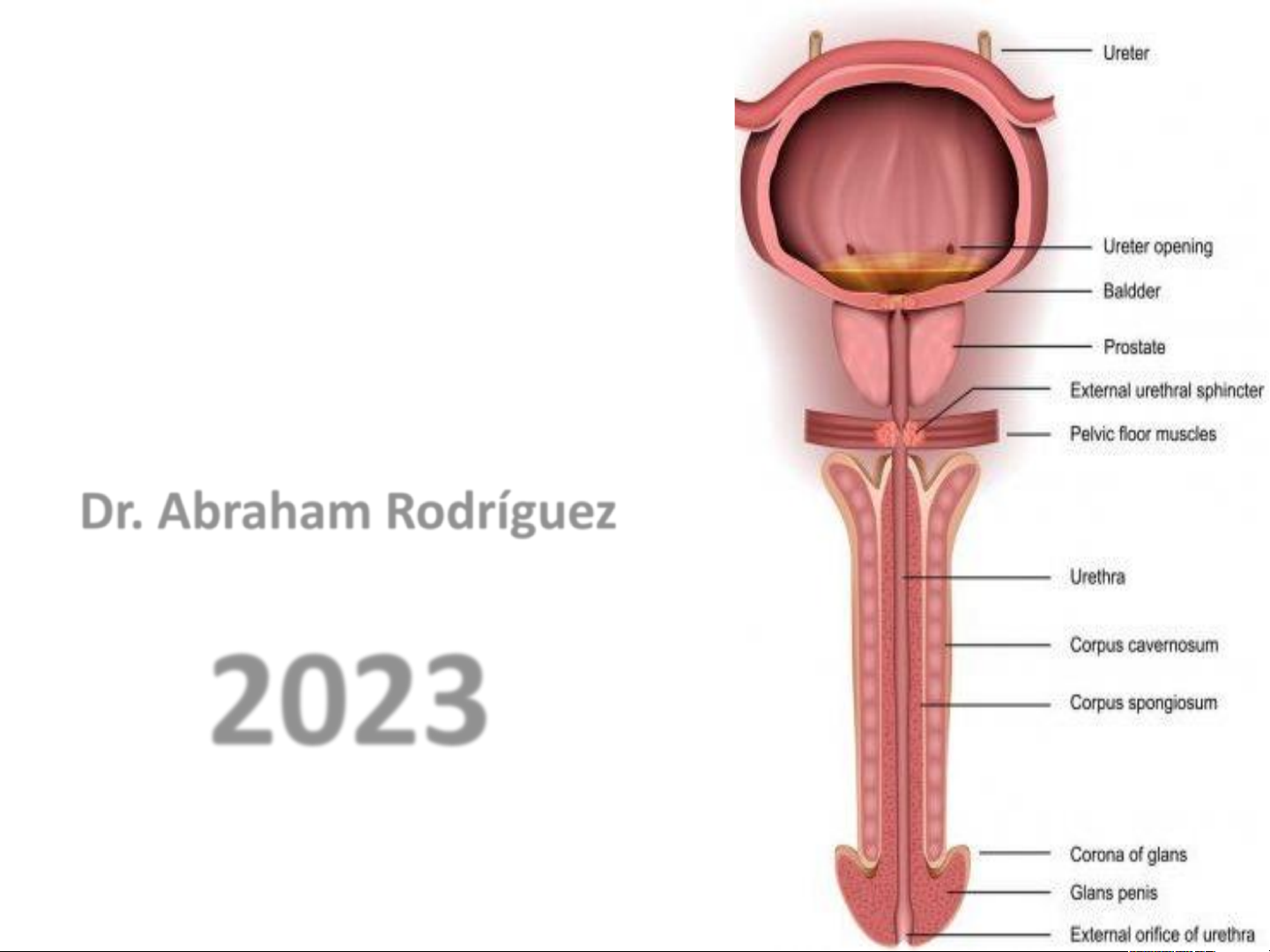PENE Dr. Abraham Rodríguez 2023 ANATOMIA • EXTREMO DISTAL - GLANDE - SURCO BALANO-PREPUCIAL - PREPUCIO • CUERPO O PORCIÓN MEDIA • RAIZ O PORCIÓN PROXIMAL • GLANDE ▫ Epitelio plano estratificado queratinizado o no ▫ Lámina propia ▫ Cuerpo esponjoso ▫ Túnica albugínea ▫ Cuerpo cavernoso • SURCO BALANOPREPUCIAL ▫ Epitelio idéntico al glande ▫ Lámina propia • PREPUCIO ▫ Mucosa similar al glande ▫ Lámina propia ▫ Músculo dartos ▫ Dermis ▫ Epidermis • CUERPO ▫ Piel fina arrugada ▫ Dermis ▫ Musculo dartos ▫ Tejido adiposo ▫ Fascia de Buck con numerosos vasos y nervios ▫ Túnica albugínea ▫ Cuerpos cavernosos ▫ Cuerpo esponjoso con la uretra MALFORMACIONES ANOMALÍAS CONGÉNITAS •Hipospadias y epispadias •Fimosis HIPOSPADIAS Y EPISPADIAS •Malformaciones del surco uretral y del conducto uretral que crean unos orificios anormales en la superficie ventral del pene (hipospadias) en la superficie dorsal (epispadias). •De las dos el hipospadias es más común. •Riesgo de infecciones ascendentes y posibles causas de esterilidad. Alteraciones congénitas • Malformaciones en el surco uretral: • Hipospadias • Epispadias Fimosis: Orificio prepucial pequeño Epispadias Hipospadias Hipospadia: Se clasifica por la localización de la apertura (meatus) • A Anterior – superficie inferior del glande del pene. • B Coronal – surco balanoprepucial. • C Distal – tercio distal del eje. • D Penescrotal – en la base del eje delante del escroto. • E Scrotal – en el escroto entre los testiculos. • F Perineal – detrás del escroto o testiculos. FIMOSIS • El orificio del prepucio es demasiado pequeño para su retracción normal. • Debido a desarrollo anómalo, pero más frecuente a causa de infecciones repetidas. • Interfiere con la limpieza, acumulación de detritus, infecciones secundarias y POSIBLE CARCINOMA. INFLAMACIONES • Balanitis y Balanopostitis • Afectan de modo invariable al glande y al prepucio. • Balanopostitis. Candida albicans, bacterias anaerobias, Gardnerella y bacterias piógenas. • Mala higiene – Esmegma – Cicatrización - Fimosis INFLAMACIONES Y PATOLOGÍAS ASOCIADAS Enfermedades específicas: sífilis (T. pallidum), gonorrea (N. gonorrhoeae), chancroide (H. ducreyi), granuloma inguinal (K. granulomatis), herpes (HSV-2). Enfermedades inespecíficas: Balanopostitis crónica. Bacterias en general (Garnerella sp.) Candida albicans PATOLOGÍAS ASOCIADAS A INFLAMACIONES •Engrosamiento fibroso de la dermis y la fascia de Buck entre los cuerpos cavernosos y la túnica albugínea, lo que provoca una curvatura hacia el lado de la lesión y restringe el movimiento de estas estructuras durante la erección •Proliferación de fibroblastos y miofibroblastos en o alrededor de la túnica albugínea del pene, con mayor frecuencia en la cara dorsal, que puede dar lugar a placas con curvatura del pene hacia la placa. •Desorganización del colágeno de la túnica albugínea con formación de nódulos, a menudo fibrosis hialinizante Enfermedad de Peyronie Equivalente masculino del liquen escleroso y atrófico de la vulva Liquen escleroso Condición inflamatoria crónica mucocutánea Etiología desconocida Máculas y placas blanquecinas Cambios escleróticos Liquen escleroso (balanitis xerótica obliterante) PATOLOGÍAS ASOCIADAS A INFLAMACIONES Tumores primarios del Pene Benignos • Condiloma acuminado • Condiloma gigante Malignos (OMS) • Relacionados con HPV • No relacionados con el HPV Lesiones precancerosas (PEiN) • Relacionados con HPV • No relacionados con el HPV LESIONES EPITELIALES BENIGNAS Condiloma acuminado Proliferación papilomatosa benigna relacionada al VPH (6 – 11) Pueden regresar espontáneamente Pueden reaparecer post tratamiento en 40-70% Transformación maligna se ha reportado de manera rarísima LESIONES EPITELIALES BENIGNAS Condiloma gigante Mayor edad en condiloma acuminado Masas tipo grandes tipo coliflor Aspecto histológico similar al condiloma acuminado, papilomatosis es particularmente exuberante Puede asociarse a carcinoma Tumor de Buschke- Löwenstein LESIONES PREMALIGNAS •No relacionadas al HPV (p16 negativo) • Lesiones diferenciadas → D-PeIN (relacionadas a liquen escleroso) •Relacionadas al HPV (p16 positivo) Las lesiones se pueden subclasificar según las características morfológicas y los genotipos de VPH presentes • LIE de alto grado → PeIN (Neoplasia intraepitelial peneana) • B-PeIN: basaloide • W-PeIN: Warty (condilomatosa) • WB-PeIN: Warty-basaloide • Otras: Pagetoide, células claras. Las lesiones precursoras ya sean o no asociadas a HPV “NO SE GRADAN”, a todas se las consideran de alto grado (Ultima clasificación de OMS) D-PeIN • No relacionada al HPV (p16 -) • Liquen escleroso Ki-67 ↑ B-PeIN • Relacionadas al HPV, + Jóvenes, Condiloma? W-PeIN FORMAS CLÍNICAS ESPECIALES • ERITROPLASIA DE QUEYRAT • ENF. DE BOWEN DEL PENE • PAPULOSIS DE BOWENOIDE ENFERMEDAD DE BOWEN – ERITROPLASIA DE QUEYRAT - Representan un CIS epidermoide. - Usualmente en individuos mayores. - Se asocian a carcinoma invasor en un 5%. - 5 – 10% progresan a carcinoma invasor. Las diferencias entre una y otra resultan de variaciones anatómicas en el área: EQ cuando se localiza en el glande EB cuando se localiza en la piel del cuerpo. - Deben ser consideradas una entidad en cuanto al pronóstico y tratamiento. ERITROPLASIA DE QUEYRAT ENFERMEDAD DE BOWEN ENFERMEDAD DE BOWEN – ERITROPLASIA DE QUEYRAT HISTOLOGÍA - Alteración de todo el espesor del epitelio. Núcleos hipercromáticos agrandados. Células multinucleadas. - Disqueratosis. Vacuolización. Acantosis y paraqueratosis. - Numerosas mitosis típicas y atípicas. - Inflamación crónica y proliferación vascular en estroma subyacente. paraqueratosis disqueratosis acantosis hiperqueratosis vacuolización • Histológicamente estas lesiones escamosas intraepiteliales pueden cl