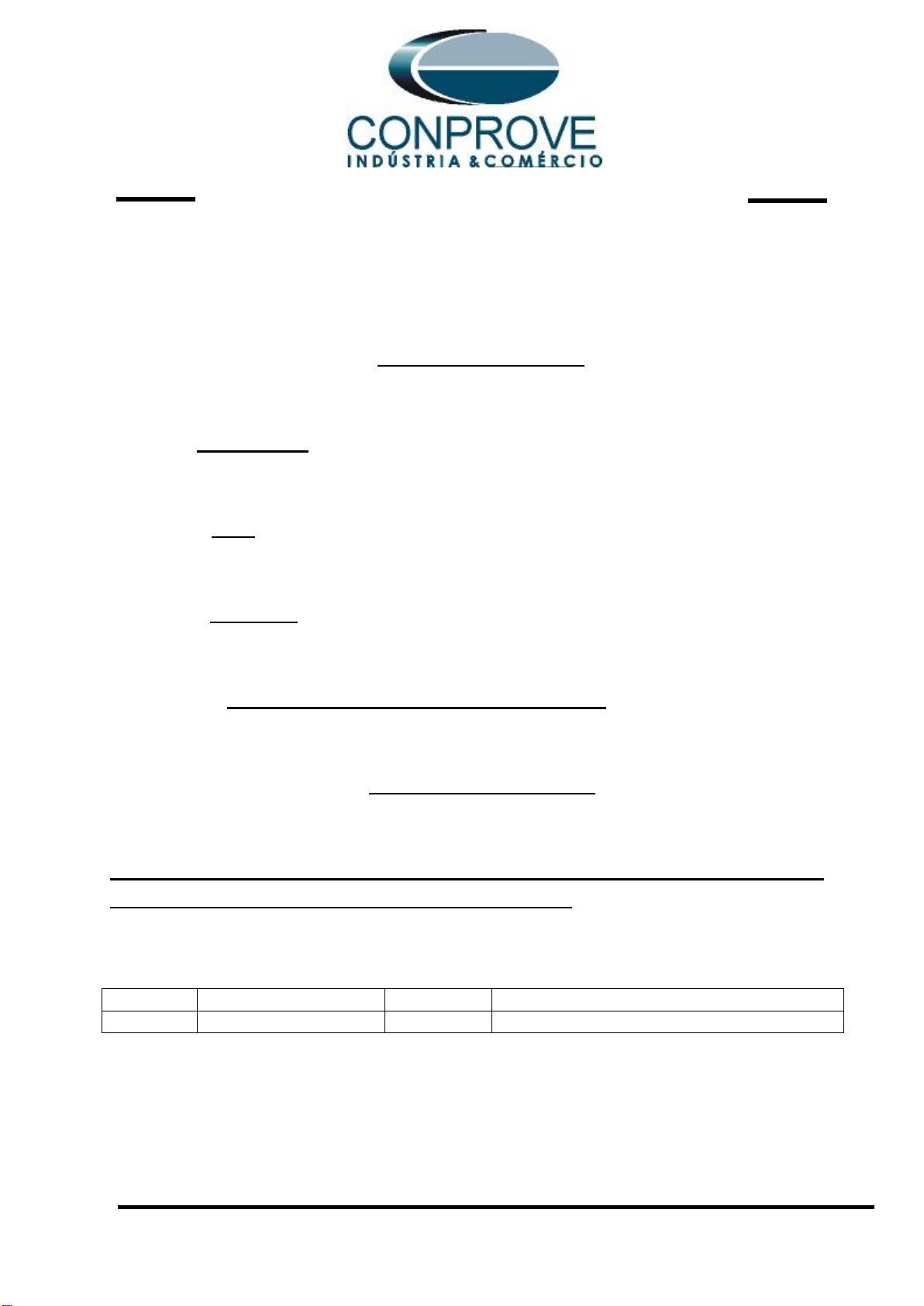 INSTRUMENTOS PARA TESTES ELÉTRICOS Rua Visconde de Ouro Preto, 77 - Bairro Custódio Pereira - Uberlândia – MG - CEP 38405-202 Fone (34) 3218-6800 Fax (34) 3218-6810 Home Page: www.conprove.com.br - E-mail: conprove@conprove.com.br 1 Tutorial de Teste Tipo de Equipamento: Software SFT2841 Marca: Schneider Modelo: T87 Família: SEPAM Funções: Obtenção de arquivo COMTRADE Ferramenta Utilizada: CE-6006 & CE-6003 Objetivo: Objetivo: Buscar as oscilografias de faltas registradas pelos relés utilizando o software SFT2841 Controle de Versão: Versão Descrições Data Autor 1.3 Versão inicial 14/04/2014 M.R.C. INSTRUMENTOS PARA TESTES ELÉTRICOS Rua Visconde de Ouro Preto, 77 - Bairro Custódio Pereira - Uberlândia – MG - CEP 38405-202 Fone (34) 3218-6800 Fax (34) 3218-6810 Home Page: www.conprove.com.br - E-mail: conprove@conprove.com.br 2 Sumário 1. Conexão do relé ao CE-6006 ................................................................................................... 4 1.1 Fonte Auxiliar ...................................................................................................................... 4 1.2 Bobinas de Corrente ............................................................................................................. 4 1.3 Entradas Binárias .................................................................................................................. 5 2. Comunicação com o relé SEPAM T87 .................................................................................... 5 3. Parametrização do relé SEPAM_T87 ...................................................................................... 7 3.1 Características iniciais .......................................................................................................... 7 3.2 Sensores de Tc’s e Tp’s ........................................................................................................ 9 3.3 Supervisão Tc’s e Tp’s ......................................................................................................... 9 3.4 Características Particulares ................................................................................................ 10 3.5 Controle lógico ................................................................................................................... 10 3.6 Lógicas I/O s ...................................................................................................................... 11 3.7 NomOglet_ConfSepam_Gooses ........................................................................................ 11 3.8 50/51: Sobrecorrente de Fase ............................................................................................. 12 3.9 Matrix ................................................................................................................................. 13 4. Função Oscilografia ............................................................................................................... 15 5. Oscilografia ............................................................................................................................ 16 APÊNDICE A ............................................................................................................................... 18 A.1 Designações de terminais ....................................................................................................... 18 INSTRUMENTOS PARA TESTES ELÉTRICOS Rua Visconde de Ouro Preto, 77 - Bairro Custódio Pereira - Uberlândia – MG - CEP 38405-202 Fone (34) 3218-6800 Fax (34) 3218-6810 Home Page: www.conprove.com.br - E-mail: conprove@conprove.com.br 3 Termo de Responsabilidade As informações contidas nesse tutorial são constantemente verificadas. Entretanto, diferenças na descrição não podem ser completamente excluídas; desta forma, a CONPROVE se exime de qualquer responsabilidade, quanto a erros ou omissões contidos nas informações transmitidas. Sugestões para aperfeiçoamento desse material são bem vindas, bastando o usuário entrar em contato através do email suporte@conprove.com.br. O tutorial contém conhecimentos obtidos dos recursos e dados técnicos no momento em que foi escrito. Portanto a CONPROVE reserva-se o direito de executar alterações nesse documento sem aviso prévio. Este documento tem como objetivo ser apenas um guia, o manual do equipamento a ser testado deve ser sempre consultado. ATENÇÃO! O equipamento gera valores de correntes e tensões elevadas durante sua operação. O uso indevido do equipamento pode acarretar em danos materiais e físicos. Somente pessoas com qualificação adequada devem manusear o instrumento. Observa-se que o usuário deve possuir treinamento satisfatório quanto aos procedimentos de manutenção, um bom conhecimento do equipamento a ser testado e ainda estar ciente das normas e regulamentos de segurança. Copyright Copyright © CONPROVE. Todos os direitos reservados. A divulgação, reprodução total ou parcial do seu conteúdo, não está autorizada, a não ser que sejam expressamente permitidos. As violações são passíveis de sansões por leis. mailto:suporte@conprove.com.br INSTRUMENTOS PARA TESTES ELÉTRICOS Rua Visconde de Ouro Preto, 77 - Bairro Custódio Pereira - Uberlândia – MG - CEP 38405-202 Fone (34) 3218-6800 Fax (34) 3218-6810 Home Page: www.conprove.com.br - E-mail: conprove@conprove.com.br 4 Obtenção de oscilografia do relé Schneider T87 1. Conexão do relé ao CE-6006 No apêndice A-1 mostram-se as designações dos terminais do relé. 1.1 Fonte Auxiliar Ligue o positivo (borne vermelho) da Fonte Aux. Vdc ao pino 1 do módulo A do relé e o negativo (borne preto) da Fonte Aux Vdc ao pino 2 do módulo A do relé. Figura 1 1.2 Bobinas de Corrente Para estabelecer a conexão das bobinas de corrente, ligue os canais de corrente I1, I2 e I3 aos pinos 4, 5 e 6 do módulo B1 (Apêndice A) do relé e conecte os comuns 