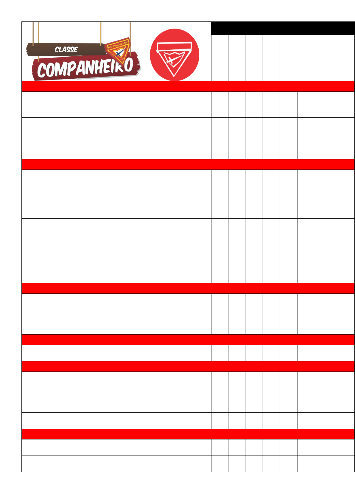 DESBRAVADOR Geral 1 – Ter, no mínimo, 11 anos de idade. 2 – Ser membro ativo do Clube de Desbravadores. 3 – Ilustrar de forma criativa o significado do Voto do Desbravador. 4 – Ler o livro do Clube de Leitura do ano em curso e escrever dois parágrafos sobre o que mais lhe chamou atenção ou considerou importante. 5 – Ler o livro Caminho a Cristo. 6 – Participar ativamente da Classe Bíblica do seu Clube. II. Descoberta Espiritual 1 – Memorizar e demonstrar o seu conhecimento: A) 10 Mandamentos: A) Lei de Deus dada a Moisés; B) 27 livros do Novo Testamento e demonstrar habilidade para encontrar qualquer um deles. 2 – Ler e Explicar os versos: A) Isaías 41: 9-10; B) Hebreus 13:5; C) Provérbios 22:6; D) João 1:9, Salmo 8. 3 – Leitura bíblica 4 – Em consulta com seu conselheiro, escolher um dos seguintes temas: A) Uma parábola de Jesus; B) Um milagre de Jesus; C) O Sermão da Montanha; D) Um sermão sobre a Segunda Vinda de Cristo. *Escolher um item abaixo para demonstrar seu conhecimento sobre o tema escolhido: A) Troca de ideias com o seu conselheiro; B) Atividade que integre todo o grupo; C) Redação. III. Servindo a Outros 1 – Planejar e dedicar, pelo menos, duas horas servindo sua comunidade e demonstrando companheirismo a alguém, de maneira prática. 2 – Participar de um projeto que beneficiará sua comunidade ou igreja. IV. Desenvolvendo Amizade 1 – Conversar com seu Conselheiro ou Unidade sobre como respeitar pessoas de diferentes culturas, raça e sexo. V. Saúde e Aptidão Física 1 – Memorizar e explicar I Coríntios 9:24-27. 2 – Conversar com seu líder sobre aptidão física e os exercícios físicos regulares que se relacionam com uma vida saudável. 3 – Aprender sobre os prejuízos que o cigarro causa à saúde e escrever seu compromisso de não fazer uso do fumo. 4 – Completar uma das seguintes especialidades: A) Natação Principiante II; B) Acampamento II. VI. Organização e Liderança 1 – Dirigir ou colaborar em uma meditação criativa para sua unidade ou Clube. 2 – Ajudar no planejamento de uma excursão ou acampamento com sua unidade ou clube, envolvendo pelo menos um pernoite. VII. Estudo da Natureza 1 – Participar de jogos na natureza ou caminhada ecológica, pelo período de uma hora. 2 – Completar duas das seguintes especialidades: A) Anfíbios; B) Aves; C) Aves domésticas; D) Pecuária; E) Repteis; F) Conchas e moluscos; G) Arvores; H) Arbustos. 3 – Recapitular o estudo da Criação e fazer um diário por sete dias registrando suas observações do que foi criado em cada dia correspondente. VIII. Arte de Acampar 1 – Descobrir os pontos cardeais sem a ajuda de uma bússola e desenhar a Rosa dos Ventos. 2 – Participar de um acampamento de final de semana e fazer um relatório destacando o que mais lhe impressionou positivamente. 3 – Aprender ou recapitular os seguintes nós: A) Oito; B) Volta do Salteador; C) Duplo; D) Caminhoneiro; E) Direito; F) Volta do Fiel; G) Escota; H) Lais de Guia; I) Simples. IX. Estilo de Vida 1 – Completar uma especialidade não realizada anteriormente na seção de Artes e Habilidades Manuais. Classe Avançada – Companheiro de Excursionista 1 – Aprender e demonstrar a composição, significado e uso correto da Bandeira Nacional. 2 – Ler a primeira visão de Ellen White e discutir como Deus usa os profetas para apresentar Sua mensagem à igreja (ver Primeiros Escritos, págs. 13 à 20). 3 – Participar de uma atividade missionária ou comunitária, envolvendo também um amigo. 4 – Conversar com seu conselheiro ou unidade sobre como demonstrar respeito pelos seus pais ou responsáveis e fazer uma lista mostrando cuidam de você. 5 – Participar de uma caminhada de 6 quilômetros, preparando, ao final, um relatório de uma página. 6 – Escolher um dos seguintes itens: A) Assistir a um “Curso como deixar de fumar”; B) Assistir a dois filmes sobre saúde; C) Elaborar um cartaz sobre o prejuízo das drogas; D) Ajudar a preparar material para uma exposição ou passeata sobre saúde; E) Pesquisar na internet informações sobre saúde e escrever uma página sobre os resultados encontrados. 7 – Identificar e descrever 12 pássaros e 12 arvores nativas. 8 – Participar de uma das seguintes cerimônias e sugerir ideias criativas e como realiza-las: A) Investidura; B) Admissão em lenço; C) Dia dos Desbravadores. 9 – Preparar uma refeição em uma fogueira durante um acampamento do clube ou unidade. 10 – Preparar um quadro com 15 nós diferentes. 11 – Completar a especialidade de Excursionismo Pedestre com Mochila. 12 – Completar uma especialidade não realizada anteriormente: A) Habilidades Domésticas; B) Ciência e Saúde; C) Atividades Missionárias; D) Atividades Agrícolas. image1.png image2.png