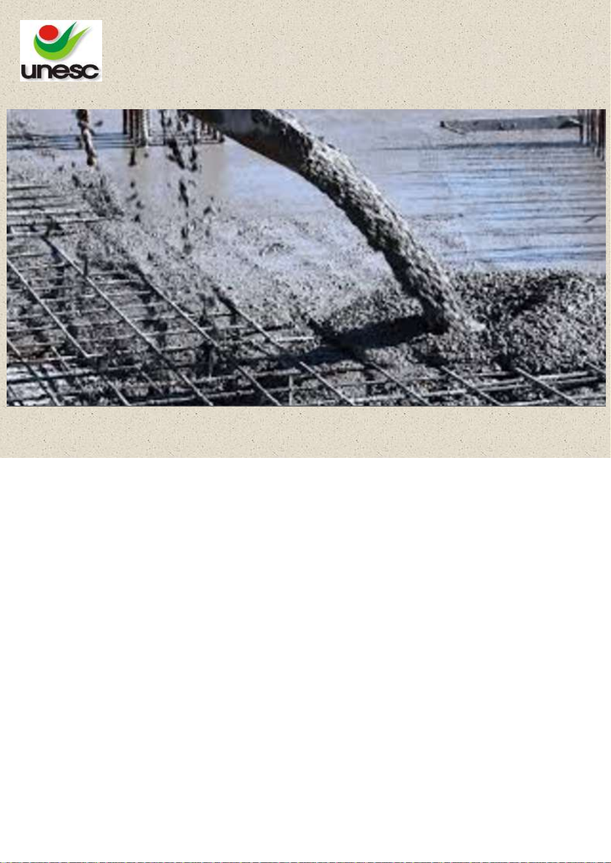 UNIVERSIDADE DO EXTREMO SUL CATARINENSE Departamento de Arquitetura e Urbanismo CONCRETO Profa. Kamila Rodrigues da Silva Engenharia Civil UNIVERSIDADE DO EXTREMO SUL CATARINENSE Departamento de Arquitetura e Urbanismo O concreto é material construtivo amplamente disseminado. Podemos encontrá-lo em nossas casas de alvenaria, em rodovias, em pontes, nos edifícios mais altos do mundo, em torres de resfriamento, em usinas hidrelétricas e nucleares, em obras de saneamento, até em plataformas de extração petrolífera móveis. UNIVERSIDADE DO EXTREMO SUL CATARINENSE Departamento de Arquitetura e Urbanismo Estima-se que anualmente são consumidas 11 bilhões de toneladas de concreto, o que dá, aproximadamente, um consumo médio de 1,9 tonelada de concreto por habitante por ano, valor inferior apenas ao consumo de água. No Brasil, o concreto que sai de centrais dosadoras gira em torno de 30 milhões de metros cúbicos. UNIVERSIDADE DO EXTREMO SUL CATARINENSE Departamento de Arquitetura e Urbanismo POR QUE O CONCRETO É TÃO LARGAMENTE EMPREGADO? • concreto é uma pedra artificial que se molda à inventividade construtiva do homem; • material que, depois de endurecido, tem resistência similar às das rochas naturais; • quando no estado fresco, é composto plástico: possibilita sua modelagem em formas e tamanhos os mais variados; UNIVERSIDADE DO EXTREMO SUL CATARINENSE Departamento de Arquitetura e Urbanismo POR QUE O CONCRETO É TÃO LARGAMENTE EMPREGADO? Duas propriedades do concreto que o destacam como material construtivo são: • sua resistência à água – diferentemente do aço e da madeira, o concreto sofre menor deterioração quando exposto à água, razão de sua utilização em estruturas de controle, armazenamento e transporte de água; UNIVERSIDADE DO EXTREMO SUL CATARINENSE Departamento de Arquitetura e Urbanismo POR QUE O CONCRETO É TÃO LARGAMENTE EMPREGADO? • plasticidade – que possibilita obter formas construtivas inusitadas, como se vê nas obras arquitetônicas de Niemayer. UNIVERSIDADE DO EXTREMO SUL CATARINENSE Departamento de Arquitetura e Urbanismo CONCEITOS FUNDAMENTAIS O concreto simples é um material composto por água, cimento e agregados. Associando esses materiais entre si, resulta: • Pasta: cimento + água; •Argamassa: pasta + agregado miúdo; • Concreto: argamassa + agregado graúdo; UNIVERSIDADE DO EXTREMO SUL CATARINENSE Departamento de Arquitetura e Urbanismo Caracteriza-se por sua razoável resistência à compressão, geralmente de 20 a 40 Mpa, e reduzida resistência à tração, geralmente menor que 1/10 de sua resistência à compressão. UNIVERSIDADE DO EXTREMO SUL CATARINENSE Departamento de Arquitetura e Urbanismo O concreto, em função de suas massas específicas, obtidas pelas diferentes dosagens da mistura – também chamadas de traços – temos três classes básicas de classificação: UNIVERSIDADE DO EXTREMO SUL CATARINENSE Departamento de Arquitetura e Urbanismo Concreto de densidade normal: Massa específica no intervalo de 2000 a 2800kg/m3 (comumente encontrado em obras em geral). UNIVERSIDADE DO EXTREMO SUL CATARINENSE Departamento de Arquitetura e Urbanismo Concreto leve: Densidade abaixo do intervalo estabelecido para o concreto normal, obtida com o uso de agregados com menor massa específica. UNIVERSIDADE DO EXTREMO SUL CATARINENSE Departamento de Arquitetura e Urbanismo Concreto pesado: Massa específica acima do intervalo estabelecido para o concreto normal, devido ao uso de agregados de alta densidade (usado em blindagem contra radiação). UNIVERSIDADE DO EXTREMO SUL CATARINENSE Departamento de Arquitetura e Urbanismo Os concretos podem também ser classificados em relação à sua resistência à compressão aos 28 dias, conforme a ABNT NBR 8953: UNIVERSIDADE DO EXTREMO SUL CATARINENSE Departamento de Arquitetura e Urbanismo • Concreto de baixa resistência: menos de 20MPa (não adequado à finalidade estrutural, segundo a NBR 6118) • Concreto de resistência normal: de 20 a 50MPa • Concreto de alta resistência: mais de 50MPa UNIVERSIDADE DO EXTREMO SUL CATARINENSE Departamento de Arquitetura e Urbanismo TPOS DE CONCRETO: Concreto Comum: Resistências até 60 MPa; Concreto de Alto Desempenho (CAD): Resistências entre 60 e 120 MPa. Concreto de Ultra-Alto-Desempenho (CAUD): Resistências que podem variar entre 200 e 800 MPa ! UNIVERSIDADE DO EXTREMO SUL CATARINENSE Departamento de Arquitetura e Urbanismo •Agregado Miúdo: Areias • Agregado Graúdo: Pedras ou Britas AGREGADOS Material Inerte quimicamente, compondo a peça de concreto. UNIVERSIDADE DO EXTREMO SUL CATARINENSE Departamento de Arquitetura e Urbanismo Agregado Miúdo é a areia natural quartzosa ou a artificial, obtida do britamento de rochas estáveis. Seu diâmetro máximo é de 4,8 mm. Agregado Graúdo é o pedregulho natural ou a pedra britada oriunda do britamento de rochas estáveis (graníticas, por exemplo). Seu diâmetro característico é superior a 4,8 mm. UNIVERSIDADE DO EXTREMO SUL CATARINENSE Departamento de Arquitetura e Urbanismo CONCEITO DE CONCRETO E TIPOS: Concreto Fresco Deve ter uma trabalhabilidade adequada às condições de utilização, definidas pelo transporte, lançamento e adensamento. As principais propriedades do concreto fresco são a consistência, a trabalhabilidade e a homogeneidade. UNIVERSIDADE DO EXTREMO SUL CATARINENSE Departamento de Arquitetura e Urbanismo CONSISTÊNCIA • Maior ou menor capacidade que o concreto fresco tem de se deformar; • está relacionada ao processo de transporte, lançamento e adensamento do concreto; • depende da quantidade de água empregada, granulometria dos agregados e pela presença de produtos químicos específicos. UNIVERSIDADE DO EXTREMO SUL CATARINENSE Departamento de Arquitetura e Urbanismo • ensaio de abatimento conhecido como Slump Test. Na elaboração do ensaio primeiramente molha-se o cone e chapa metálica sob o mesmo, após enche-se o cone co