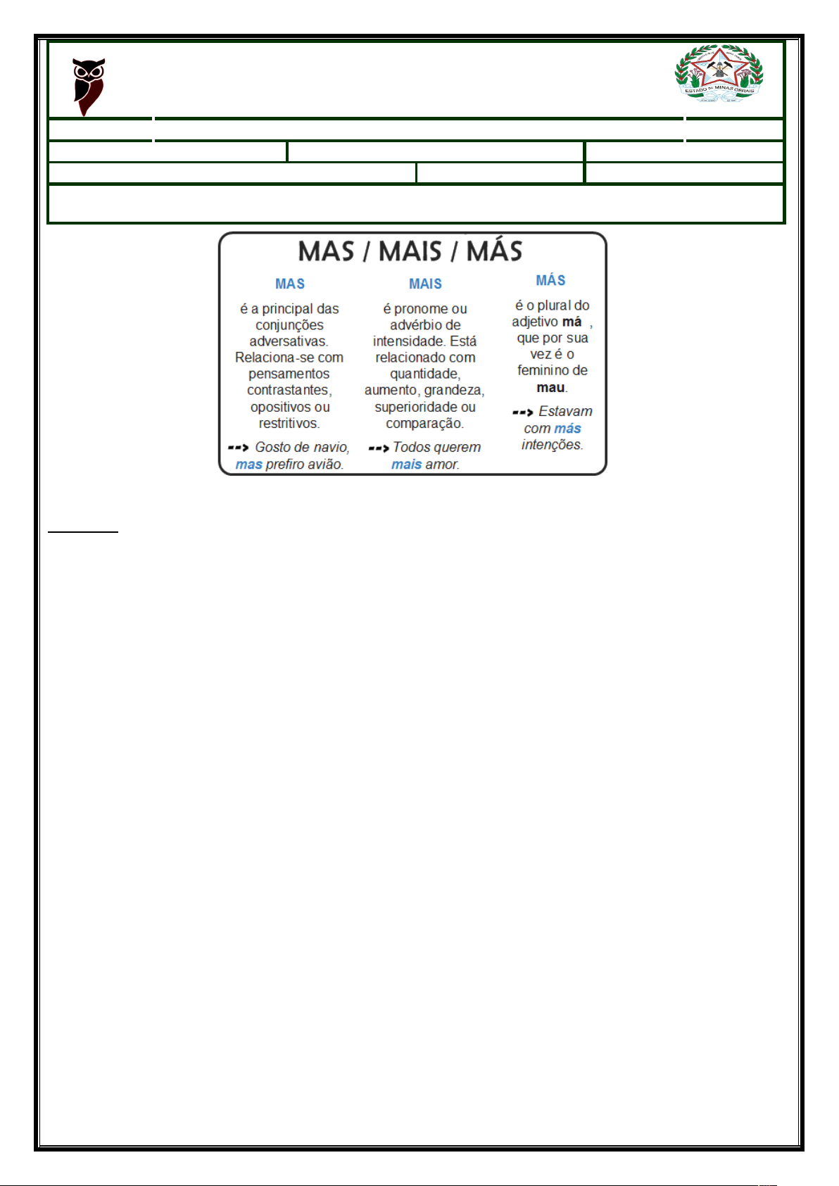 SECRETARIA DE ESTADO DE EDUCAÇÃO DE MINAS GERAIS ESCOLA ESTADUAL CARLOS DRUMMOD DE ANDRADE ATP– Agrupamento Temporário Produtivo Atividade: Professor: Charles Mendes Disc.: Língua portuguesa Aluno: Turma: 203 Data: 14/12/2023 Habilidade: Consiste em: Comparar comprimentos, capacidades ou massas, utilizando termos como mais alto, mais baixo, mais comprido, mais curto, . Atividade 1. Complete as frases abaixo usando, mas ou mais. image1.png image2.png image3.png image4.png