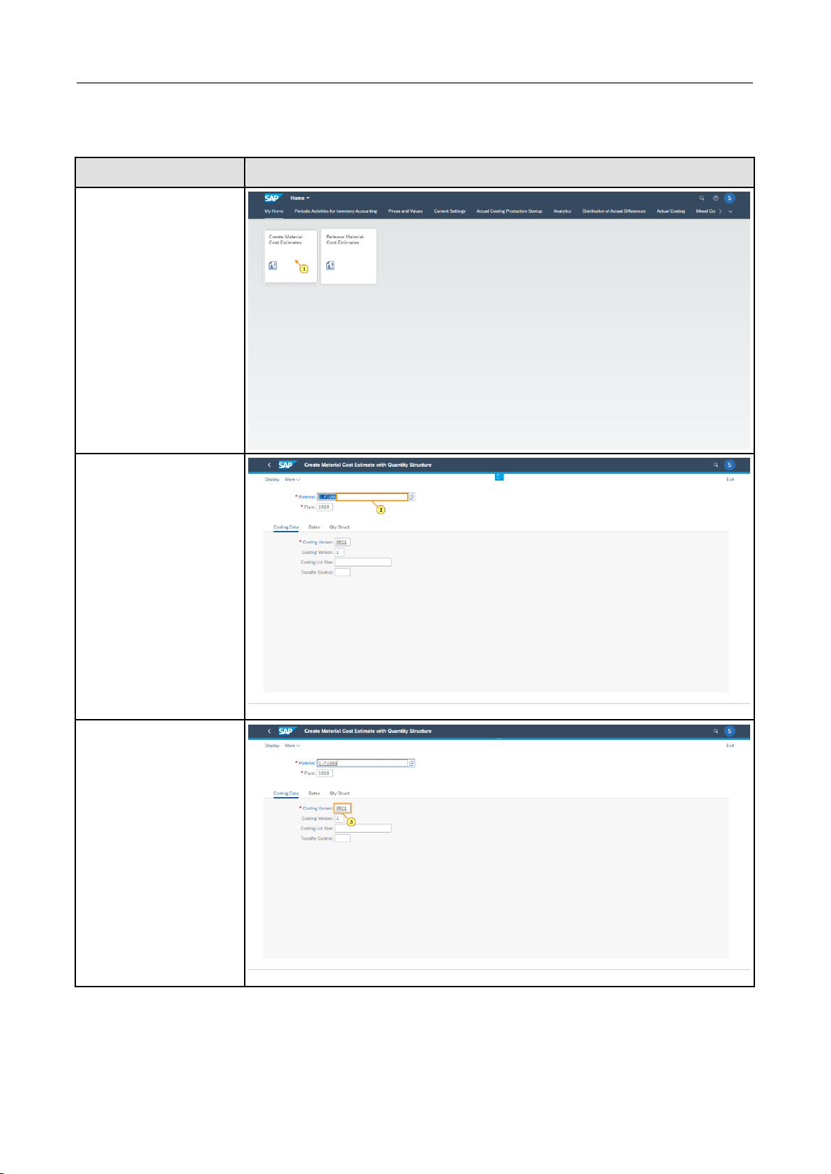 Create Material Cost Estimate 1 Create Material Cost Estimate Explanation Screenshot 1. Choose here. 2. Choose. 3. Choose. Create Material Cost Estimate 2 Explanation Screenshot 4. Choose. 5. Choose. 6. Choose. Create Material Cost Estimate 3 Explanation Screenshot 7. Choose. 8. Clear the field. Confirm your entry by pressing the Enter key. 9. Choose. Create Material Cost Estimate 4 Explanation Screenshot 10. Choose. 11. Scroll Mouse wheel up to bring the screen to desired location 12. Choose. Create Material Cost Estimate 5 Explanation Screenshot 13. Choose.