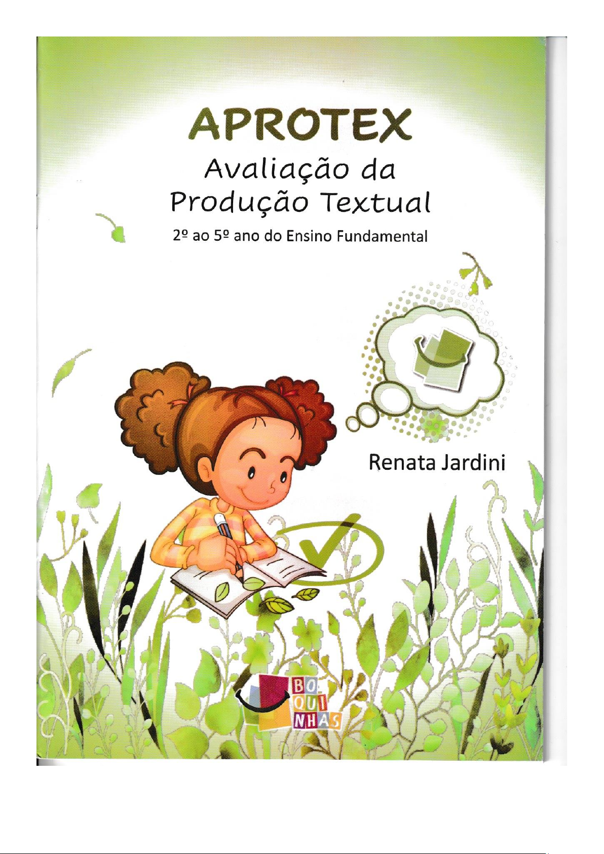 APROTEX Avaliação da Produção Textual ao ano do Ensino Fundamental Renata Jardini QUI NHASAPROTEX Avaliação da Produção Textual 2° ao 5° ano do EF Renata Jardini AVALIAÇÃO DA PRODUÇÃO TEXTUAL APROTEX INTRODUÇÃO A produção escrita no Brasil Nas duas últimas décadas vem aumentando rol de pesquisas que, dentre as práticas de linguagem, abordam a produção textual na escola (RUIZ, 2001; BRANDÃO E SPINILLO, 2001; FUZA E MENEGASSI, 2012; GASPAROTTO, 2014; STEVANATO E SHIMAZAKI, 2021). Tais estudos fomentam discussões, tanto no meio acadêmico como no interior das salas de aula, no sentido de identificar principais entraves e dificuldades enfrentados por professores e alunos bem como, apontam caminhos para se pensar em metodologias e estratégias que facilitem processo de ensino e de aprendizagem da escrita de textos. Documentos oficiais como, Parâmetros Curriculares Nacionais (PCNs) (BRASIL, 1997) e a Base Nacional Comum Curricular (BNCC) (BRASIL, 2017) vêm dando suporte às pesquisas nacionais, apontando para ensino de produção de texto que considere as etapas de escrita, gêneros textuais, a finalidade e interlocutor (STEVANATO E SHIMAZAKI, 2021, p. 265). Esses documentos assumem a perspectiva enunciativo-discursiva de linguagem, entendendo-a como uma atividade humana, mediada pela prática social (BRASIL, 2017, 61). E, analisado por esse prisma, "aprender a produzir textos é uma tarefa complexa que requer do aluno desenvolvimento de competências específicas na área de linguagens, compreendendo-a como formas de significação da realidade e expressão de subjetividades e identidades sociais e culturais" (BRASIL, 2017, p. 63). Além disso, ter domínio de um conjunto de habilidades de uso da escrita e o conhecimento do sistema de escrita alfabética (SEA) da língua ou seja, indivíduo deve estar alfabetizado para que a produção textual reflita seu pensamento e caráter identitário. A BNCC, enquanto documento normativo, prevê as competências a serem atingidas pelos educandos nas diversas etapas escolares. Essas competências devem estar de tal forma articuladas para possibilitarem desenvolvimento de habilidades e aprofundamento dos conhecimentos nos usos da língua oral e escrita, que se organizam em quatro eixos integrados: oralidade, leitura, produção Todas as dados, conteúdo e materiais que compõe "Método das Boquinhas" integram patrimônio intelectual da empresa Boquinhas Aprendizagem e Assessoria regularmente protegidos e resguardados pelo ordenamento jurídico nacional internacional, possuindo ainda registro de direito autoral respaldado pelas regras que vedam a concorrência sendo terminantemente proibida a sua reprodução, comercialização, disponibilização, publicação, adaptação qualquer outra forma de www.metododasboquinhas.com.br 9APROTEX Avaliação da Produção Textual 2° ao 5° ano do EF Renata Jardini OBJETIVOS DO APROTEX O objetivo primário do APROTEX é facilitar a mediação e o planejamento do ensino/aprendizagem da produção textual, de forma individualizada e coletiva, a partir do conhecimento do estágio em que se encontra o autor da produção. Não tem a intenção de atender todas as necessidades de aprendizado para uma produção textual, mas de facilitar e agilizar a compreensão do professor em relação às falhas apresentadas, podendo mediá-las para que propicie avanços significativos. Como objetivo secundário, espera-se que APROTEX possa auxiliar os professores do Ensino Fundamental, anos iniciais, a usarem da linguagem escrita para promover abertura na mente de suas crianças, preparando-as e capacitando- as desde cedo para o surgimento de cidadãos conscientes e satisfeitos de sua bagagem linguística que inclua produções textuais autônomas a lhe conferirem um caráter identitário. Atualmente o APROTEX encontra-se em fase de validação e, passará a compor um modelo de resposta à intervenção do Mapa de Ideias (RTI-MI), atualmente aplicado experimentalmente no Município de Balneário Pinhal/ RS, com alunos do 4° ao 5° ano do Ensino Fundamental, pela Multiplicadora de Boquinhas, Andrea Liliane Campos e em algumas salas de e 3° anos do Município de Atibaia/SP, pela Multiplicadora de Boquinhas, Waleska Carvalheiro Del Neri. INDICAÇÃO DO APROTEX APROTEX foi idealizado para ser aplicado pelos professores, de maneira coletiva ou individualizada, em crianças do ao 5° ano do Ensino Fundamental. No entanto, indivíduos com mais idade e outras escolaridades podem se utilizar desse instrumento, como as salas de EJA, AEE e escolas especiais, uma vez que seus dados favorecerão planejamento e mediação do professor, independentemente da idade/escolaridade de seus alunos. Também seu uso clínico é indicado. Todas as informações, conteúdo materiais que compõe "Método das Boquinhas" integram patrimônio intelectual da empresa Boquinhas Aprendizagem e Assessoria Ltda, regularmente protegidos e resguardados pelo ordenamento jurídico nacional e possuindo ainda registro de direito autoral e respaldado pelas regras que vedam a concorrência sendo terminantemente proibida a sua reprodução, comercialização, disponibilização, publicação, adaptação ou, ainda, qualquer outra forma de exploração. www.metododasboquinhas.com.br 15APROTEX Avaliação da Produção Textual 2° ao 5° ano do EF Renata Jardini INSTRUÇÕES DE APLICAÇÃO DO APROTEX Você pode usar o APROTEX para uma análise pontual de uma única produção textual, de um único indivíduo, ou comparando-se alunos de uma sala, entre salas, escolas, conferindo uma avaliação diagnóstica, que pode ser usada na escola, ou como devolução aos pais, para melhor embasamento de seu planejamento. Mas o ideal é que seja utilizado como uma análise do processo em si, uma avaliação evolutiva, que tanto pode ser intra alunos e/ou entre alunos, e, para tal, a MESMA produção textual seja solicitada em três tempos de coleta, com intervalos