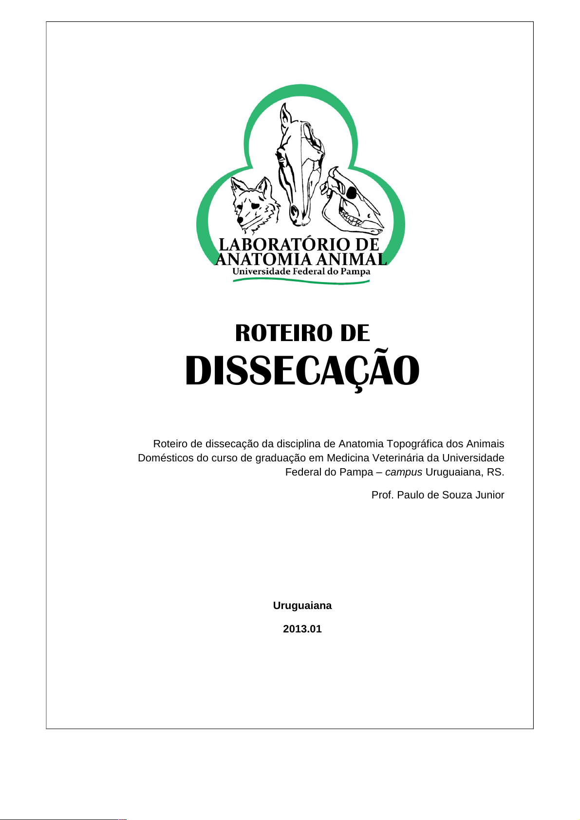 ROTEIRO DE DISSECAÇÃO Roteiro de dissecação da disciplina de Anatomia Topográfica dos Animais Domésticos do curso de graduação em Medicina Veterinária da Universidade Federal do Pampa – campus Uruguaiana, RS. Prof. Paulo de Souza Junior Uruguaiana 2013.01 2 Sumário 1. ROTEIRO PARA DISSECAÇÃO E ESTUDO DO MEMBRO TORÁCICO ..............4 1.1 Face Lateral do Ombro e Braço ............................................................................4 1.2 Axila ......................................................................................................................9 1.3 Face Medial do Braço..........................................................................................11 1.4 Antebraço e Mão .................................................................................................13 1.5 Revisão Geral do Membro Torácico....................................................................17 2. ROTEIRO PARA DISSECAÇÃO E ESTUDO DA CABEÇA E PESCOÇO............18 2.1 Face ....................................................................................................................18 2.2 Região Retrofaríngea ..........................................................................................21 2.3 Pescoço...............................................................................................................22 2.3.1 Face Lateral Do Pescoço .................................................................................22 2.3.2 Face Ventral do Pescoço .................................................................................23 3. ROTEIRO PARA DISSECAÇÃO E ESTUDO DO TRONCO.................................25 3.1 Parede Torácica e Músculos Epaxiais ................................................................25 4. ROTEIRO PARA DISSECAÇÃO E ESTUDO DO MEMBRO PÉLVICO................28 4.1 Face Lateral da Pelve .........................................................................................28 4.2 Face lateral da coxa ............................................................................................30 4.3 Face medial da coxa. ..........................................................................................32 4.4 Crura e pé. ..........................................................................................................34 5. ROTEIRO PARA DISSECAÇÃO E ESTUDO DA CAVIDADE TORÁCICA ...........38 6. ROTEIRO PARA DISSECAÇÃO E ESTUDO DA PAREDE E CAVIDADE ABDOMINAL .............................................................................................................42 7. REFERÊNCIAS BIBLIOGRÁFICAS ......................................................................47 3 LEIA COM ATENÇÃO ANTES DE COMEÇAR A DISSECAÇÃO: 1. Use sempre luvas! 2. Cuidado no manuseio de instrumental cortante! 3. Retire o cadáver da solução de formol um dia antes da dissecação e mantenha-o umedecido. Se a peça for de cão, coloque-o em uma caixa com água. Se for de ovino, coloque sobre uma maca e recubra com pano umedecido. Mantenha as extremidades (membros e cauda) sempre umedecidas mesmo durante a dissecação. 4. Ao término da atividade, limpe a bancada e o instrumental utilizado. Descarte o material pérfuro-cortante (agulhas, lâminas de bisturi) no local designado. 5. Anote todas as etapas da dissecação (cronologia) e ilustre com fotografias da peça preparada. Isto será importante para a confecção do relatório final. 6. A pele deve ser rebatida e a fáscia removida (com pinça dente-de-rato ou bisturi) até que a musculatura seja exposta e as fibras tenham suas direções identificadas. 7. Caso não vá manipular o cadáver por mais de 24h, suture a pele e devolva- o à solução de formol para conservação adequada. 8. Este guia é autoexplicativo desde que o aluno recorra às ilustrações dos atlas de anatomia e informações complementares dos livros textos para melhor entendimento. 4 1. ROTEIRO PARA DISSECAÇÃO E ESTUDO DO MEMBRO TORÁCICO 1.1 Face Lateral do Ombro e Braço 1.1.1 A dissecação começa com a retirada da pele, que deve ser demonstrada pelo instrutor. A remoção da pele deve ser feita cuidadosamente, a fim de se evitar cortar estruturas mais profundas. Faça uma incisão na pele sobre a linha mediana ventral, desde o terço médio do pescoço até a cicatriz umbilical (figura 1). Em seguida, faça mais três incisões perpendiculares àquela. Uma, a partir do ponto de origem da primeira incisão até a linha mediana dorsal, cruzando a região lateral do pescoço. Outra, da linha mediana ventral até a face medial da articulação do cotovelo, atravessando a axila. A terceira, começa na cicatriz umbilical e passa sobre a região abdominal lateral até a linha mediana dorsal. Remova a pele desde a linha mediana ventral até a linha mediana dorsal. Na altura do cotovelo, faça uma incisão contornando esta articulação. A pele do antebraço e da mão não será removida nesta fase. Figura 1. 5 1.1.2 Identifique, logo abaixo da pele, o m. cutâneo do tronco. Este é um músculo de forma laminar que se estende da face lateral do ombro até as faces laterais da pelve e da coxa, cobrindo o tórax e abdome (figura 2). Figura 2. 1.1.3 Proceda a limpeza (remoção das fáscias e gordura) de todos os músculos extrínsecos do membro torácico, permitindo a visualização dos mesmos. 1.1.4 Comece identificando os músculos peitorais. Estes músculos ocupam o espaço entre o esterno e a face medial do braço. De acordo com o sentido de suas fibras, podemos reconhecer o m. peitoral superficial e o m. peitoral profundo. Como o nome indica, o m. peitoral superficial cobre parcialmente o peitoral profundo. Reconheça as porções descendente e transversa do m. peitoral superficial. Em algumas peças, é necessário remover o tecido conjuntivo, predominantemente adiposo, que recobre estes músculos. 1.1.5 Neste item, deverão ser identificados, no sentido craniocaud