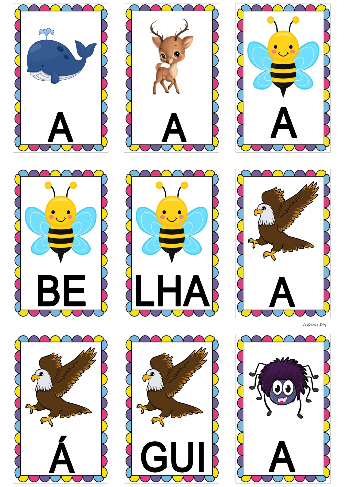 EMBARALHAR AS CARTAS E MONTAR AS PALAVRAS DE ACORDO COM AS IMAGENS E SÍLABAS. MEXE MEXE DOS ANIMAIS VOCÊ PODE INCENTIVAR UMA COMPETIÇÃO ENTRE OS ESTUDANTES PARA DESCOBRIR QUEM CONSEGUE MONTAR MAIS NOMES DOS ANIMAIS NA ORDEM CORRETA. PROFESSORA KELSY