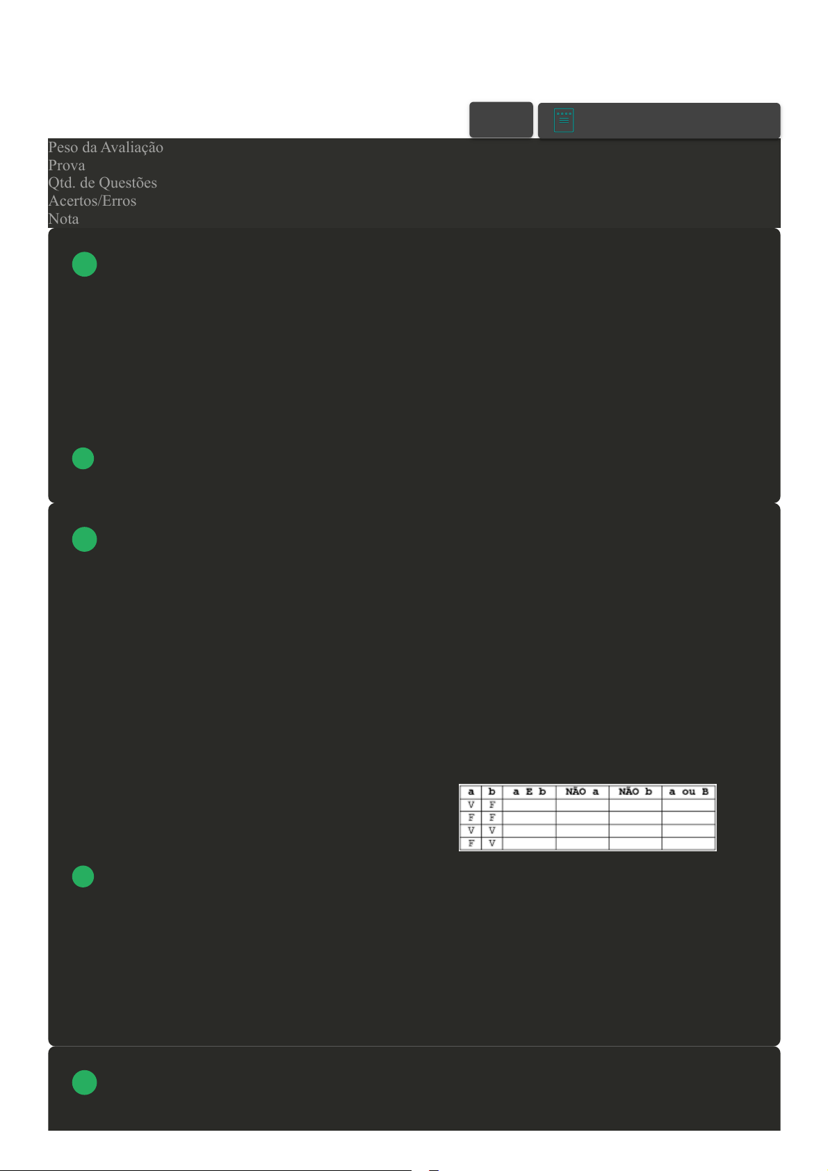 a tabela-verdade anexa, associe os itens, utilizando o código a seguir: