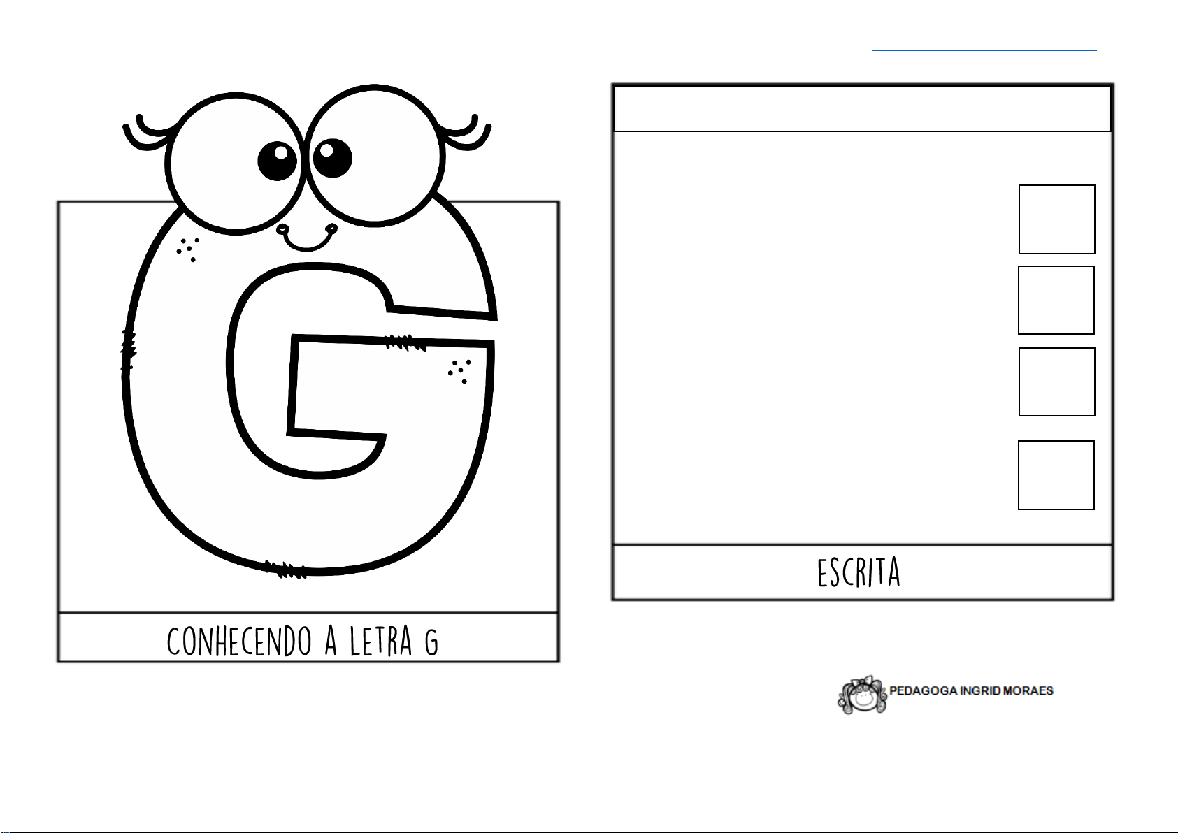 HORA DE MONTAR O SEU FLIPBOOK E APRENDER AINDA MAIS SOBRE A LETRINHA G. COLE P ED A G O G A .IN G R ID M O R A ES G-G-G-G G A LETRA G PODE SER ESCRITA DE 4 FORMAS. CUBRA AS LETRINHAS G E DEPOIS TREINE NO QUADRADO: g g-g-g-g g G g -g -g G-G-G https://pedagogaingrid.com https://pedagogaingrid.com/ COLE COLE PINTE APENAS AS FIGURAS COM OS NOMES INICIADOS COM G: CANTE E DEPOIS PINTE NO TEXTO A PALAVRA INICIADA COM A LETRA G: RECORTE DE JORNAL OU REVISTA AS LETRAS DA PALAVRA GALINHA E COLE ABAIXO: A GALINHA DO VIZINHO BOTA OVO AMARELINHO BOTA UM, BOTA DOIS, BOTA TRÊS, BOTA QUATRO, BOTA CINCO, BOTA SEIS, BOTA SETE, BOTA OITO, BOTA NOVE, BOTA DEZ! DIREITOS DE USO PESSOAL Este arquivo foi produzido pelo Blog PEDAGOGA INGRID MORAES e este material está sendo cedido para seu uso pessoal educador. Não é autorizado a postagem em sites, blogs, grupos nas redes sociais ou em grupos de WhatsApp sem autorização prévia da autora. Caso queira indicar este arquivo para outro educador compartilhe apenas link do blog: https://pedagogaingrid.com O compartilhamento deste material ou parte dele por sites, Blogues, Paginas/perfis “sociais” sem a autorização previa de autor, incorre em violação de direito autoral conforme Código Penal Art 184, e haverá a denúncia em órgão de proteção global como DMCA o que poderá acarretar no bloqueio de sua conta de Google Adsense e perfis sociais. CONHEÇA NOSSAS REDES SOCIAIS: https://www.instagram.com/pedagoga.ingridmoraes/ Imagens https://www.facebook.com/pedagoga.ingridmoraes/ https://br.pinterest.com/moraesingrid/ Copyright ©– PEDAGOGA INGRID MORAES https://www.instagram.com/pedagoga.ingridmoraes/ https://br.pinterest.com/moraesingrid/ https://pedagogaingrid.com/ https://www.instagram.com/pedagoga.ingridmoraes/ https://www.facebook.com/pedagoga.ingridmoraes/ https://br.pinterest.com/moraesingrid/ https://www.facebook.com/pedagoga.ingridmoraes/