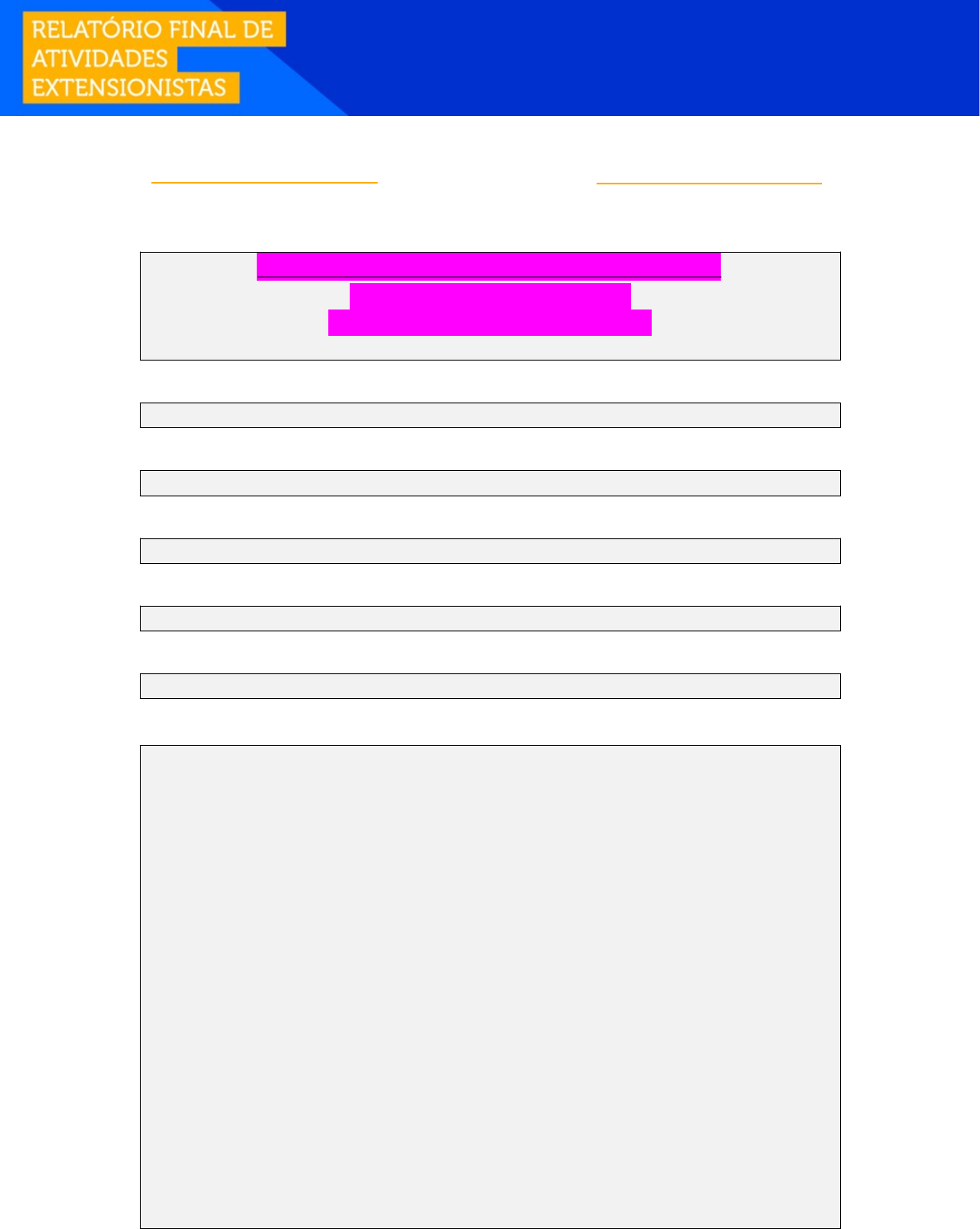 DADOS DO ALUNO: Aluno: [Nome completo] ****Para mais informação entre em contato**** WhatsApp: (73) 9 9907-7295 E-mail: myrianmeloll@gmail.com RA: [Número do RA do aluno] POLO / UNIDADE: CURSO: GESTÃO DE SEGURANÇA PRIVADA COMPONENTE CURRICULAR: PROJETO DE EXTENSÃO II – GESTÃO DE SEGURANÇA PRIVADA PROGRAMA DE EXTENSÃO: PROGRAMA DE INOVAÇÃO E EMPREENDEDORISMO. FINALIDADE E MOTIVAÇÃO: Pelo programa de extensão Inovação e Empreendedorismo o curso de Gestão de Segurança Privada tem a missão de transferir à sociedade os conhecimentos gerados e potencializar a geração de novos conhecimentos de modo aplicado, permitindo o desenvolvimento de ações no âmbito da tecnologia e inovação, que apresentam soluções e produtos para resolução de problemas diversificados presentes no contexto social, trazendo impacto positivo a comunidade envolvida. Ao identificar as dificuldades da comunidade, os alunos compreendem a necessidade e a motivação para efetuar as ações de apoio relacionadas ao curso pelas quais poderão ser desenvolvidas competências técnicas e soft skills específicas absorvidas durante sua jornada acadêmica. Os conteúdos programáticos sugeridos para correlacionar as ações são: Direito Penal; Segurança Pública e Privada; Modelos de Gestão e Gestão de Conflito. Os locais que poderão contemplar esse projeto são: Entidades pertencentes à Administração Pública Municipal, Estadual ou Federal; escolas; colégios; Organizações não governamentais (ONG); Instituições privadas com ações sociais; fundações; entidades do Judiciário como Procons e Tribunais; Entidades religiosas como igrejas, ordens, templos, congregações, missões e casas de acolhimento ou assistência; entidades de saúde e assistência social; Organizações da Sociedade Civil de Interesse Público (OSCIPs); Organizações de moradores e Cooperativas, entre outras. COMPETÊNCIAS: I - Conhecer e dominar conceitos e teorias relacionadas a Gestão de Segurança Privada e sua aplicação no cenário nacional; II - Dominar a linguagem pacificadora fomentando a solução de crises e conflitos de modo hábil, colaborativo e restaurador; III - Aplicar técnicas de Gestão e estudo do fenômeno criminógeno, auxiliando na elaboração de Planos de Segurança. PERFIL DO EGRESSO: O perfil do egresso do curso de Gestão de Segurança Privada, idealizado pela IES proporciona a formação do profissional com capacidade de interpretação com a valorização dos fenômenos criminógenos e sociais; aliado a uma postura reflexiva e de visão crítica que fomente a capacidade e a aptidão para a aprendizagem autônoma para o estudo do crime, da violência, da vítima e do criminoso; domínio do diálogo construtivo e pacificador. SOFT SKILLS (COMPETÊNCIAS SOCIOEMOCIONAIS): Análise e resolução de problemas Criatividade e inovação Liderança OBJETIVOS DE APRENDIZAGEM: O objetivo de aprendizagem do programa de extensão em Inovação e Empreendedorismo do curso de Gestão de Segurança Privada está relacionado ao fato de disseminar os conhecimentos multidisciplinares e transversais desenvolvidos no curso, com a finalidade de apoiar a comunidade no âmbito tecnológico, inovador e empreendedor explorando as Ciências Sociais Aplicadas, fomentando a geração de conhecimentos técnicos desenvolvidos nas ações e aprimorando das habilidades dos egressos. CONTEÚDOS: I - Direito Penal; II - Segurança Pública e Privada; III – Modelos de Gestão e Gestão de Conflito. INDICAÇÕES BIBLIOGRÁFICAS: BURMESTER, Haino. Manual de gestão: organização, processos e práticas de Liderança coletiva. 2. ed. São Paulo: Saraiva, 2018. ESTEFAM, André ; GONÇALVES, Victor Eduardo Rios. Direito penal esquematizado: parte geral. 9. ed. São Paulo : Saraiva Educação, 2020. PUCCINI, Abelardo de Lima. Matemática financeira: objetiva e aplicada. 10. ed. São Paulo: Saraiva, 2017. RELATÓRIO FINAL: Aluno e Aluna, após realizar suas atividades de extensão, é necessário que você o formalize, enviando esse Relatório Final para ser avaliado junto ao seu Ambiente Virtual (AVA) e também para você poder comprovar sua atuação. Para o preenchimento, busque as anotações junto ao TEMPLATE PCDA para auxiliar na apresentação das atividades desenvolvidas. Todos os campos são de preenchimento obrigatório! DESCRIÇÃO DA AÇÃO COM RESULTADOS ALCANÇADOS Metas dos Objetivos de Desenvolvimento Sustentável (ODS) aderentes a este projeto: CAMPO OBRIGATÓRIO – busque no seu Template PDCA quais Metas você selecionou como aderentes ao seu projeto, conforme cada Objetivo de Desenvolvimento Sustentável (ODS) da Organização das Nações Unidas (ONU) que você explorou no seu planejamento. Liste as Metas selecionadas (pelo menos uma opção): Local de realização da atividade extensionista: Durante a ação: Caso necessário, houve mudança de estratégia para alcançar o resultado: Resultado da ação: Conclusão: Depoimentos (se houver): RELATE SUA PERCEPÇÃO DAS AÇÕES EXTENSIONISTAS REALIZADAS NO PROGRAMA DESENVOLVIDO: CAMPO OBRIGATÓRIO – relate em no mínimo 15 (quinze) linhas sua experiência com as ações extensionistas. O texto deve ser de sua autoria e inédito, evite plágio. Questões norteadoras: (1) Você notou que suas habilidades profissionais foram aprimoradas, com a atuação nas ações extensionistas? (2) Você identificou melhoria/resolução do problema identificado? (3) Você conseguiu articular os conhecimentos adquiridos no curso com as ações extensionistas? Ao escrever seu texto evite deixá-lo em forma de respostas as questões norteadoras, relate sua experiência em forma de texto dissertativo com justificativas. DEPOIMENTO DA INSTITUIÇÃO PARTICIPANTE CAMPO OBRIGATÓRIO - insira depoimento(s) do(s) gestor(es) da instituição/órgão/associação participante que contribuam como um feedback da ação realizada por você. REFERÊNCIAS BIBLIOGRÁFICAS CAMPO OBRIGATÓ