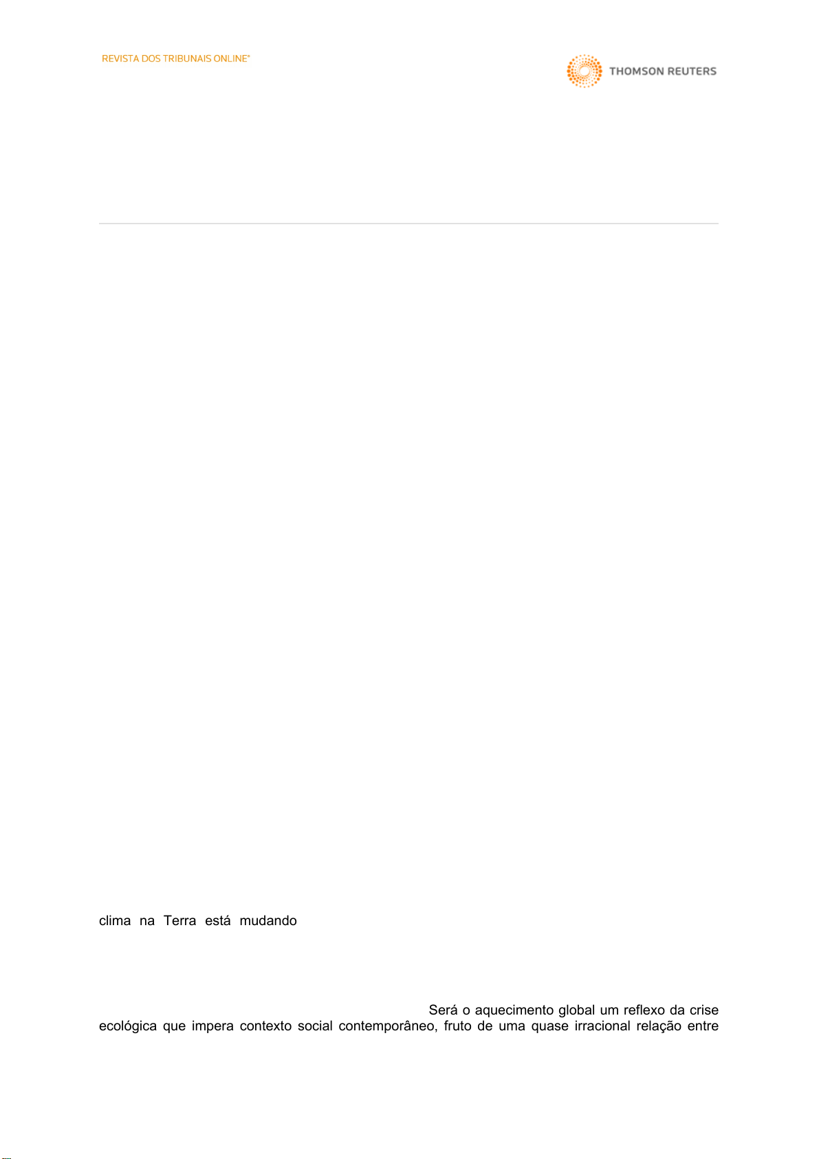 A POLÍTICA DA JUSTIÇA CLIMÁTICA: CONJUGANDO RISCOS, VULNERABILIDADES E INJUSTIÇAS DECORRENTES DAS MUDANÇAS CLIMÁTICAS Revista de Direito Ambiental | vol. 65/2012 | p. 367 | Jan / 2012 DTR\2012\480 Rogério Santos Rammê Mestrando em Direito Ambiental pela Universidade de Caxias do Sul. Bolsista Capes. Membro da Rede Brasileira de Justiça Ambiental (RBJA). Área do Direito: Ambiental Resumo: No meio cientifico, é majoritário o entendimento de que o fenômeno das mudanças climáticas decorre diretamente do aumento das emissões antropogênicas de gases de efeito estufa. Ocorre que no atual cenário social mundial, os riscos climáticos são suportados de uma forma desigual e injusta, na exata proporção da desigualdade social existente. A partir de tal constatação, o movimento por justiça ambiental, moderna corrente ecológica de pensamento, desenvolve uma especialização temática interna: a justiça climática. A ética da justiça climática é a ética da justiça social aplicada à distribuição dos riscos climáticos globais. A concepção de justiça social como satisfação de capacidades humanas básicas, desenvolvida pela filósofa americana Martha Nussbaum, aliado ao resgate da noção original de desenvolvimento sustentável formulada no Relatório Brundtland, fornecem base teórica que conduz à conclusão de que a justiça climática é imperativo ético legitimador da política das mudanças climáticas. Por isso a necessidade de edificar uma agenda política global aberta às demandas por justiça climática. Palavras-chave: Aquecimento global - Mudanças climáticas - Políticas públicas - Justiça climática Abstract: In scientific circles, is the majority view that the problem of global warming and climate change stems directly from the increase of anthropogenic emissions of greenhouse gases. It happens that the current global social scenario, climate risks are borne unequally and unfairly in the exact proportion of social inequality. From this observation, the movement for environmental justice, eco-modern current of thought, develops an internal thematic specialization: climate justice. The ethics of climate justice is the ethic of social justice applied to the global distribution of climate risks. The conception of social justice as satisfaction of basic human capabilities, as developed by the american philosopher Martha Nussbaum, coupled with the rescue of the original notion of sustainable development, formulated in the Brundtland Report, providing a theoretical basis which leads the conclusion that climate justice is the ethical imperative of legitimating climate change policy. Hence the need to build a global political agenda open to demands for climate justice. Keywords: Global warming - Climate change - Public policies - Climate justice Sumário: 1.INTRODUÇÃO - 2.MUDANÇAS CLIMÁTICAS E INFLUÊNCIA ANTRÓPICA: O DEBATE CIENTÍFICO E AS CONCLUSÕES DO IPCC - 3.O MOVIMENTO POR JUSTIÇA CLIMÁTICA - 4.A DIMENSÃO ÉTICA DA JUSTIÇA CLIMÁTICA - 5.ESBOÇANDO PREMISSAS E OBJETIVOS DE UMA POLÍTICA PAUTADA PELA PERSPECTIVA DA JUSTIÇA CLIMÁTICA - 6.CONSIDERAÇÕES FINAIS - 7.REFERÊNCIAS BIBLIOGRÁFICAS 1. INTRODUÇÃO Embora não se desconheça o fato de que alterações climáticas fazem parte de nosso passado geológico, o qual inclui eras do gelo, inundações e ondas de calor, é inegável que, atualmente, o clima na Terra está mudando. Dia após dia, nos mais diversos recantos do globo terrestre, constata-se que as mudanças climáticas já são, de fato, realidade: derretimento das geleiras do Ártico; aumento do nível dos oceanos; maior ocorrência de tempestades tropicais, furacões, ciclones e tornados; chuvas intensas, inundações e deslizamentos de terra em certas regiões; secas extremas e desertificação em outras localidades. Não são raros os questionamentos sobre o assunto. Será o aquecimento global um reflexo da crise ecológica que impera contexto social contemporâneo, fruto de uma quase irracional relação entre A POLÍTICA DA JUSTIÇA CLIMÁTICA: CONJUGANDO RISCOS, VULNERABILIDADES E INJUSTIÇAS DECORRENTES DAS MUDANÇAS CLIMÁTICAS Página 1 Macilene Realce Macilene Realce homem e seu meio, ou tudo não passa de um raro, porém cíclico, fenômeno natural? Estará o futuro da humanidade, bem como o de milhares de outras formas de vida, ameaçado em virtude de uma possível incapacidade de adaptação a uma nova realidade climática? O eventual desaparecimento de espécies vivas não será parte do processo natural de evolução da própria vida? Há, de fato, uma crise climática ou tudo não passa de um alarmismo fantasioso, alimentado por uma indústria que lucra e se alimenta com a propagação do caos? Questões como estas estão no cerne do debate científico que é travado com relação ao tema das mudanças climáticas. Embora minoritários no cenário científico, os céticos das mudanças climáticas contestam das mais variadas formas as conclusões dos grupos científicos que veem nas mudanças climáticas do planeta o maior problema ambiental da história da humanidade. A partir destas questões objetiva-se, inicialmente, traçar o panomara atual desse debate científico, bem como apontar as principais conclusões do mais importante organismo internacional de avaliação das alterações climáticas globais, o Painel Intergovernamental sobre Mudanças Climáticas (International Panel on Climate Change – IPCC). Traçado este panorama inicial, a análise volta-se para os riscos decorrentes das mudanças climáticas no cenário social, buscando confirmar a premissa de que a crise climática hodierna é também uma crise ética de justiça: as camadas mais vulneráveis da população mundial são quem sofrem de modo mais intenso as consequências negativas do aquecimento global e das alterações do clima, embora sejam quem menos contribui para o problema. Ao final, como corolário, buscar-se-á analisar a pos