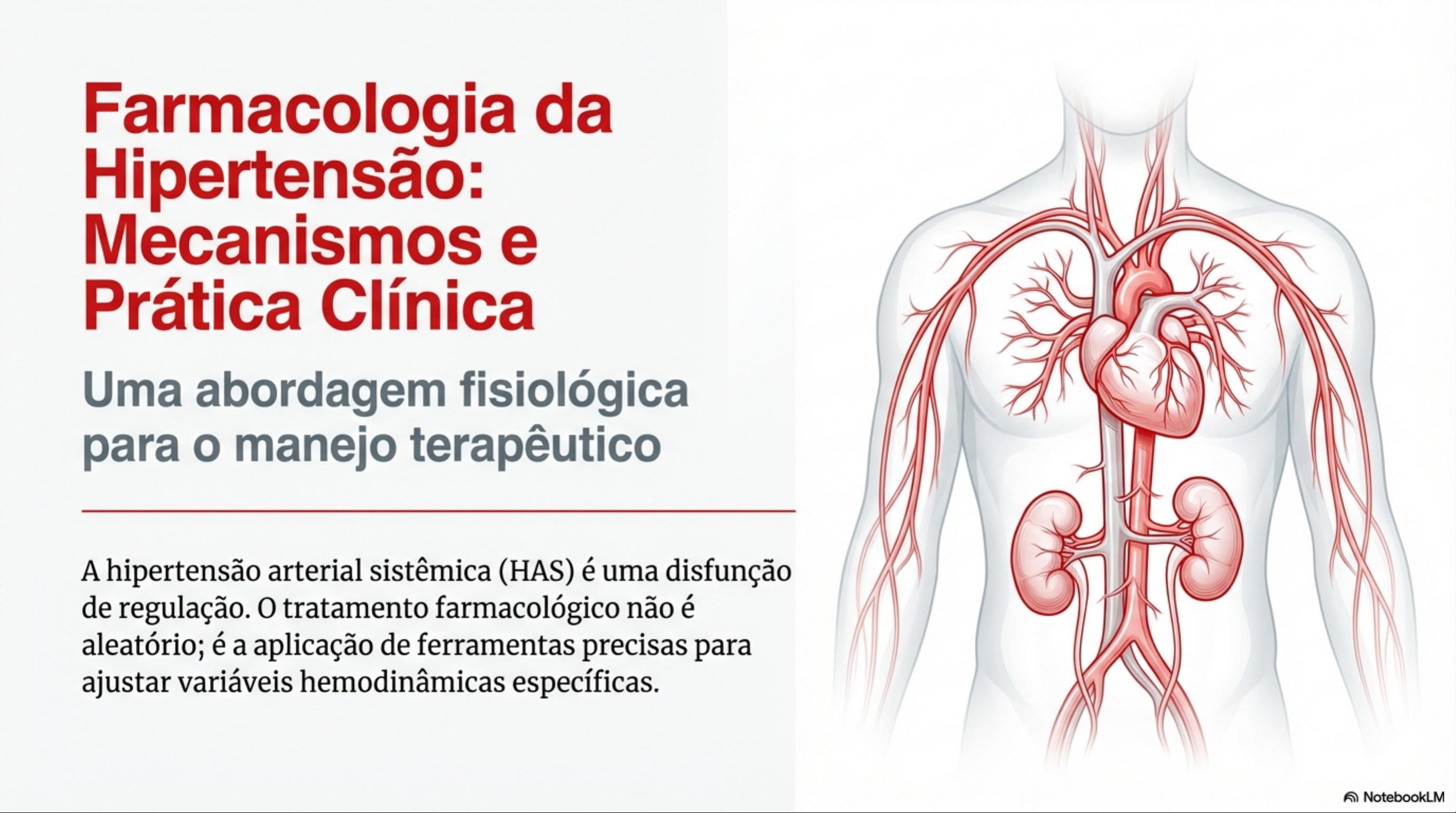 Farmacologia da Hipertensão: Mecanismos e Prática Clínica Uma abordagem fisiológica para manejo terapêutico A hipertensão arterial sistêmica (HAS) é uma disfunção de regulação. tratamento farmacológico não é aleatório; é a aplicação de ferramentas precisas para ajustar variáveis hemodinâmicas específicas. NotebookLMA Equação Mestra PA = DC RVP Volume & Bomba Tônus Vascular Volume Sistólico (Pré-carga) Tônus Arterial (Simpático, Frequência Cardíaca Angiotensina, Cálcio) Alvos: Diuréticos, Betabloqueadores Alvos: IECAs/BRAs, Vasodilatadores Insight: Para tratar a hipertensão, devemos reduzir 0 volume, diminuir a força da bomba ou relaxar os vasos. maioria dos fármacos atua reduzindo a RVP. NotebookLMDiuréticos: Controle do Volume e Sódio Glomerulus Proximal Túbulo Contorcido Distal Convoluted Tubule Túbulo Coletor Na+ H+ Na+ Na+ K+ Na+ Na* K+ K+ K+O Na+ Alça (Inibem Na+/K+/2CI-) Tiazídicos (Inibem Poupadores de K+ Antagonistas da Diurese potente. Excreção Redução inicial do volume Aldosterona de 20-25% do Na+ filtrado. Alça de Henle (pré-carga) e tardia da RVP. Túbulo (Espironolactona). Ascendente Coletor NotebookLMDiuréticos na Prática: Tiazídicos Alça Tiazídicos (Hidroclorotiazida, Diuréticos de Alça (Furosemida) Clortalidona) Papel: linha para HAS não Papel: Reservados para HAS com complicada. Preferência pela Insuficiência Renal (TFGEixo SRAA: Comando Hormonal da Pressão Inibidores Diretos Rins (Renina) (Alisquireno) Angiotensina I ECA IECA (Bloqueia formação) Angiotensina II Vasoconstrição Potente, Inimigo) Secreção de Aldosterona, Remodelamento Cardíaco. BRA Receptor AT1 (Bloqueia ação) NotebookLMIECA BRA: Mecanismos e a Questão da Bradicinina IECAs (Captopril, Enalapril) BRAs (Losartana, Valsartana) Metabólitos Bloqueiam a ECA. Bradicinina Inativos Bloqueio seletivo do Além de reduzir receptor AT1. Não Ang II, impedem a interferem na degradação da Acúmulo de Bradicinina Bradicinina. Bradicinina. Sem tosse seca. Vasodilatação TOSSE SECA Pérola Clínica: NUNCA associar IECA + BRA (risco renal sem benefício). Ambos são contraindicados na gestação. NotebookLMBloqueadores dos Canais de Cálcio Vasos Coração Di-hidropiridinas Não Di-hidropiridinas (Anlodipino, Nifedipino) (Verapamil, Diltiazem) Vasodilatação II Frequência e Potente Contratilidade Ação: Predomínio vascular Ação: Predomínio cardíaco (Vasodilatação potente). Frequência e Contratilidade). Uso: linha para HAS. Uso: Arritmias e Angina. Efeito Adverso: Edema maleolar e Cuidado: Evitar em IC com fração de taquicardia reflexa. ejeção reduzida. NotebookLMBetabloqueadores: Freio Simpático Geração Geração Geração (Não seletivos) (Cardiosseletivos) (Vasodilatadores) Propranolol. Atenolol, Metoprolol. Carvedilol (Bloqueio Bloqueiam ß1 e ß2. Bloqueiam ß1. Menos α1), Nebivolol Risco de efeitos pulmonares. Nítrico). broncoespasmo. Status Atual: Não são linha para HAS primária não complicada (menor proteção contra AVC em idosos) NotebookLMQuando Betabloqueador é Obrigatório? Indicações Compulsórias Insuficiência Pós-Infarto (IAM): Cardíaca (ICFER): Proteção contra Reduz mortalidade e arritmias e reinfarto. remodelamento. Mulheres Jovens: Angina Pectoris: Alternativa segura aos Redução do consumo teratogênicos de oxigênio. (IECA/BRA) se planejam gravidez. NotebookLMBanco de Reservas Fármacos para Casos Específicos Agonistas Alfa-2 Vasodilatadores Alfabloqueadores Centrais (Metildopa, Diretos (Hidralazina, (Doxazosina) Clonidina) Minoxidil) Mecanismo: Reduzem Mecanismo: Uso: Hipertensão com fluxo simpático central. Relaxamento direto Hiperplasia Prostática Uso: Metildopa na muscular. (HPB). gestação. Clonidina em Risco: Taquicardia urgências. reflexa potente (usar com Efeito: Sonolência e BB + Diurético). rebote se suspenso abruptamente. NotebookLMSabotador Silencioso: AINEs Anti-hipertensivos Interação Clínica Crítica Prostaglandinas Conflito Fisiológico: AINEs inibem Arteríola (PGE2) Aferente Renal a COX, reduzindo prostaglandinas renais vasodilatadoras. PGE2 Consequência: Retenção de sódio/água e vasoconstrição renal. AINE (Ibuprofeno) Prostaglandinas Impacto: Perda de eficácia de (PGE2) Diuréticos, IECAs e BRAs. (BCC são Dilatação Resultado: menos afetados). (Aberto) Vasoconstrição NotebookLMEstratégia de Combinação Atacando por Duas Frentes Sinergia Slate Grey Arterial Red Por que combinar? Quando iniciar com 2 fármacos? Bloqueio de contra-regulação e uso de PA ≥ 160/100 mmHg (Estágio 2) doses menores. Alto risco cardiovascular Venous Blue Combinações Preferenciais: Combinação Proibida: 1. IECA/BRA + Tiazídico IECA + BRA 2. IECA/BRA + BCC NotebookLMMedicina de Precisão: Escolha pela Comorbidade Abordagem Terapêutica Personalizada Condição Clínica Escolha Preferencial Diabetes / Doença Renal IECA ou BRA (Nefroproteção) Insuficiência Cardíaca IECA/BRA + Beta-bloqueador + Espironolactona Doença Coronariana Beta-bloqueador + IECA Negros / Idosos Tiazídicos ou BCC Gestação Metildopa, Nifedipino, Hidralazina (EVITAR SRAA) NotebookLMResumo: Algoritmo Fisiológico 1 Alvo: Defina se paciente precisa de volume (Diurético) ou vaso (BCC/SRAA). 2 Quarteto Fantástico: Tiazídicos, BCC, IECA e BRA são a base. 3 Atenção aos Detalhes: Monitore potássio, tosse e edema. 4 Paciente no Centro: comorbidade define fármaco. "Tratar a hipertensão é proteger órgão-alvo, não apenas corrigir esfigmomanômetro." NotebookLM