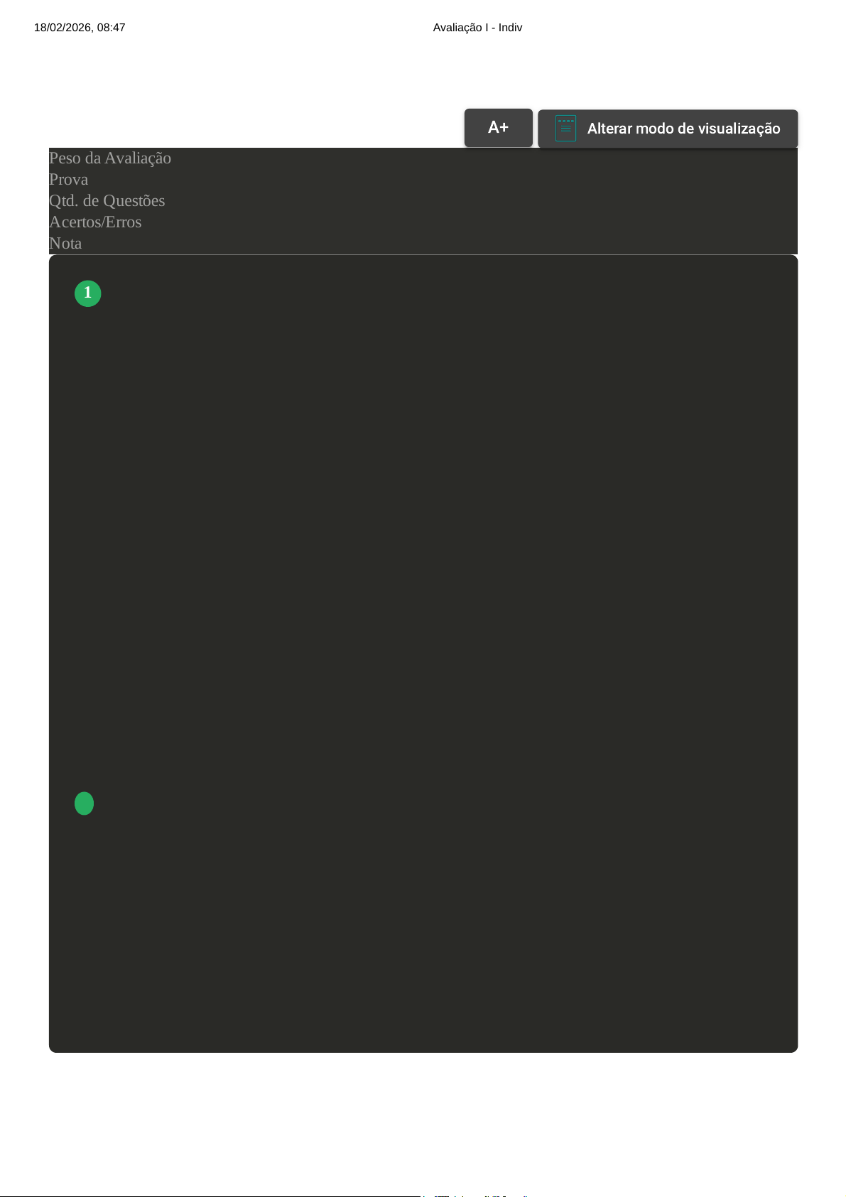 Prova Impressa GABARITO | Avaliação I - Individual (Cod.:1596992) Peso da Avaliação 1,50 Prova 113819692 Qtd. de Questões 10 Acertos/Erros 10/0 Nota 10,00 Arruda (2019, on-line) questiona: “Você se preocupa em alcançar abundância em todos os seus pilares de vida? Você é um bom pai, uma boa mãe, um bom amigo quanto é um bom profissional? Você leva todas as esferas da sua vida com igual importância que merecem?”. A vida é uma jornada cheia de desafios e oportunidades. Para vivermos plenamente, é importante encontrarmos um equilíbrio entre os diferentes aspectos de nossas vidas. Os 10 pilares da vida são um conjunto de princípios que podem nos ajudar a construir uma vida mais feliz, saudável e equilibrada. Os 10 pilares são: espiritualidade, família, relação conjugal, saúde e bem-estar, social e lazer, financeiro, profissional, desenvolvimento pessoal, realização e propósito, equilíbrio emocional. Fonte: ARRUDA, H. Você se sente realizado em todos os pilares da sua vida? Linkedin, 2019. Disponível em: https://www.linkedin.com/pulse/voc%C3%AA-se-sente-realizado-em-todos-os-pilares- da-sua-vida-h%C3%A9lica-arruda/?originalSubdomain=pt. Acesso em: 29 jan. 2024. Sobre os 10 pilares da vida, assinale a alternativa correta: A Pilar desenvolvimento pessoal: está associado à trajetória profissional, seu desenvolvimento e desempenho sob a perspectiva da organização, dos fornecedores e dos clientes. B Pilar família: é analisado também pela capacidade de perdoar e conviver amorosamente apesar das diferenças pessoais. C Pilar saúde e bem-estar: consiste em uma atividade realizada nos momentos de lazer com o propósito de relaxar e aliviar as pressões do cotidiano na sociedade contemporânea. D Pilar profissional: descreve como você lida com seu dinheiro, incluindo não apenas sua renda, mas também seus gastos, poupanças e investimentos. VOLTAR A+ Alterar modo de visualização 1 18/02/2026, 08:47 Avaliação I - Individual about:blank 1/9 A prosperidade não se define pela quantidade de recursos financeiros ou bens acumulados, mas sim pelo contínuo processo de crescimento e aprimoramento em várias dimensões da vida. Muitas pessoas detêm sucesso material, com dinheiro e bens, porém não experimentam prosperidade verdadeira, pois enfrentam conflitos internos, insatisfação e dificuldades financeiras devido ao uso inadequado desses recursos. Assim, a prosperidade está diretamente ligada à evolução pessoal, que envolve a habilidade de gerir e potencializar todos os recursos disponíveis em nossa existência. Fonte: MULLER, C. et al. Perspectivas Profissionais. Núcleo de Educação a Distância. Florianópolis: Arqué, 2023. Com base nas informações apresentadas, avalie as asserções a seguir e a relação proposta entre elas: I. A prosperidade está unicamente relacionada à acumulação de bens materiais e dinheiro, independentemente do desenvolvimento pessoal ou da gestão dos recursos. PORQUE II. Pessoas que possuem muitos recursos financeiros sempre vivem em harmonia e demonstram verdadeira prosperidade em todas as áreas da vida. A respeito dessas asserções, assinale a opção correta: A A asserção I é uma proposição verdadeira e a II é uma proposição falsa. B As asserções I e II são verdadeiras, e a II é uma justificativa correta da I. C As asserções I e II são falsas. D A asserção I é uma proposição falsa e a II é uma proposição verdadeira. E As asserções I e II são verdadeiras, mas a II não é uma justificativa correta da I. A Educação Superior tem um papel fundamental na formação integral de seus educandos, pois deve contribuir para o desenvolvimento de novos conhecimentos, habilidades, competências e valores. Dentro de seus inúmeros desafios, é importante que também auxilie os estudantes no planejamento de seu futuro profissional, para que possam realizar seus projetos de vida. 2 3 18/02/2026, 08:47 Avaliação I - Individual about:blank 2/9 Fonte: OLIVEIRA, L. R. A educação superior e o projeto de vida do estudante. Revista da Faculdade de Ciências Econômicas, Contábeis e de Administração de Empresas Padre Anchieta, [s. l.], v. 3, n. 6, p. 5-12, 2002. Disponível em: https://revistas.anchieta.br/index.php/Revistanalise/article/view/373. Acesso em: 16 fev. 2024. Sobre o projeto de vida, analise as afirmativas a seguir: I. O projeto de vida é especialmente importante para estudantes de nível superior, uma vez que esse período da vida é marcado por muitas escolhas e decisões que podem impactar significativamente o futuro profissional e pessoal do individuo. II. A construção do projeto de vida pode ter início na jornada acadêmica e ajudar o estudante a direcionar seus esforços e escolhas para as áreas de interesse que mais se alinham com seus objetivos e valores pessoais. III. O projeto de vida pode ajudar o estudante a traçar um plano de carreira mais consistente e realista, baseado em suas habilidades, interesses e valores pessoais. IV. O estudante pode se manter motivado e engajado com suas atividades, ao ter uma visão clara de seus objetivos e valores, mesmo diante das adversidades. É correto o que se afirma em: A I e IV, apenas. B I, II e III, apenas. C I, II, III e IV. D II e III, apenas. Machado (2004, p. 11) afirma que “Projeto é lançar-se para o futuro, com orientação. É a busca pelo que se pretende ser e conhecer. É a procura por respostas para uma interrogação que provoca interesse e incomoda”. É fundamental enfatizar que o projeto de vida vai além de meramente enumerar objetivos; 4 18/02/2026, 08:47 Avaliação I - Individual about:blank 3/9 ele representa um conjunto de decisões e caminhos a serem trilhados para alcançar esses objetivos. Esse processo abrange não apenas estabelecer metas, mas também refletir sobre os valores pessoais e as prioridades que guiam a vida de cada indivíduo. Isso implica a necessidade de tomar inúmeras decisões ao longo