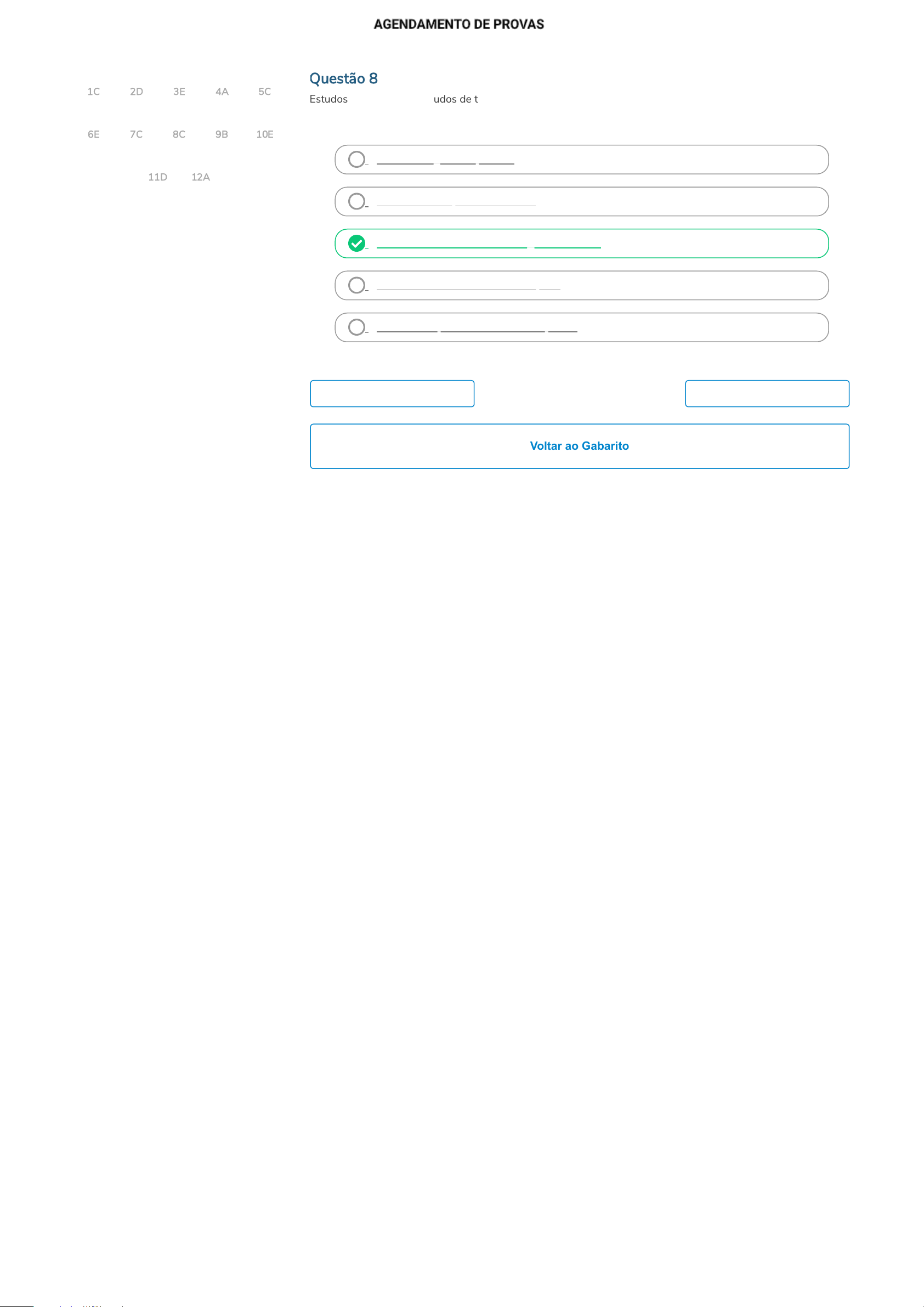 1C 2D 3E 4A 5C 6E 7C 8C 9B 10E 11D 12A Voltar ao Gabarito Questão 8 Estudos de toxicidade, estudos de tolerância local, de carcinogenicidade e estudos de interesse para a avaliação da segurança farmacológica fazem parte que qual tipo de análise? A. Análise do grau de pureza. B. Análise físico-química do ativo. C. Análise do efeito farmacológico e tóxico. D. Análise da eficiência do fitoterápico. E. Análise da qualidade da matéria-prima. Anterior Próxima