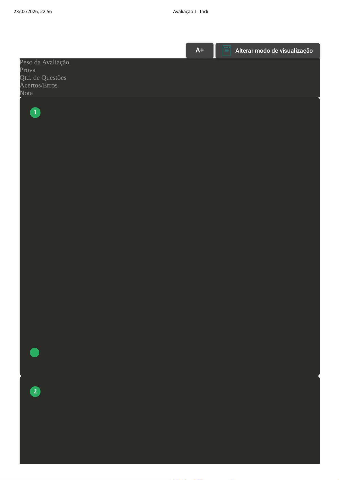Prova Impressa GABARITO | Avaliação I - Individual (Cod.:1600639) Peso da Avaliação 1,50 Prova 114173036 Qtd. de Questões 10 Acertos/Erros 10/0 Nota 10,00 O sangue é composto por elementos celulares (também chamados de elementos figurados) e pelo plasma. Os elementos celulares são divididos em três diferentes grupos: a série eritrocitária, a série leucocitária e a série plaquetária. Com relação às células sanguíneas e às doenças hematológicas, analise as sentenças a seguir: I- As células polimorfonucleares são de linhagem mieloide, bem como as hemácias. II- Certas viroses, como aquela causada pelo vírus da mononucleose infecciosa, podem causar leucocitose e com presença de linfócitos atípicos. III- As leucemias são caracterizadas por proliferações leucocitárias de natureza neoplásica. Assinale a alternativa CORRETA: Com relação às células sanguíneas e às doenças hematológicas, analise as sentenças a seguir: I- As células polimorfonucleares são de linhagem mieloide, bem como as hemácias. II- Certas viroses, como aquela causada pelo vírus da mononucleose infecciosa, podem causar leucocitose e com presença de linfócitos atípicos. III- As leucemias são caracterizadas por proliferações leucocitárias de natureza neoplásica. É correto o que se afirma em: A Somente a sentença II está correta. B Somente a sentença III está correta. C Nenhuma alternativa está correta. D Somente a sentença I está correta. E As sentenças I, II e III estão corretas. A hematopoese é responsável pela produção de todas as células do sangue. Esse processo ocorre, inicialmente, durante o desenvolvimento fetal nas ilhotas sanguíneas do saco vitelino e no mesênquima para-aórtico; depois, durante o desenvolvimento fetal, se deslocam para o fígado entre o terceiro e quarto mês de gestação e, finalmente, se localizam na medula óssea. Sobre a hematopoese, analise as sentenças a seguir: I- As células-tronco hematopoiéticas são as células precursoras de todas as células sanguíneas, elas têm a capacidade de autorrenovação. VOLTAR A+ Alterar modo de visualização 1 2 23/02/2026, 22:56 Avaliação I - Individual about:blank 1/6 II- O fígado e o baço podem assumir o papel da medula óssea caso esta seja danificada. III- A células progenitores linfóides são células comprometidas com a linhagem linfoide responsáveis pela formação dos granulócitos. IV- As plaquetas são pequenos fragmentos citoplasmáticos anucleados formadas a partir de células precursoras chamadas de megacariócitos. É correto o que se afirma em: A I e III, apenas. B I, II e IV. C II e III, apenas. D I e II, apenas. E II, apenas. Diversas alterações nos eritrócitos podem ser encontradas em um exame hematológico e elas podem estar relacionadas a diversas doenças. O biomédico responsável pelo setor de hematologia, ao analisar um esfregaço sanguíneo, se deparou com hemácias deformadas em forma de foice. Chamamos de poiquilocitose as alterações eritrocitárias relacionadas à forma das hemácias. Diante do observado pelo biomédico, assinale a alternativa que representa como podemos denominar essas hemácias: A Esferócitos. B Drepanócitos ou falciformes. C Dacriócitos. D Ovalócitos. E Codócitos. 3 23/02/2026, 22:56 Avaliação I - Individual about:blank 2/6 O estudo da hematologia é muito importante para o profissional da área da saúde, em especial para o biomédico, pois é através do exame hematológico (conhecido como hemograma) que podemos identificar alterações no sangue periférico e relacioná-las com diversas doenças. Com relação ao hemograma, classifique V para as sentenças verdadeiras e F para as falsas: ( ) É o exame complementar mais requerido nas consultas médicas, mas não serve para a formulação de uma hipótese diagnóstica e no controle evolutivo das doenças. ( ) Avalia os elementos do sangue de forma quantitativa e qualitativa. É composto por eritrograma, leucograma e plaquetograma. ( ) A hemoglobina é medida em g/dL, enquanto o hematócrito é medido em percentagem. ( ) O volume corpuscular médio está aumentado nas anemias microcíticas. Assinale a alternativa que apresente a sequência CORRETA: A V - F - V - F. B V - V - F - V. C F - V - V - F. D V - V - V - V. Os distúrbios da hemostasia abrangem diversas condições clínicas, podendo ser de gravidade variável em diversos locais do corpo. Podem ser classificadas em congênitas e adquiridas, dividindo- se em distúrbios vasculares e plaquetários (hemostasia primária); e distúrbios da coagulação (hemostasia secundária). Considerando-se as alterações que ocorrem em determinadas coagulopatias, classifique V para as sentenças verdadeiras e F para as falsas: ( ) A doença de Von Willebrand combina a presença de anormalidades da função plaquetária com uma deficiência na atividade do fator VIII. ( ) A hemofilia B é uma deficiência do fator VIII, e também é um distúrbio ligado ao cromossomo X. ( ) Níveis inadequados de vitamina K acarretam uma diminuição dos fatores VII, IX e X e da protrombina. Assinale a alternativa que apresente a sequência CORRETA: A V - V - F. B F - V - F. C V - F - V. D V - V - V. A série leucocitária é o grupo mais heterogêneo de células sanguíneas e difere tanto do ponto de vista morfológico quanto fisiológico. Os leucócitos ou glóbulos brancos são células de defesa do nosso 4 5 6 23/02/2026, 22:56 Avaliação I - Individual about:blank 3/6 organismo, combatendo microrganismos invasores (bactérias, vírus, fungos e parasitas), pois são células capazes de migrar para os locais onde a sua ação é necessária. Referente às alterações do leucograma, analise as afirmativas a seguir: I- Em casos de alergia e asma, podemos observar uma eosinofilia. II- As granulações tóxicas dos neutrófilos encontram-se associadas exclusivamente à presença de neoplasias. III- Um modelo característico de resposta na infec